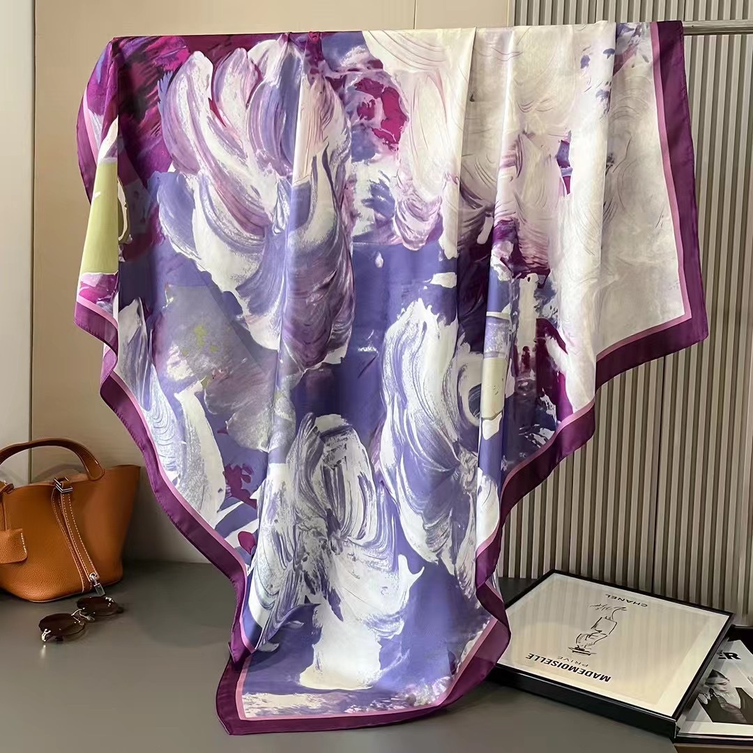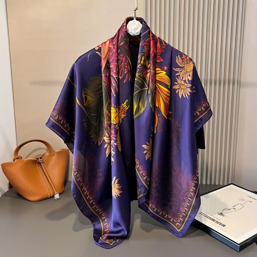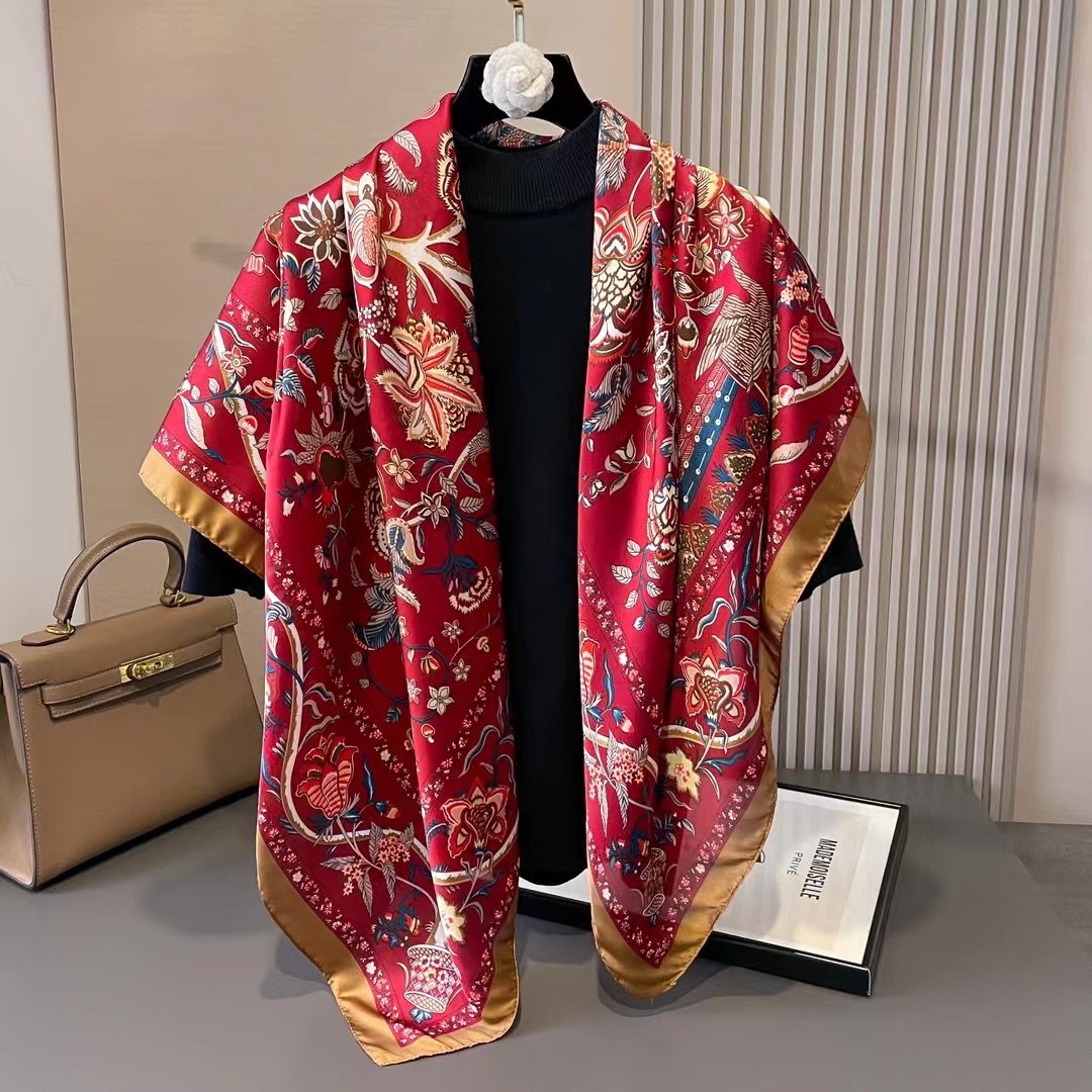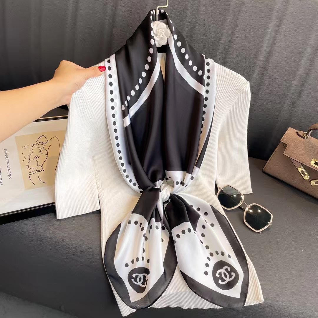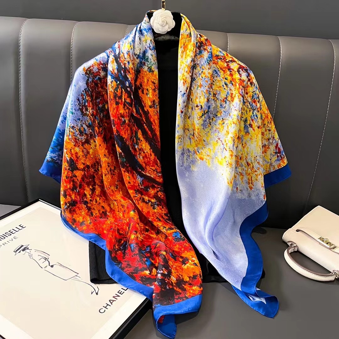 새로운 모조 실크 스카프 여성 110cm 사각 다용도 인쇄 스카프 장식 자외선 차단제 기질 목도리 도매