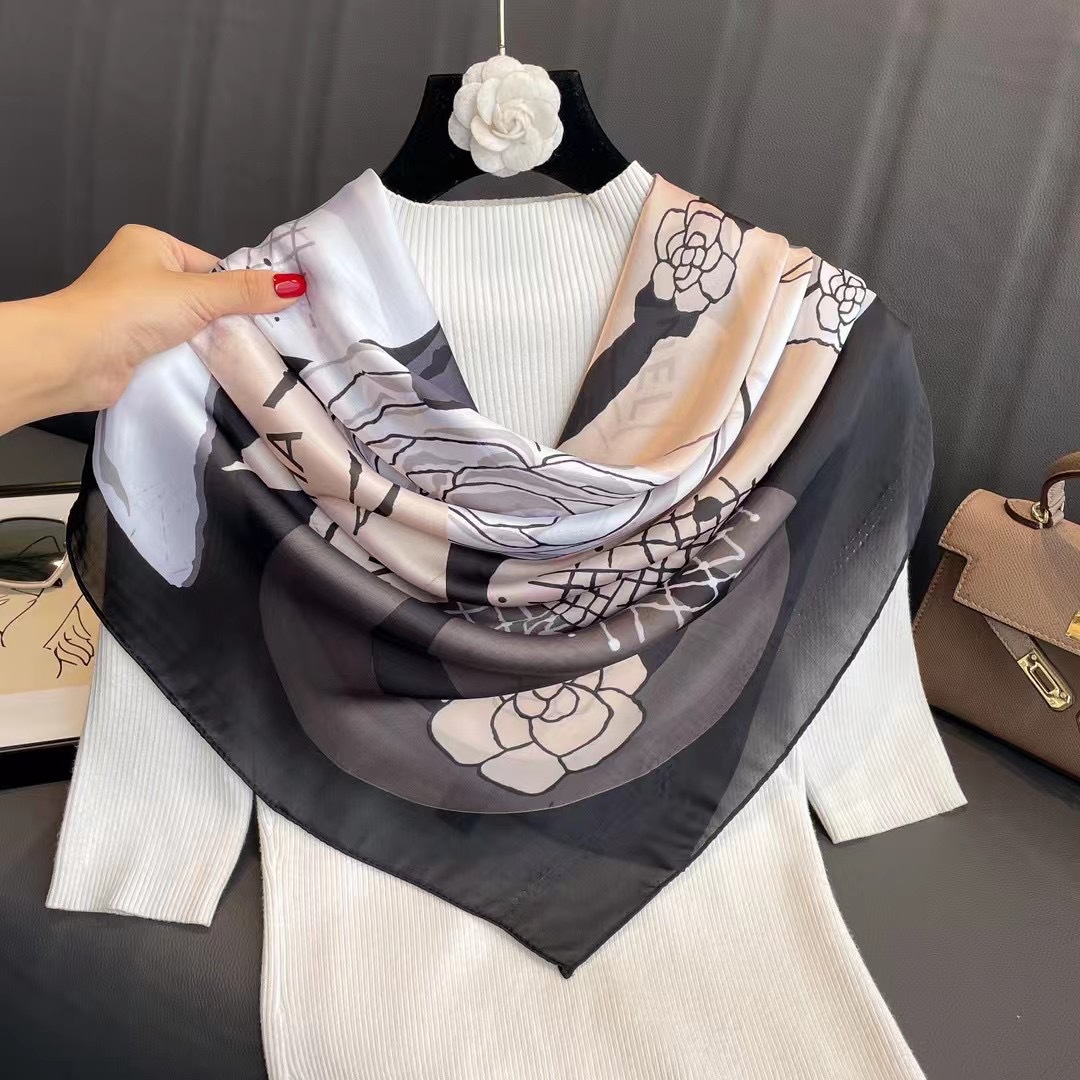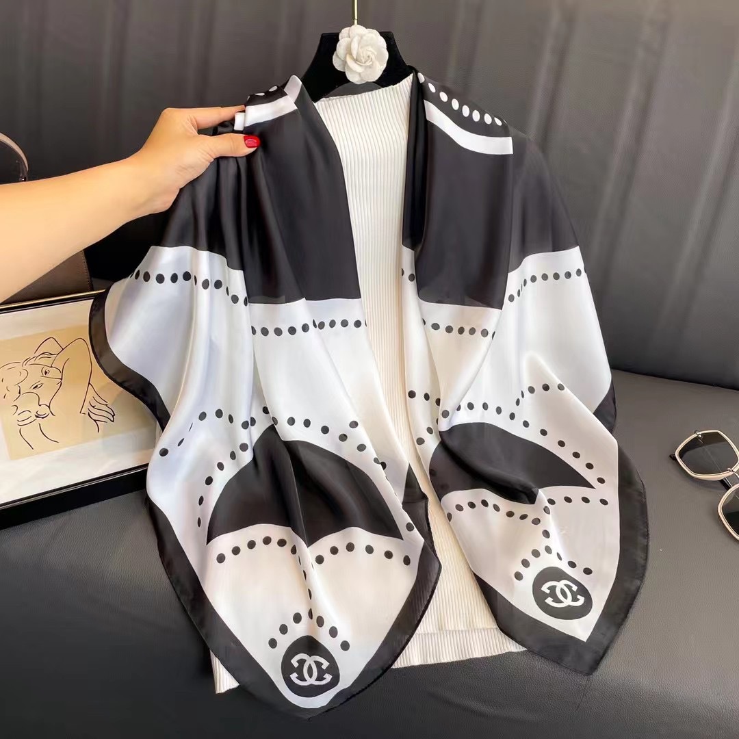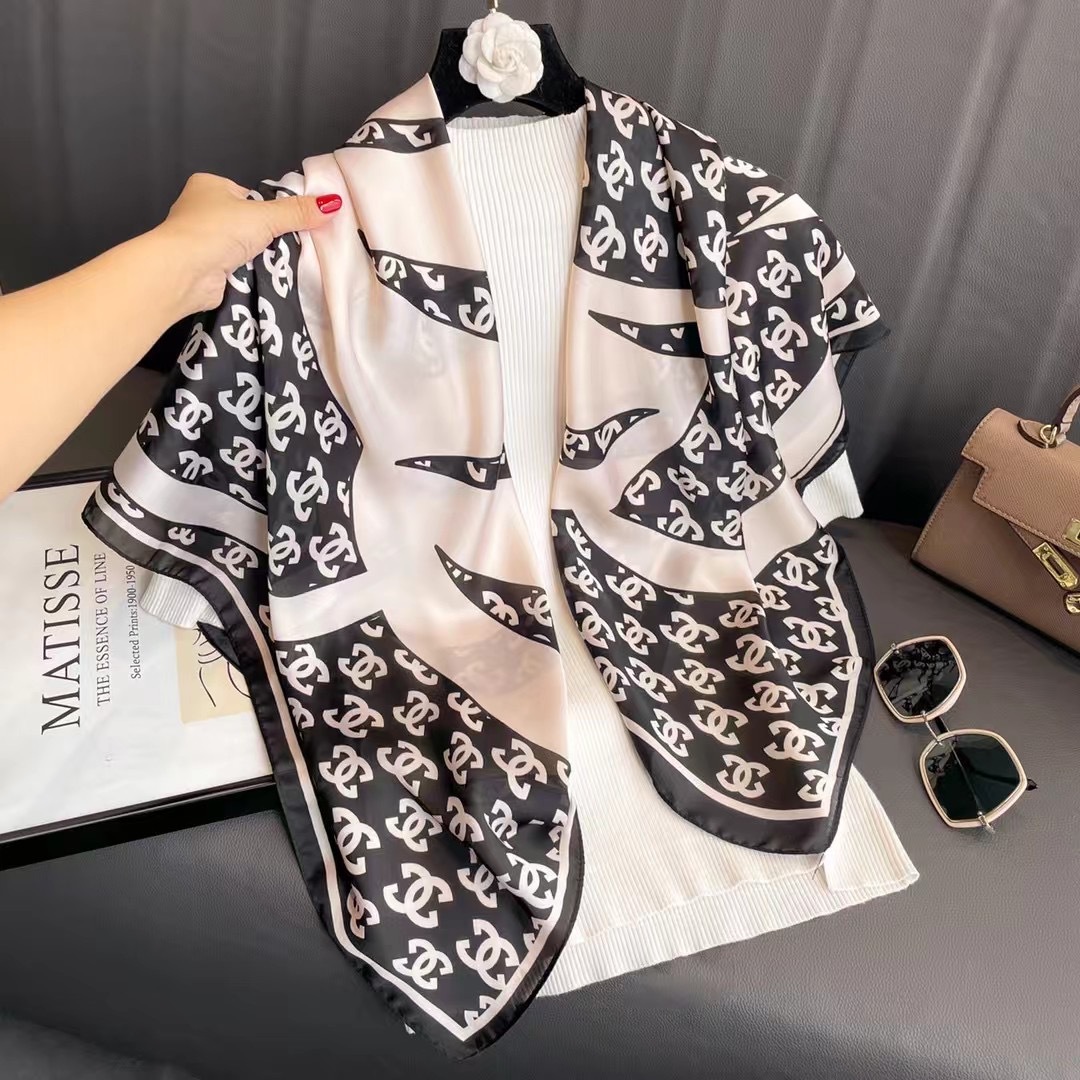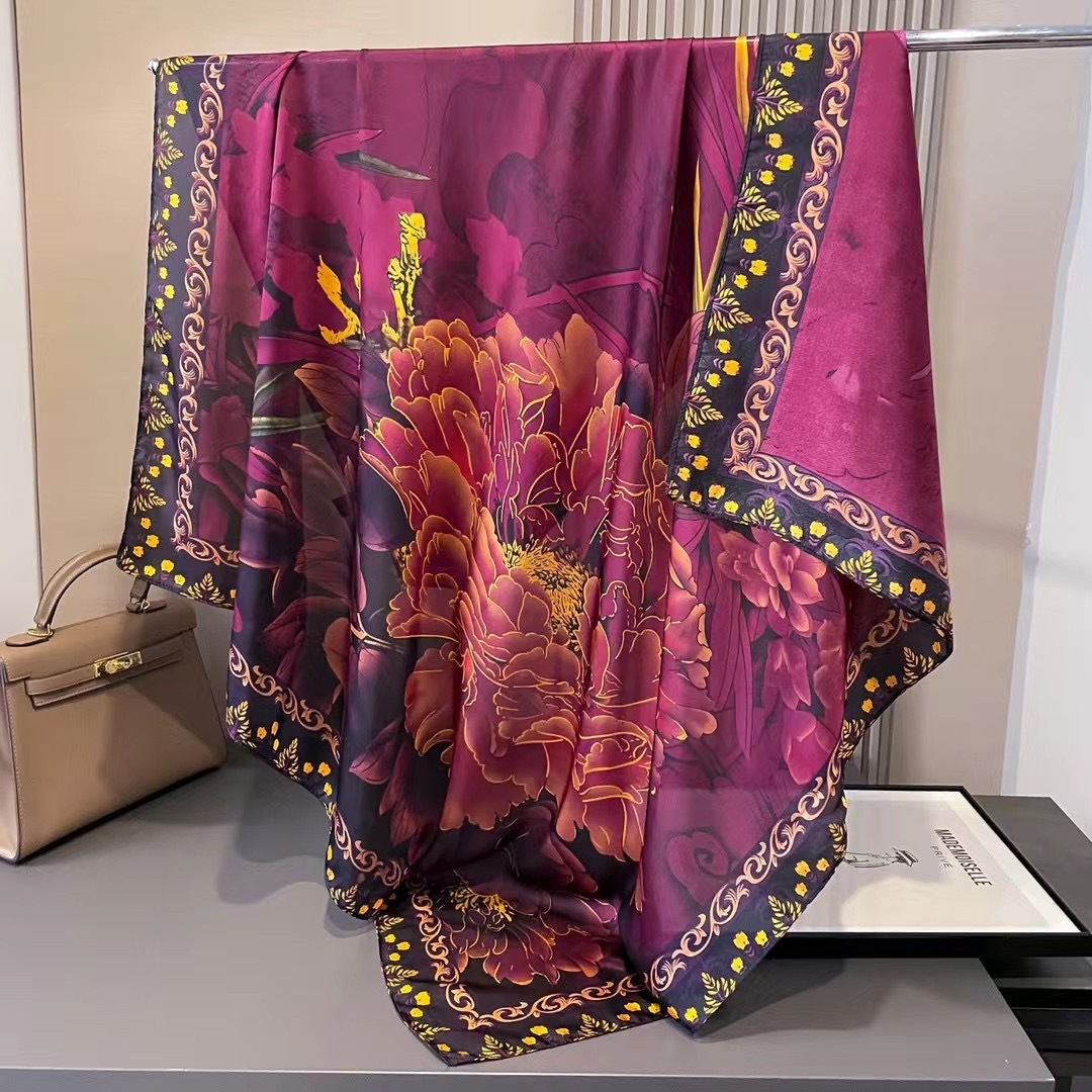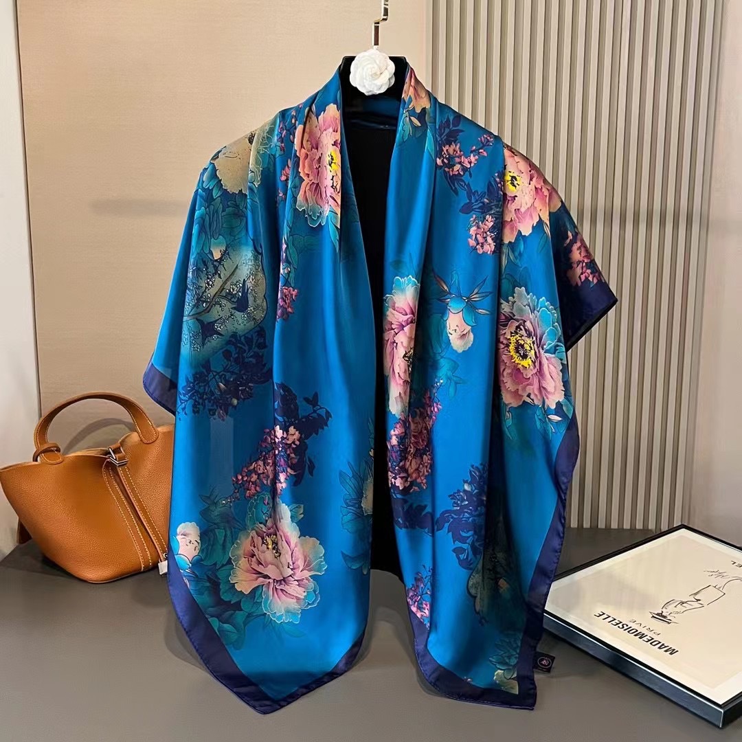새로운 모조 실크 스카프 여성 110cm 사각 다용도 인쇄 스카프 장식 자외선 차단제 기질 목도리 도매