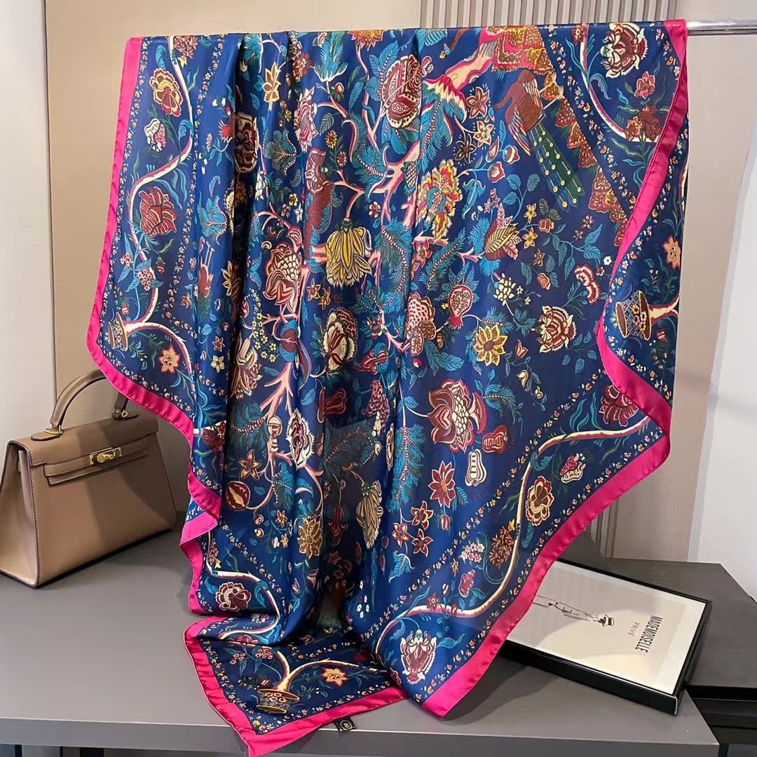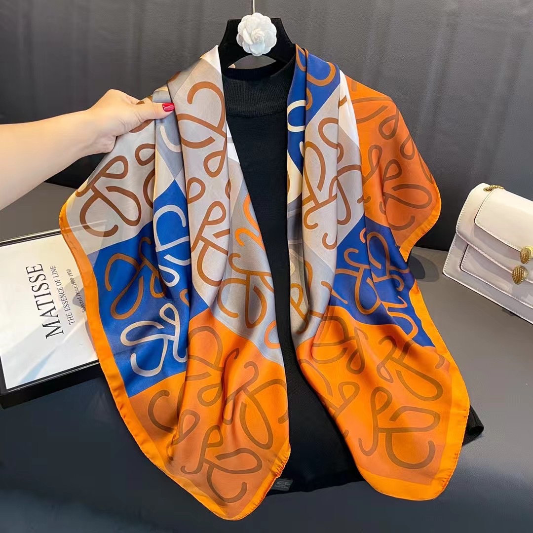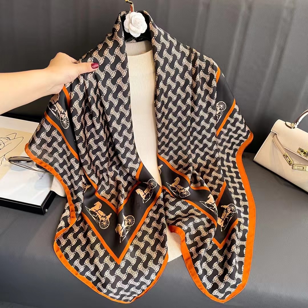 새로운 모조 실크 스카프 여성 110cm 사각 다용도 인쇄 스카프 장식 자외선 차단제 기질 목도리 도매스토어 가기