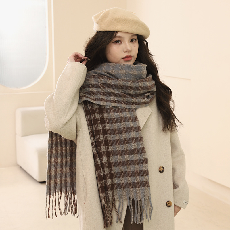 한국 스타일 물떼새 격자무늬 스카프 여성용 겨울 다용도 두꺼운 체크무늬 숄 고급스러운 목도리 생일 선물 남자친구에게 선물스토어 가기