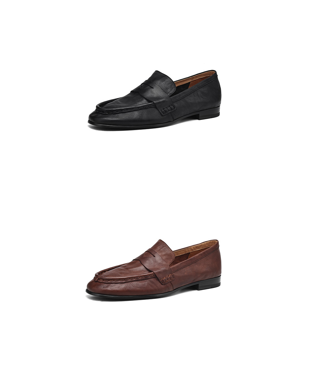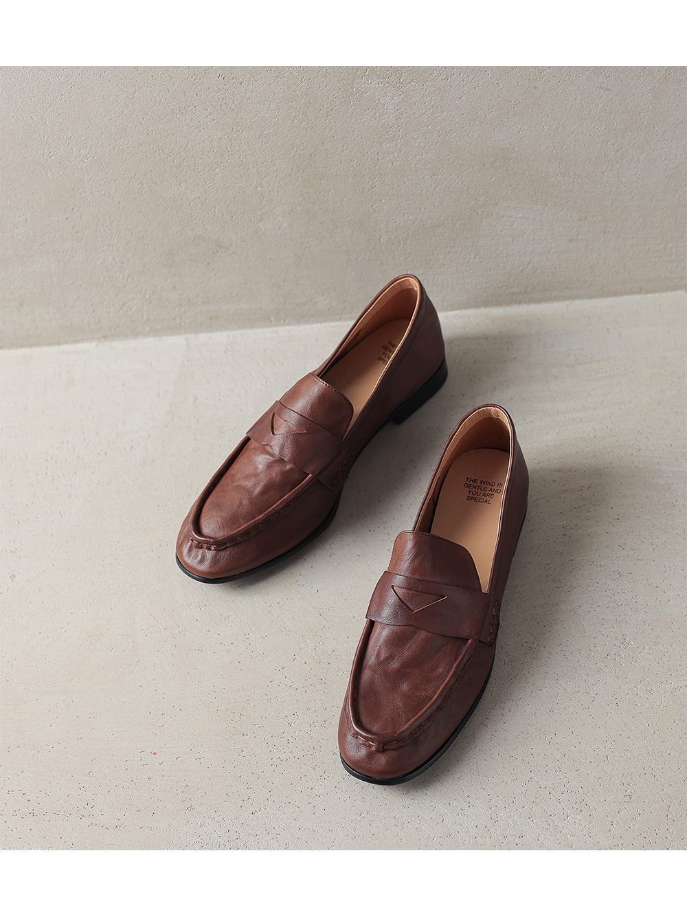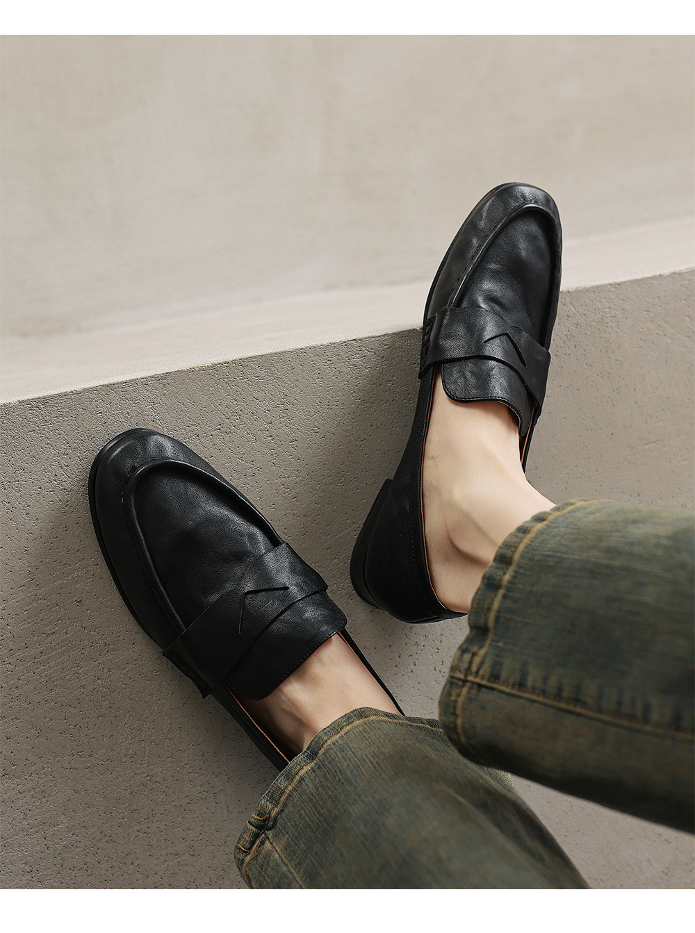 2024 빈티지 천연 주름 짜임새 통근 가죽 신발 가을 라운드 발가락 정품 가죽 로퍼 낮은 발 뒤꿈치 싱글 레이어 신발스토어 가기