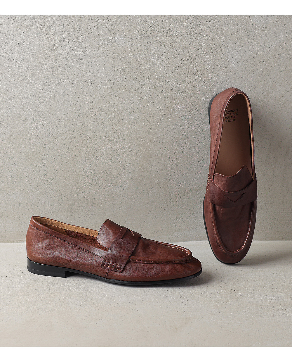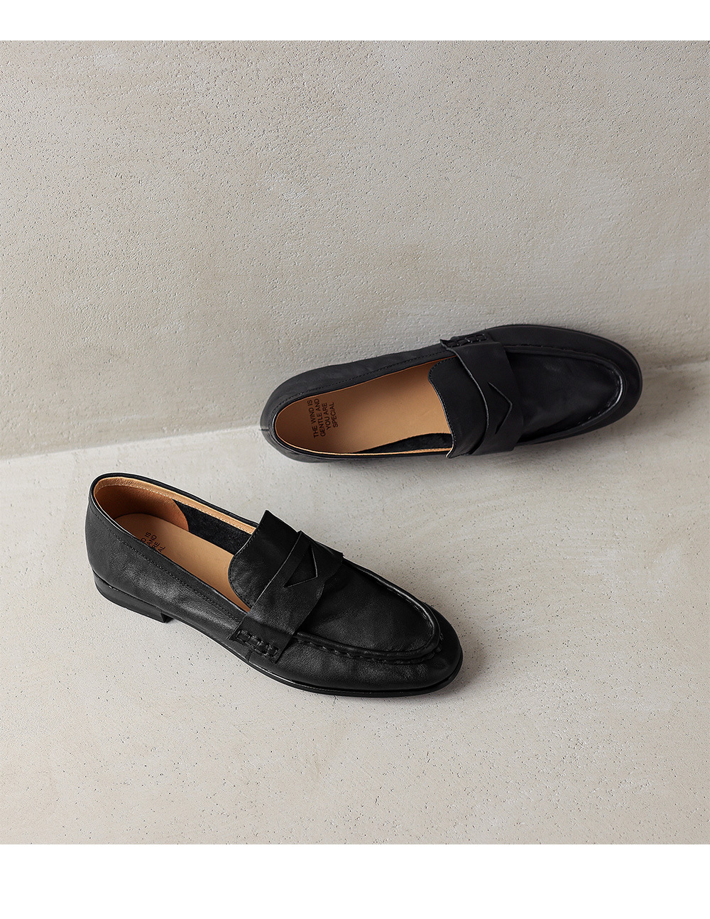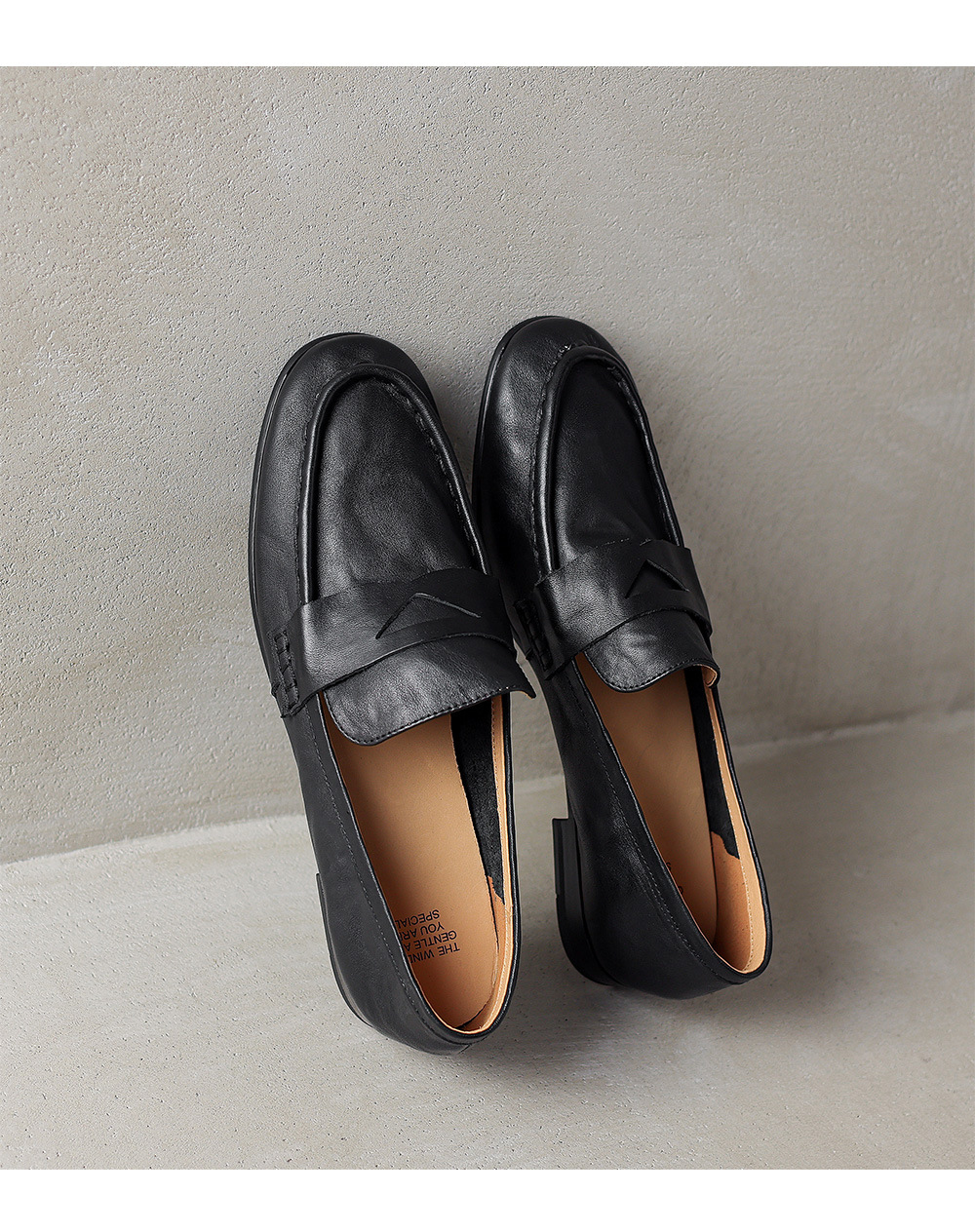 2024 빈티지 천연 주름 짜임새 통근 가죽 신발 가을 라운드 발가락 정품 가죽 로퍼 낮은 발 뒤꿈치 싱글 레이어 신발스토어 가기