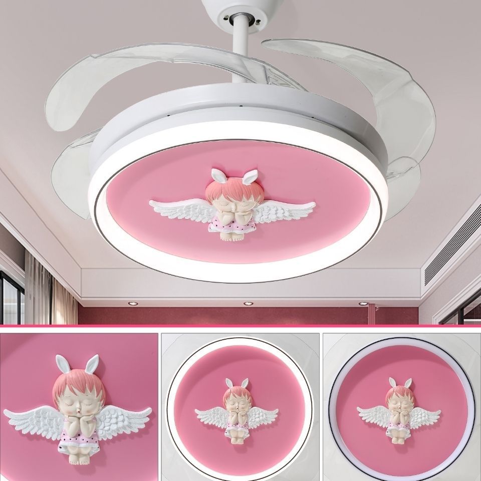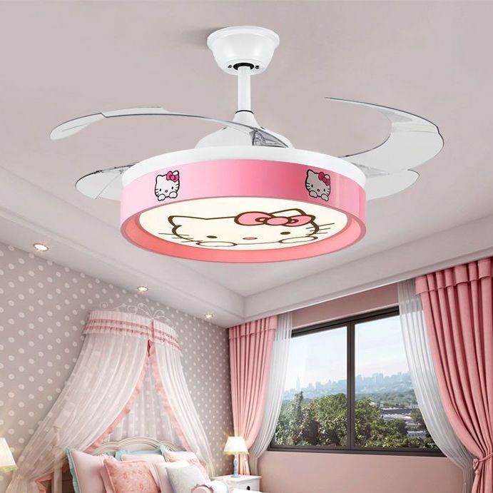 숨겨진 팬 램프 어린이 만화 창조적 인 성격 LED 눈 보호 침실 방 램프 팬 통합 램프