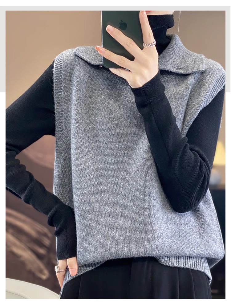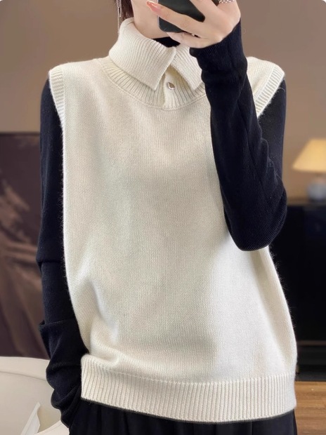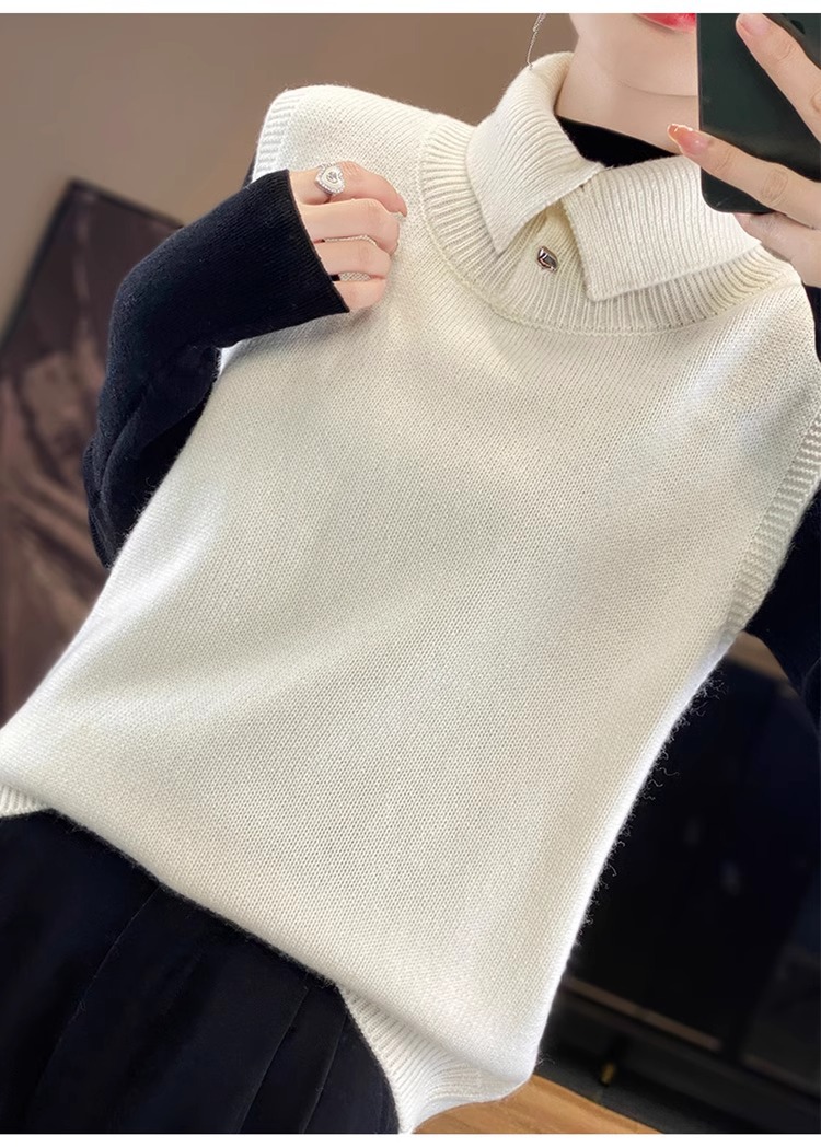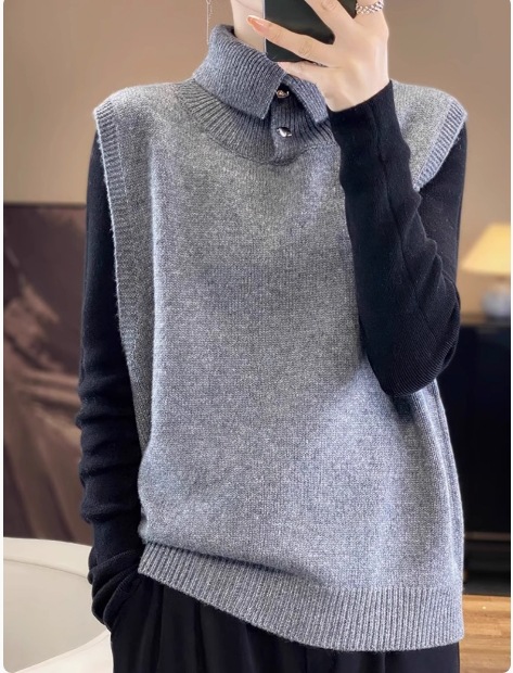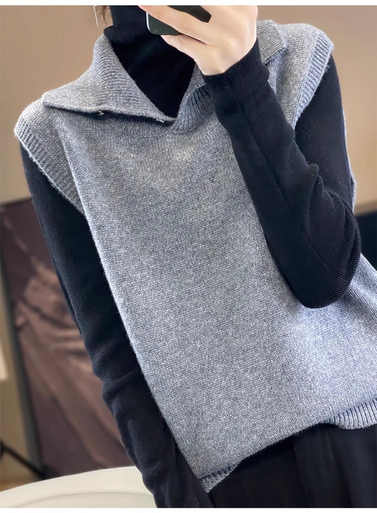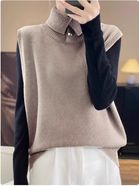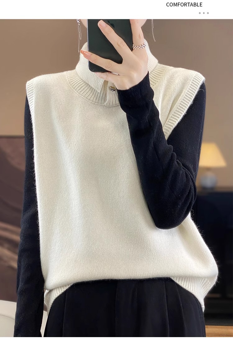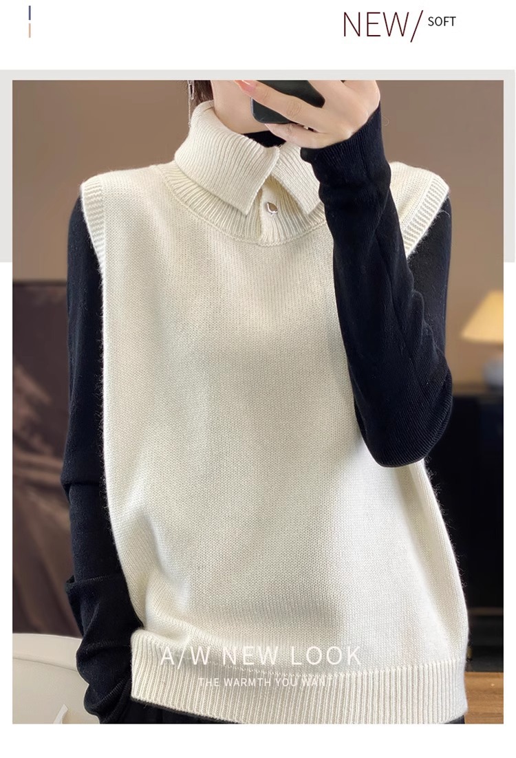 새로운 높은 목 조끼 여성의 가을과 겨울 풀오버 짧은 소매 허리 코트 느슨한 민소매 스웨터 니트 조끼