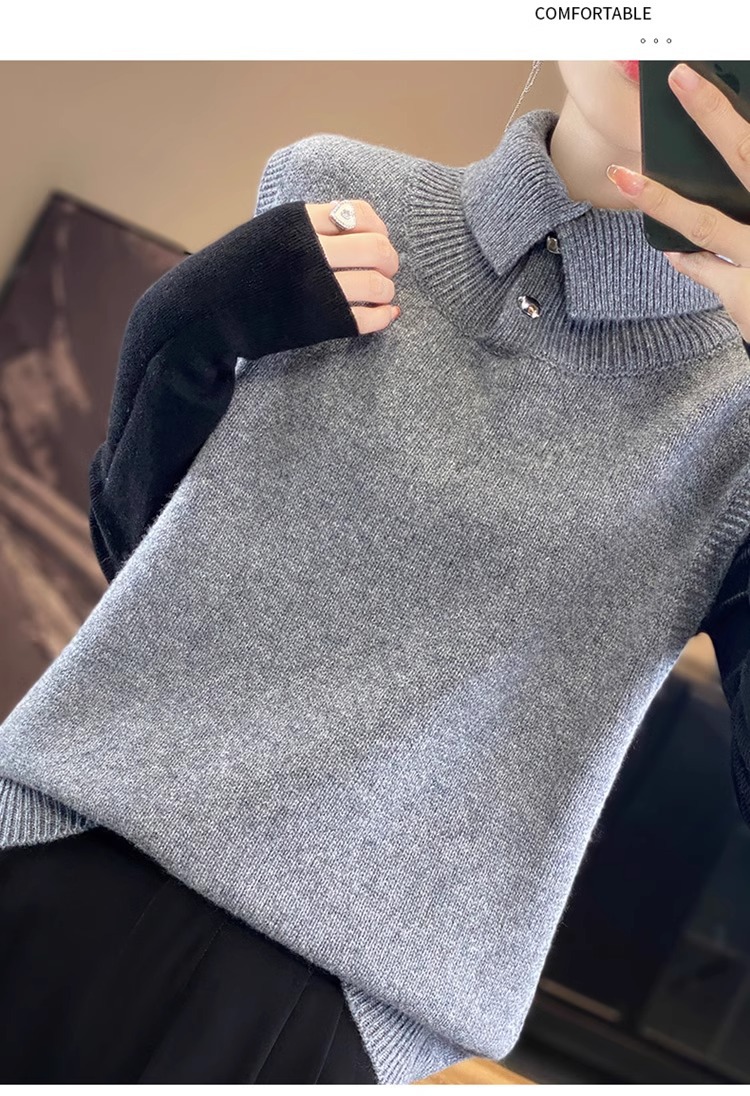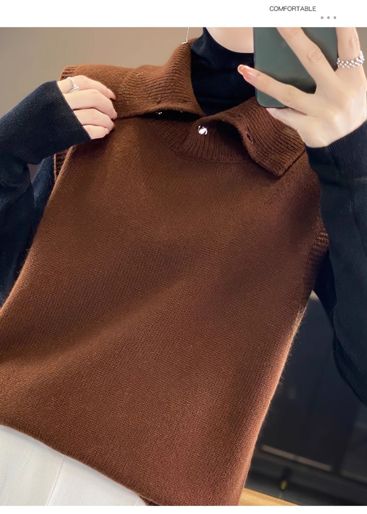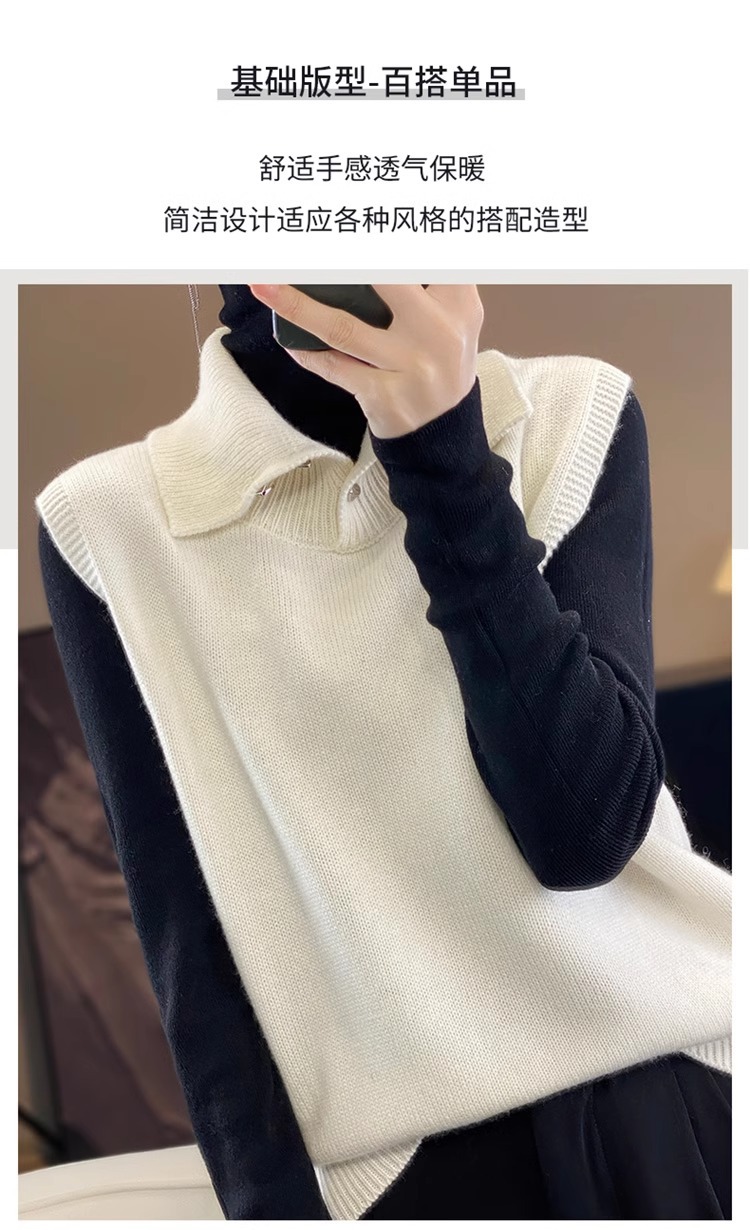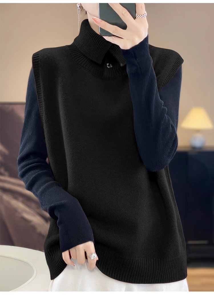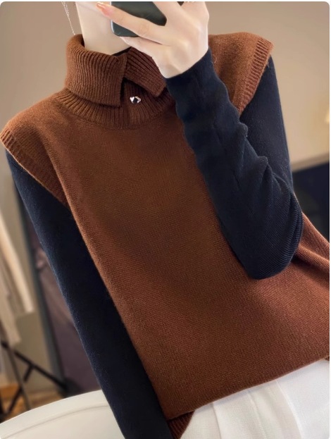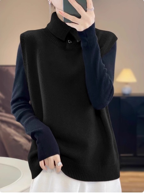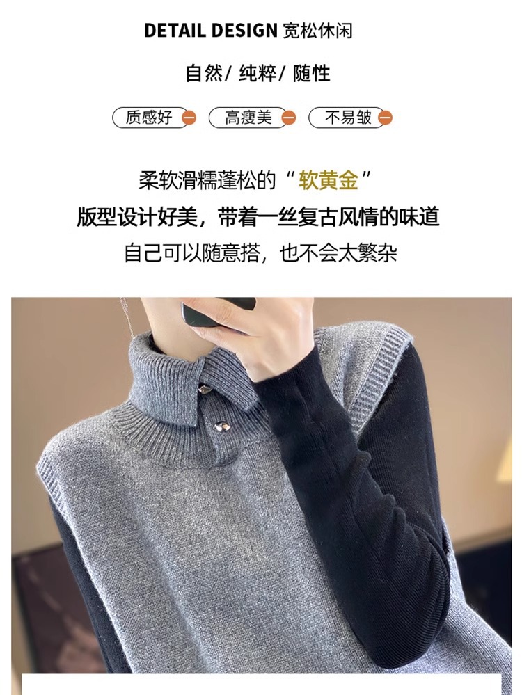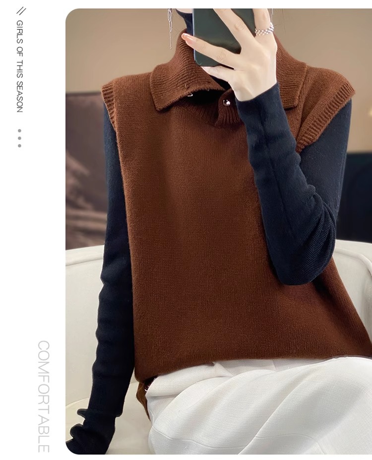 새로운 높은 목 조끼 여성의 가을과 겨울 풀오버 짧은 소매 허리 코트 느슨한 민소매 스웨터 니트 조끼