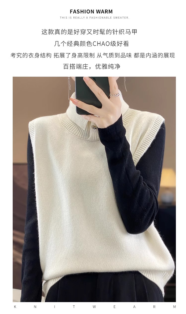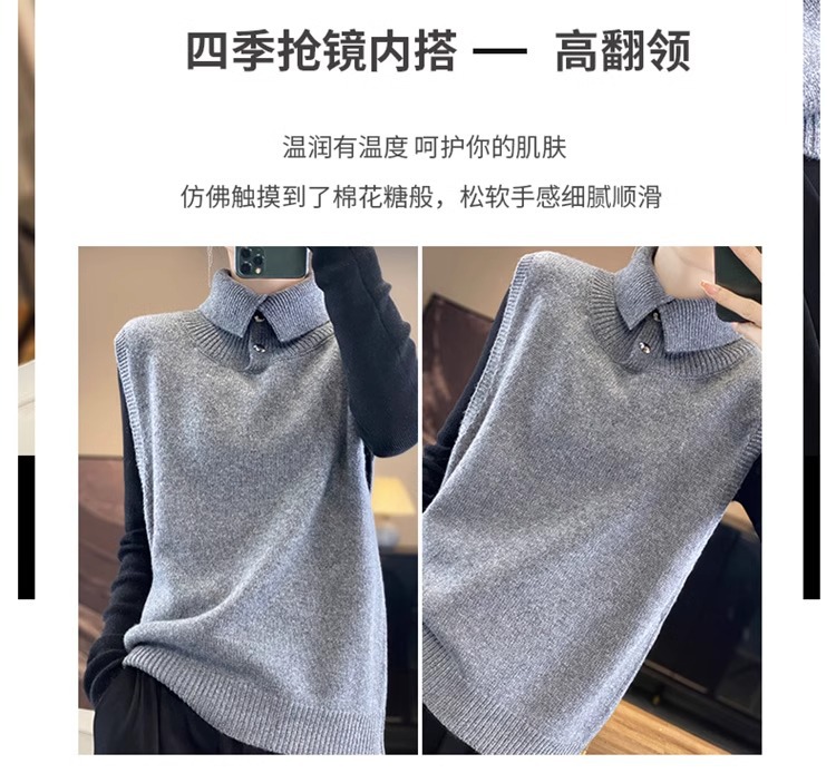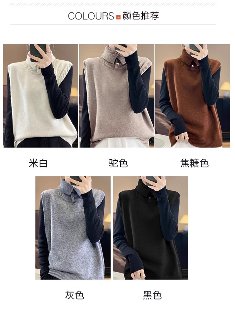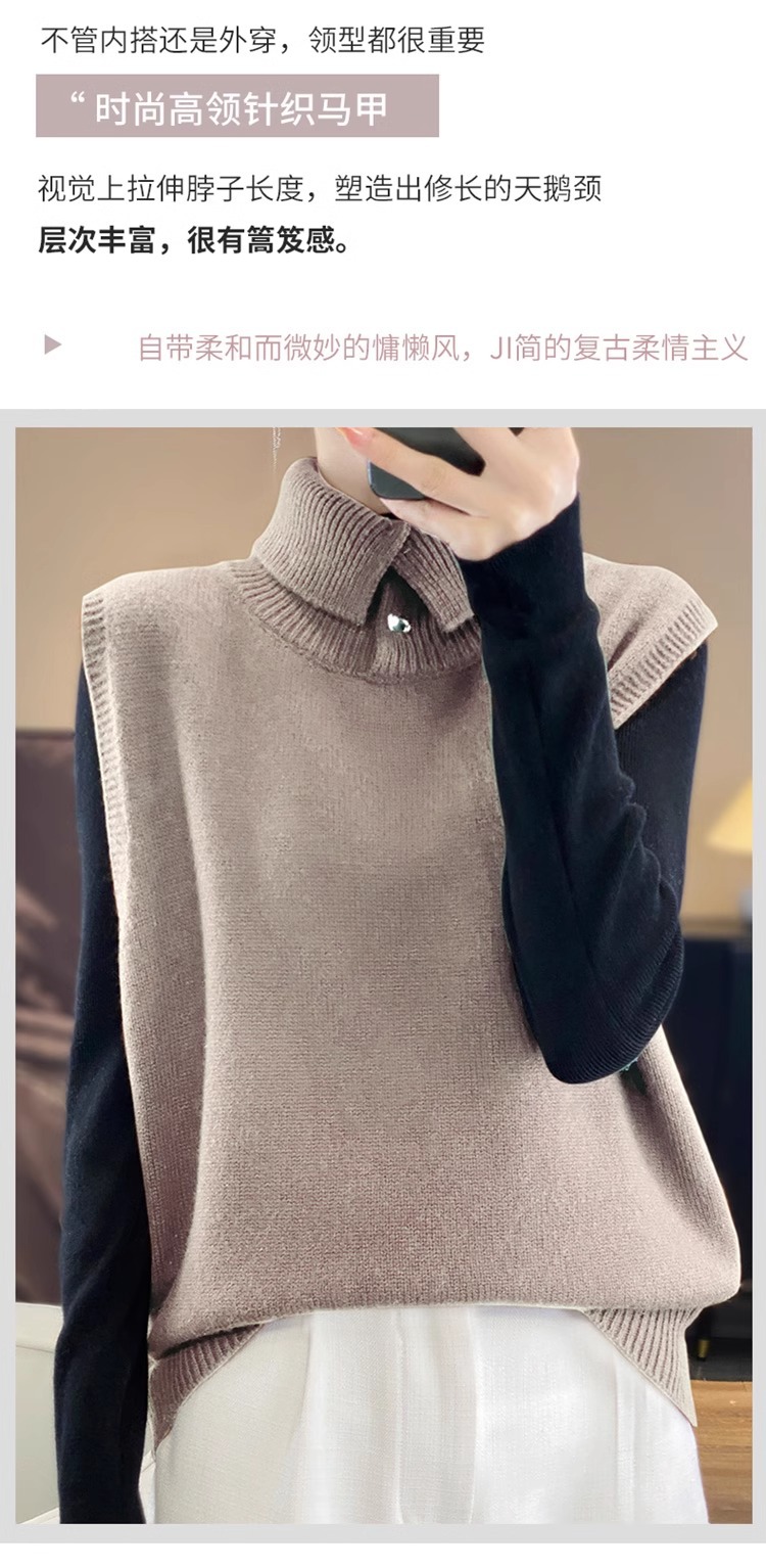 새로운 높은 목 조끼 여성의 가을과 겨울 풀오버 짧은 소매 허리 코트 느슨한 민소매 스웨터 니트 조끼스토어 가기