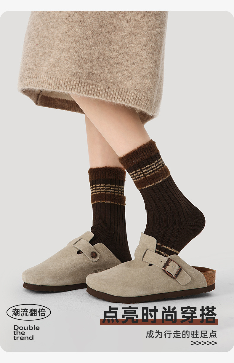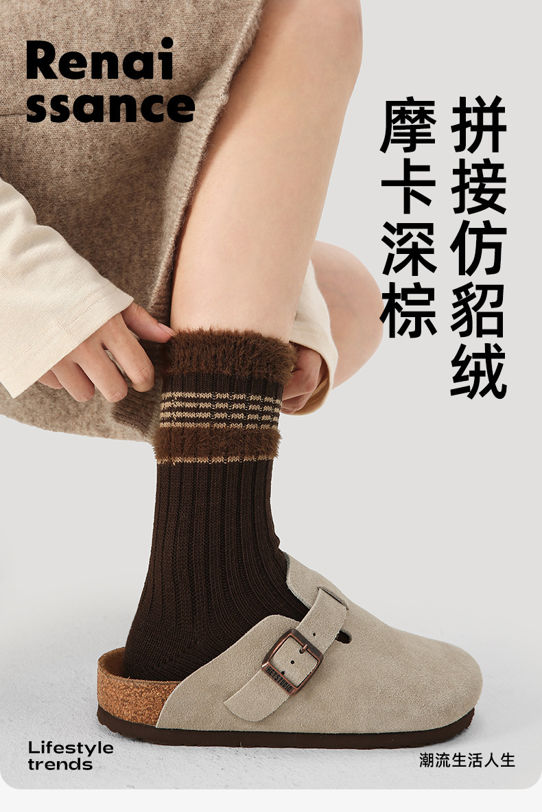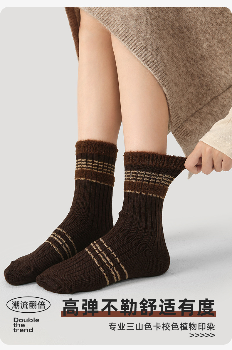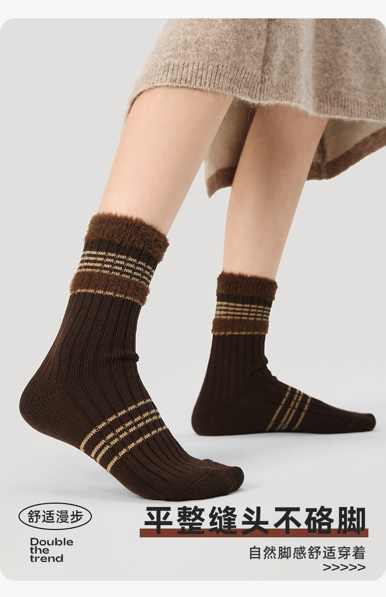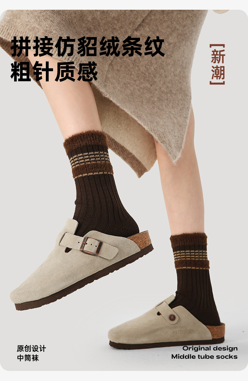 르네상스 가을과 겨울 다크 브라운 줄무늬 명암 따뜻한 양말 여성 미드 양말 Ins 유행 올 매치 더미 양말스토어 가기