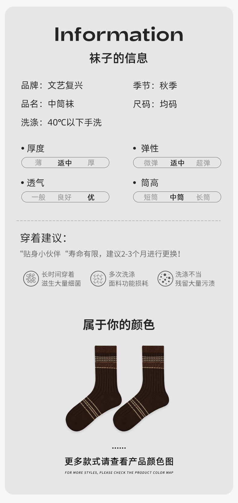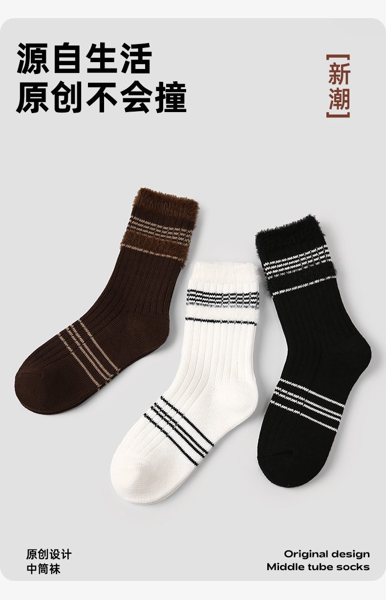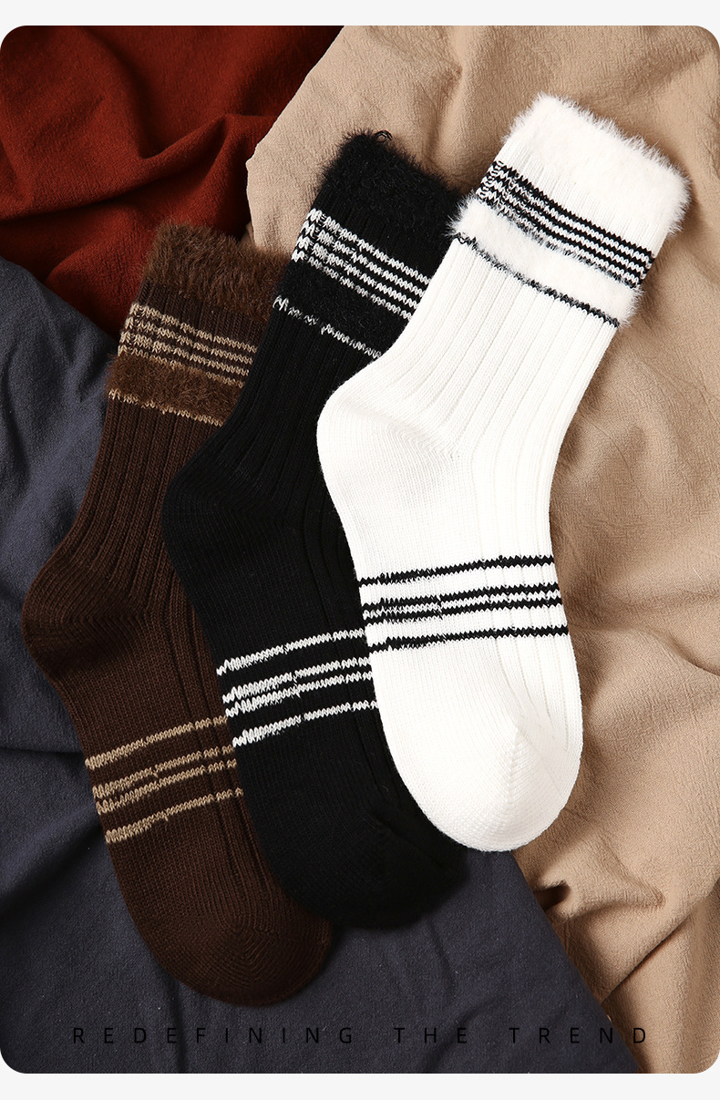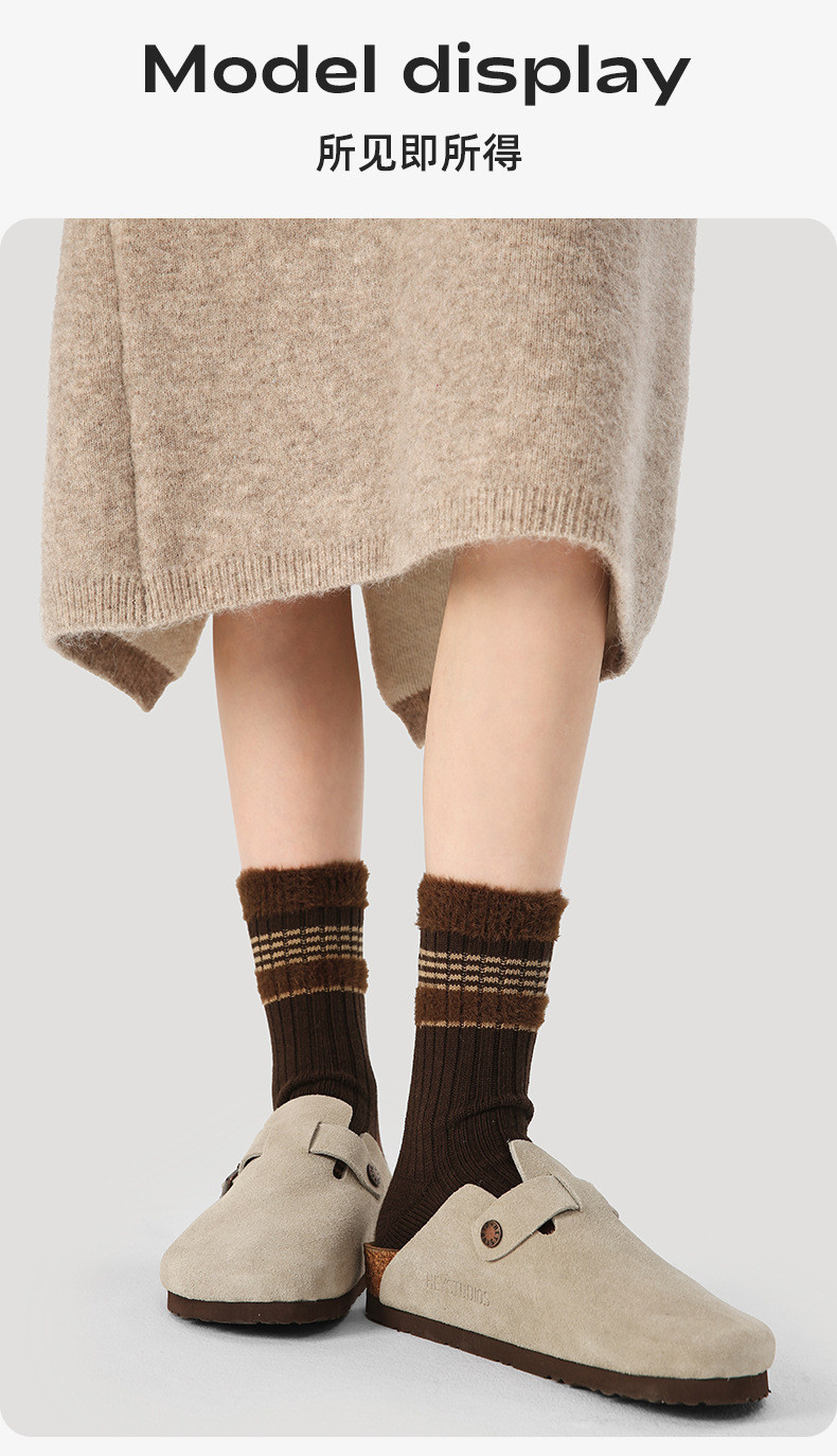 르네상스 가을과 겨울 다크 브라운 줄무늬 명암 따뜻한 양말 여성 미드 양말 Ins 유행 올 매치 더미 양말스토어 가기