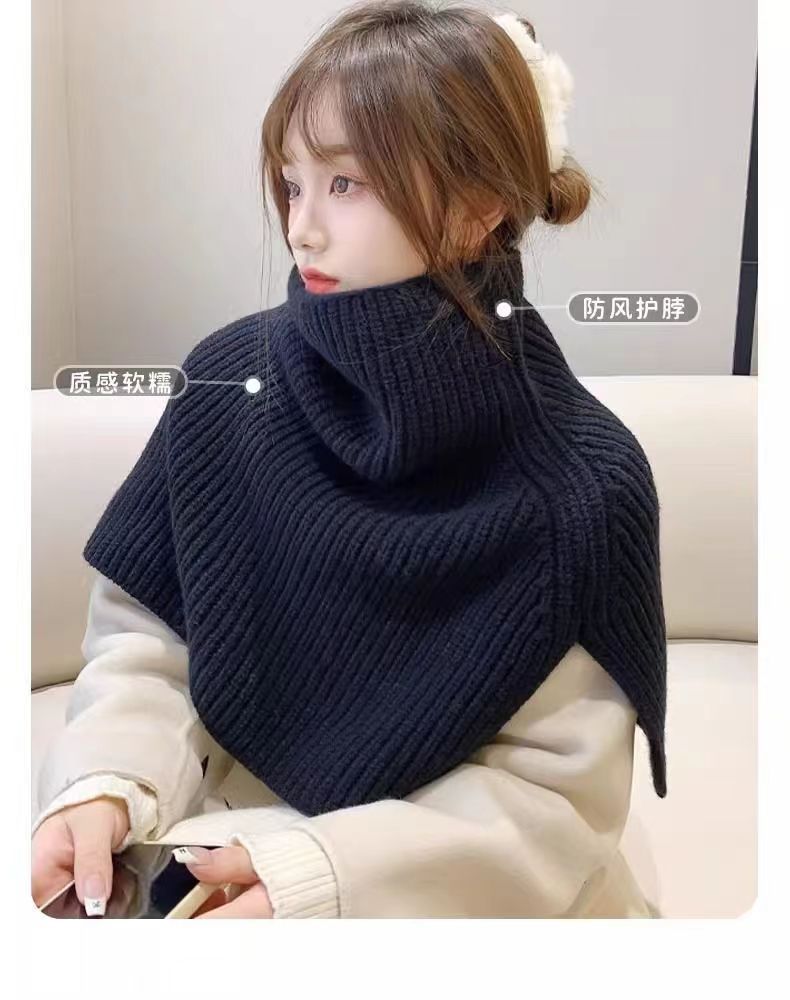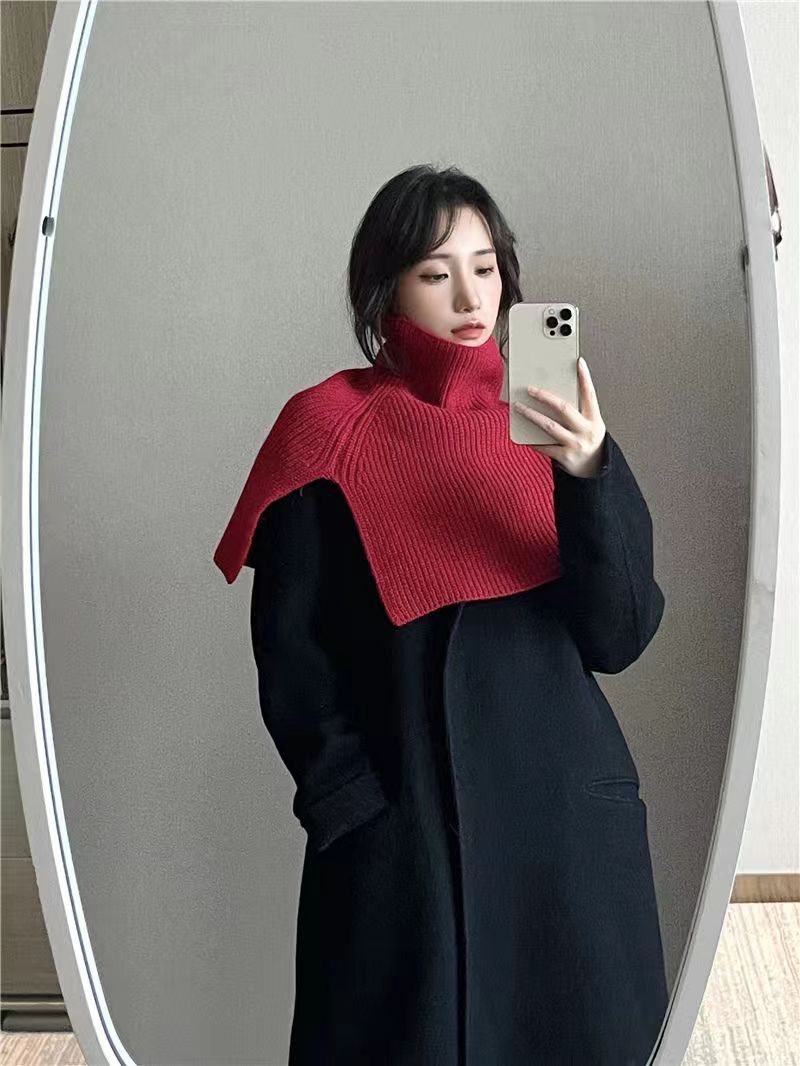 한국 스타일 큰 목 소매 여성 겨울 새로운 유행 외부 터프 스카프 단색 한국 스타일 올 매치 울 니트 목도리