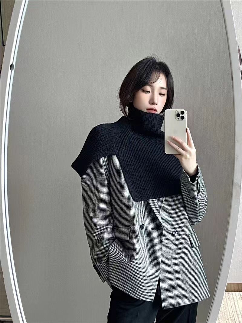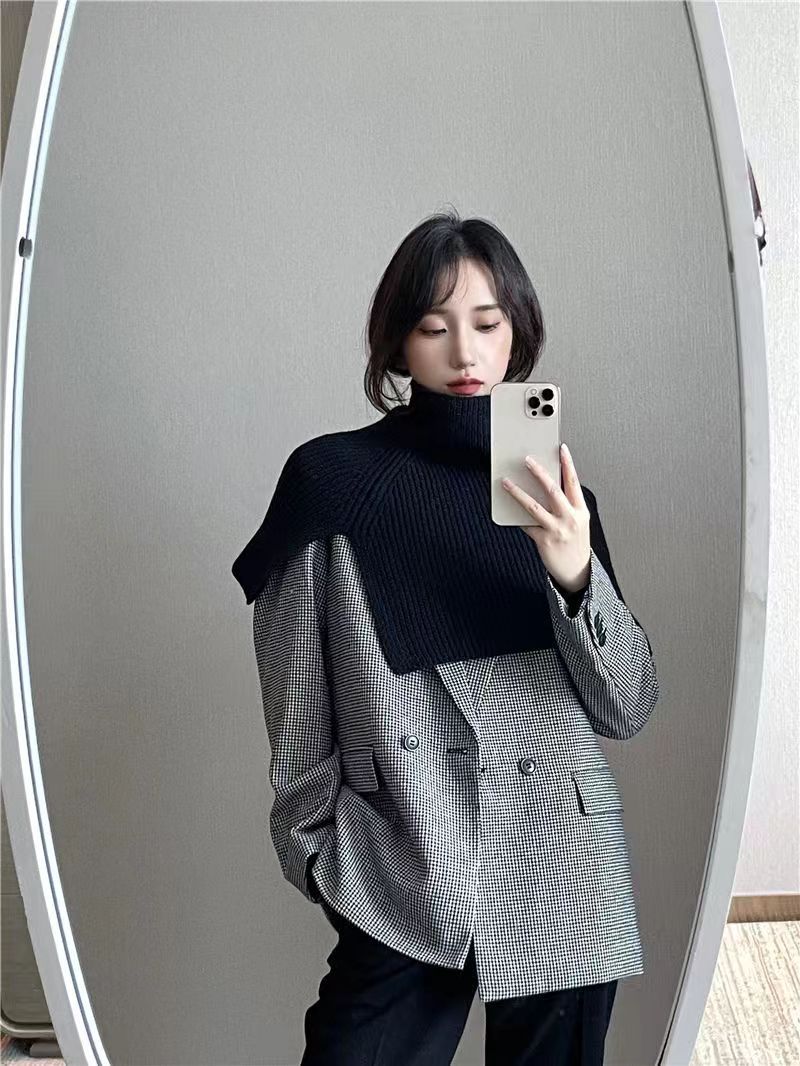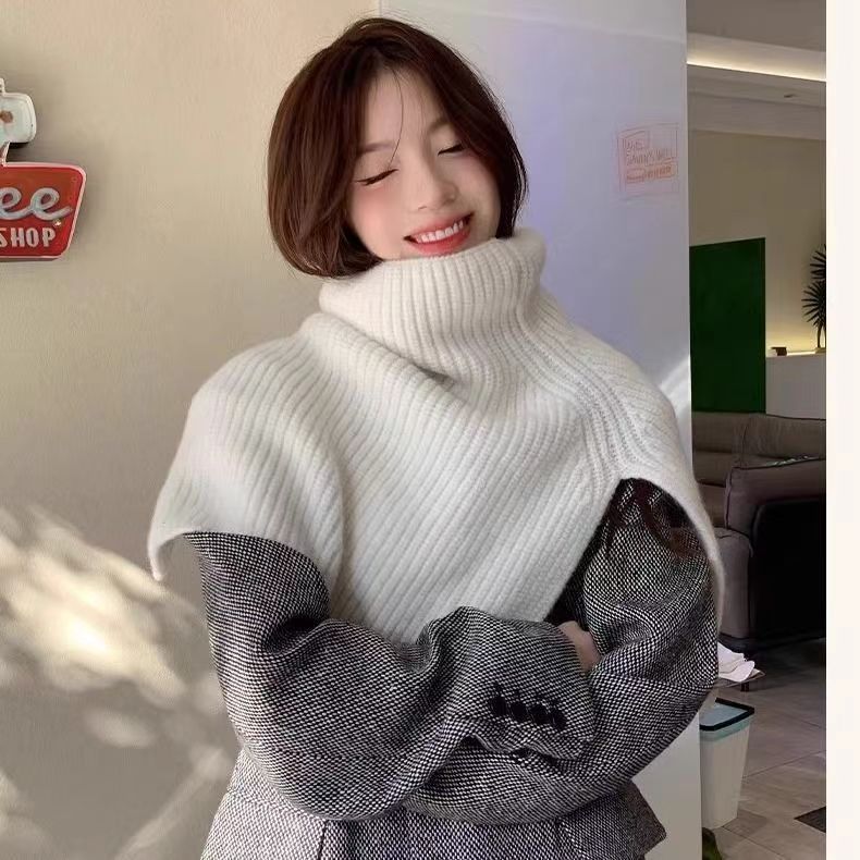 한국 스타일 큰 목 소매 여성 겨울 새로운 유행 외부 터프 스카프 단색 한국 스타일 올 매치 울 니트 목도리스토어 가기