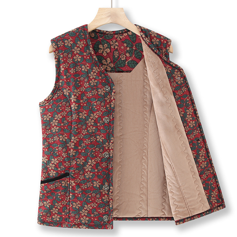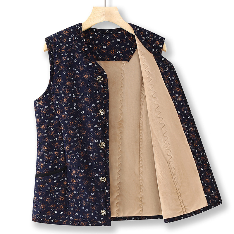 할머니 가을 기모 중년 및 노인 여성 내부 플러스 사이즈 재킷 조끼 어머니의 두꺼운 따뜻한 자켓