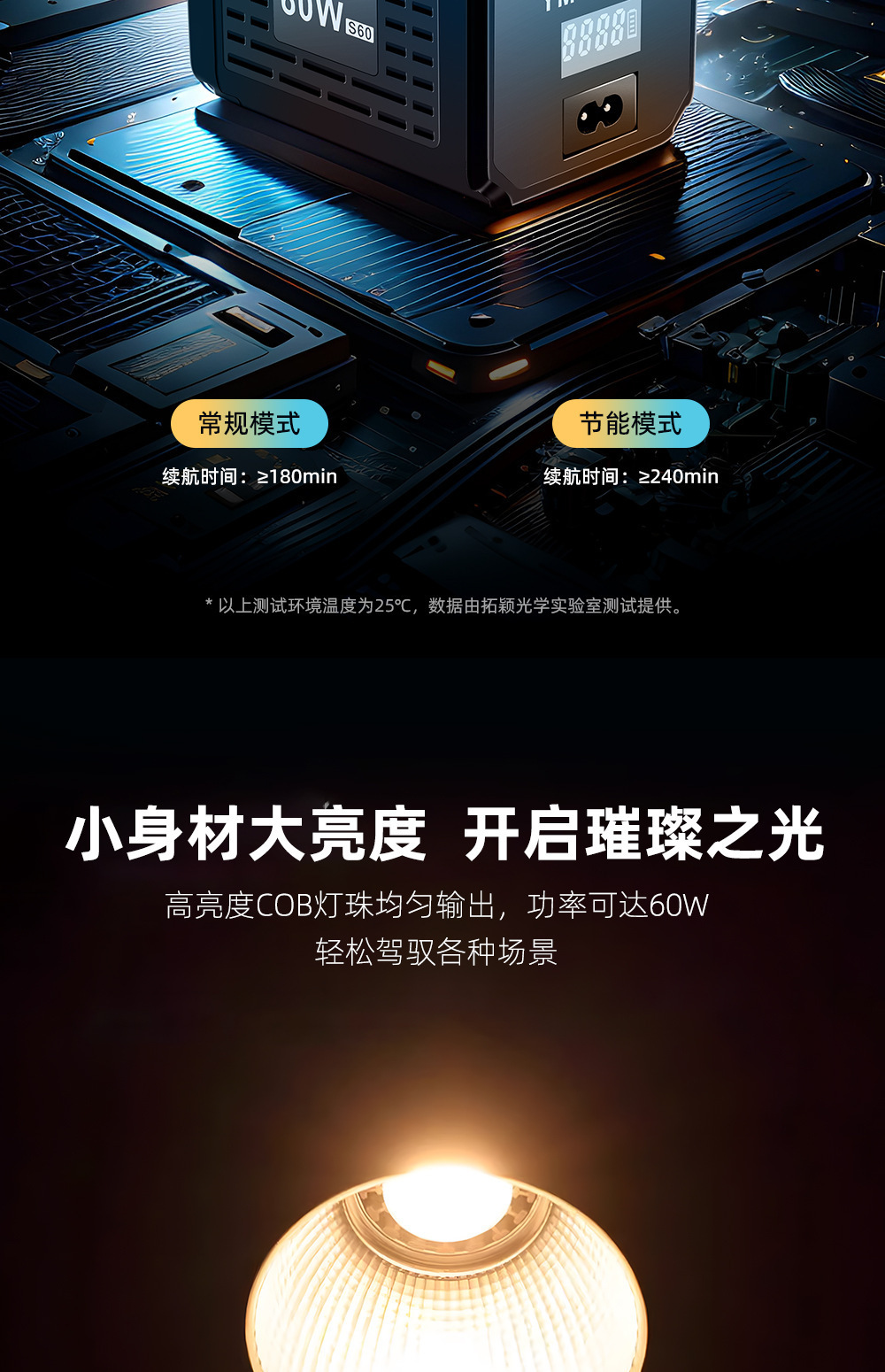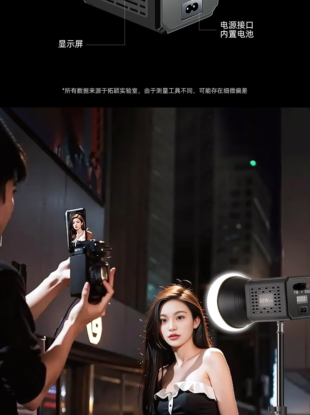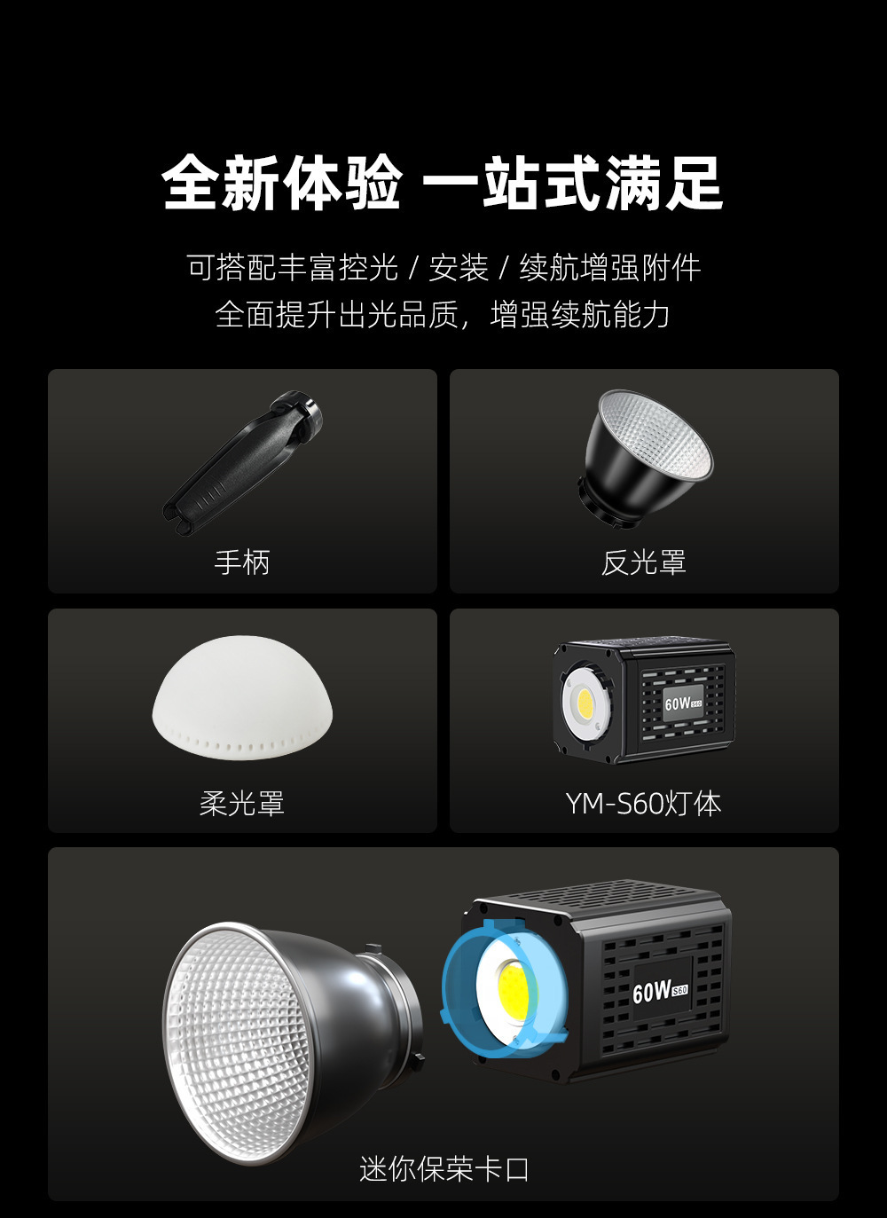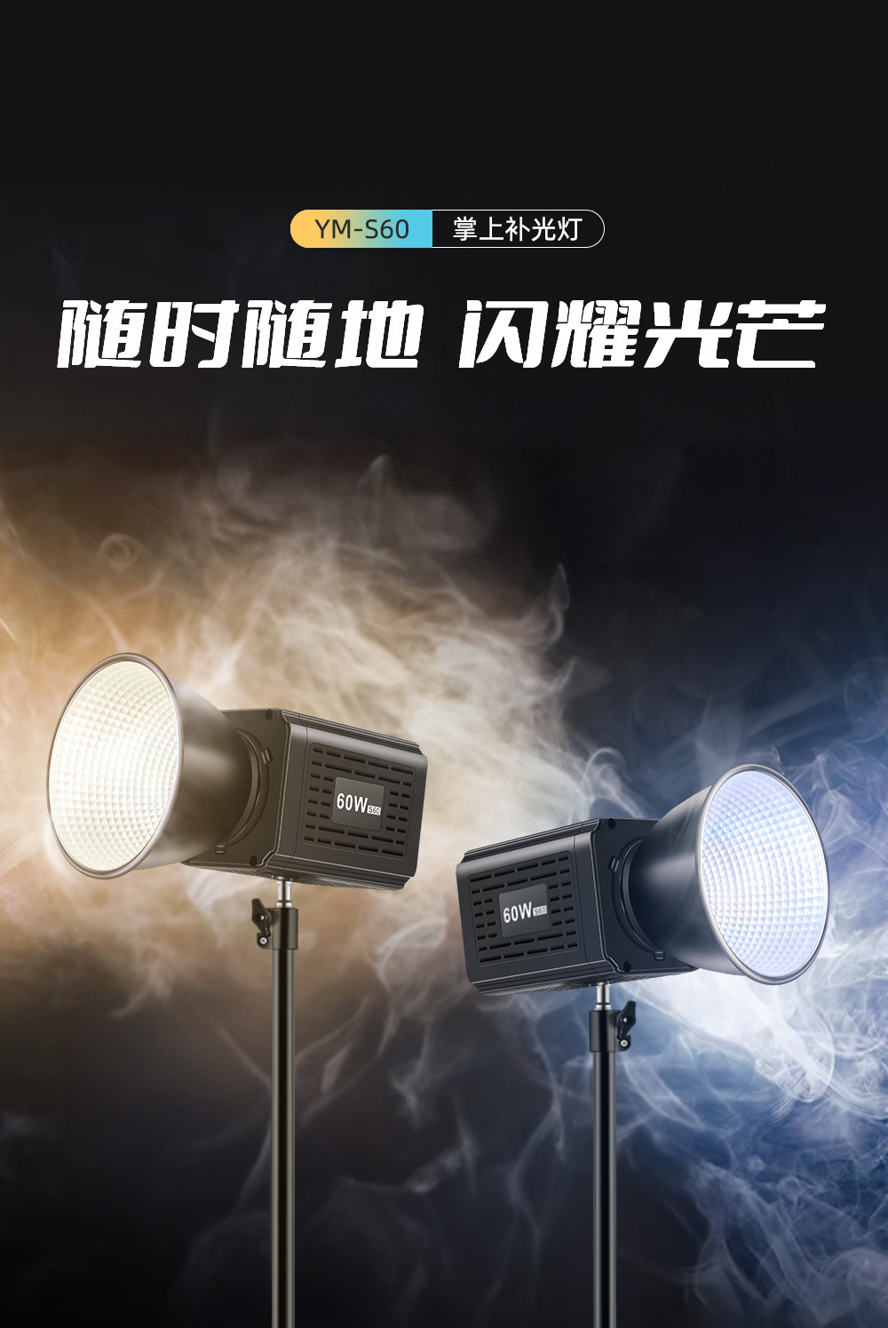 YM-S60 라이브 라이트 COB 태양 빛 야외 휴대용 뷰티 라이트 야외 촬영 스포트라이트 사진 라이트스토어 가기