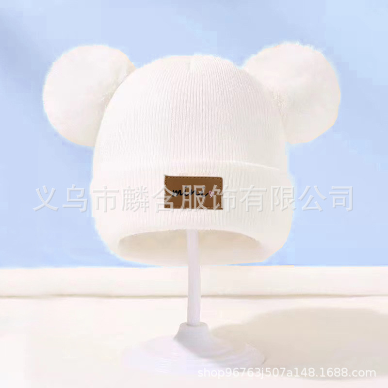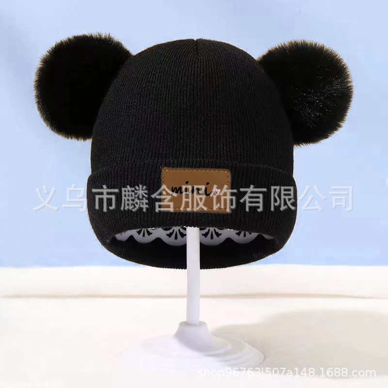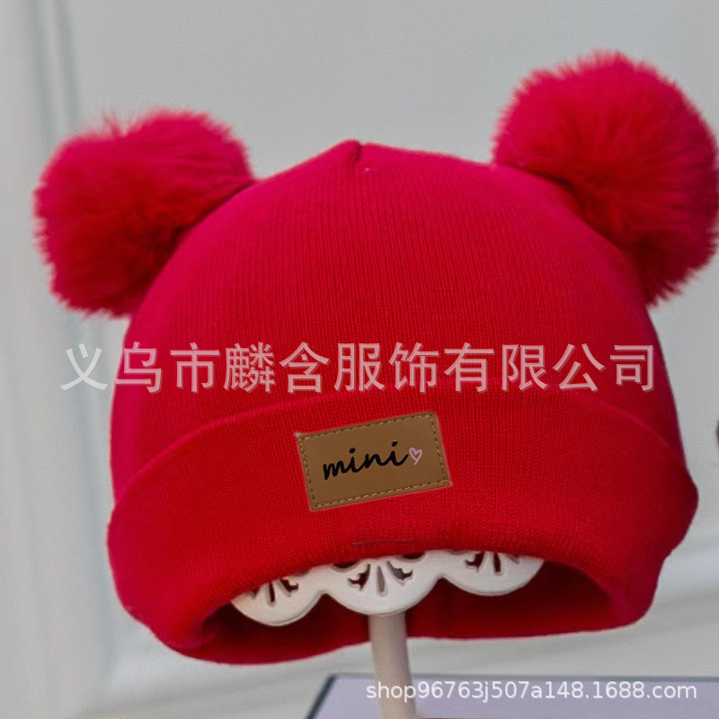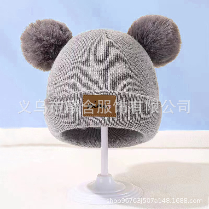 가을과 겨울 어린이 니트 모자 소년의 아기 양모 모자 귀여운 모피 공 감기 방지 따뜻한 가죽 라벨 소녀 풀오버 캡