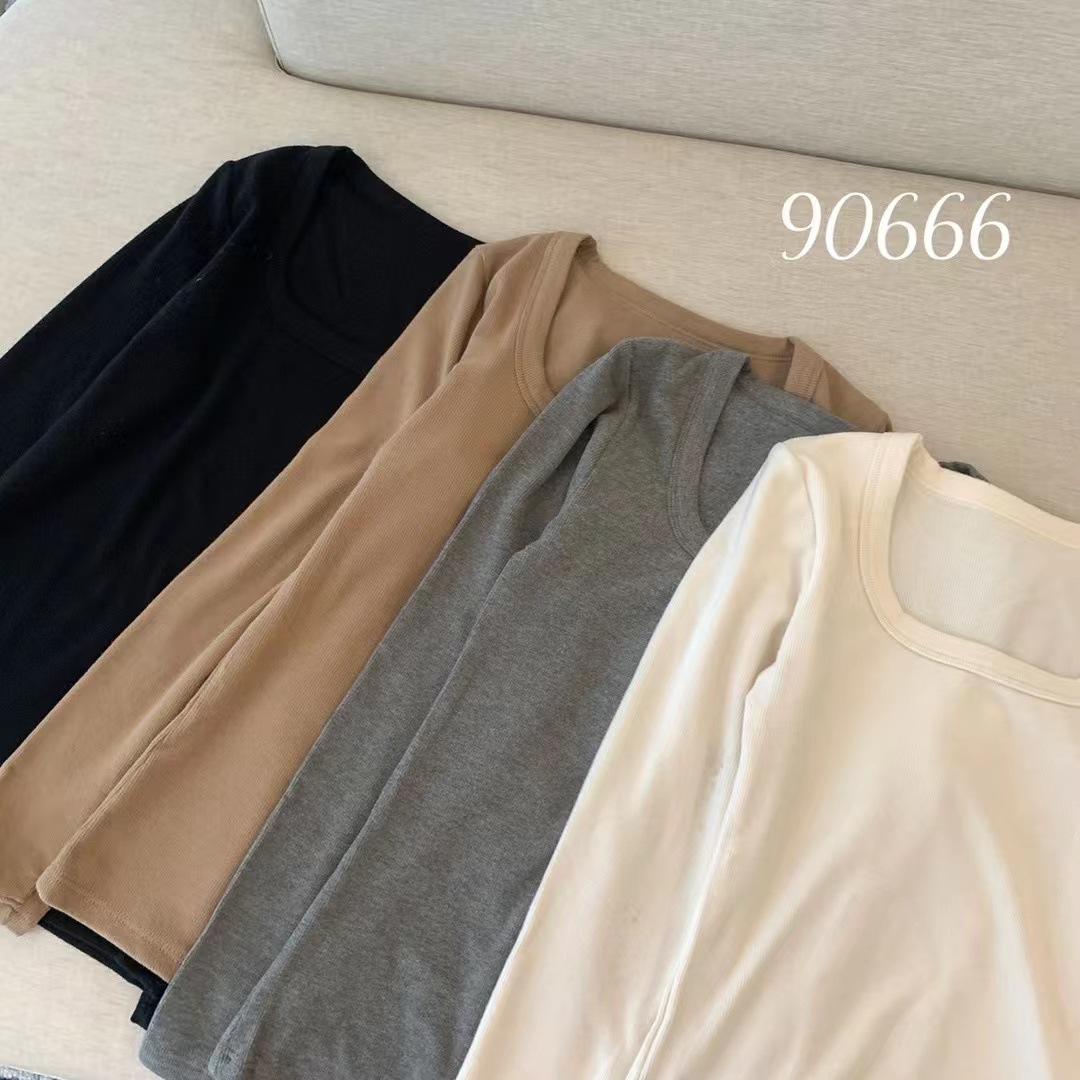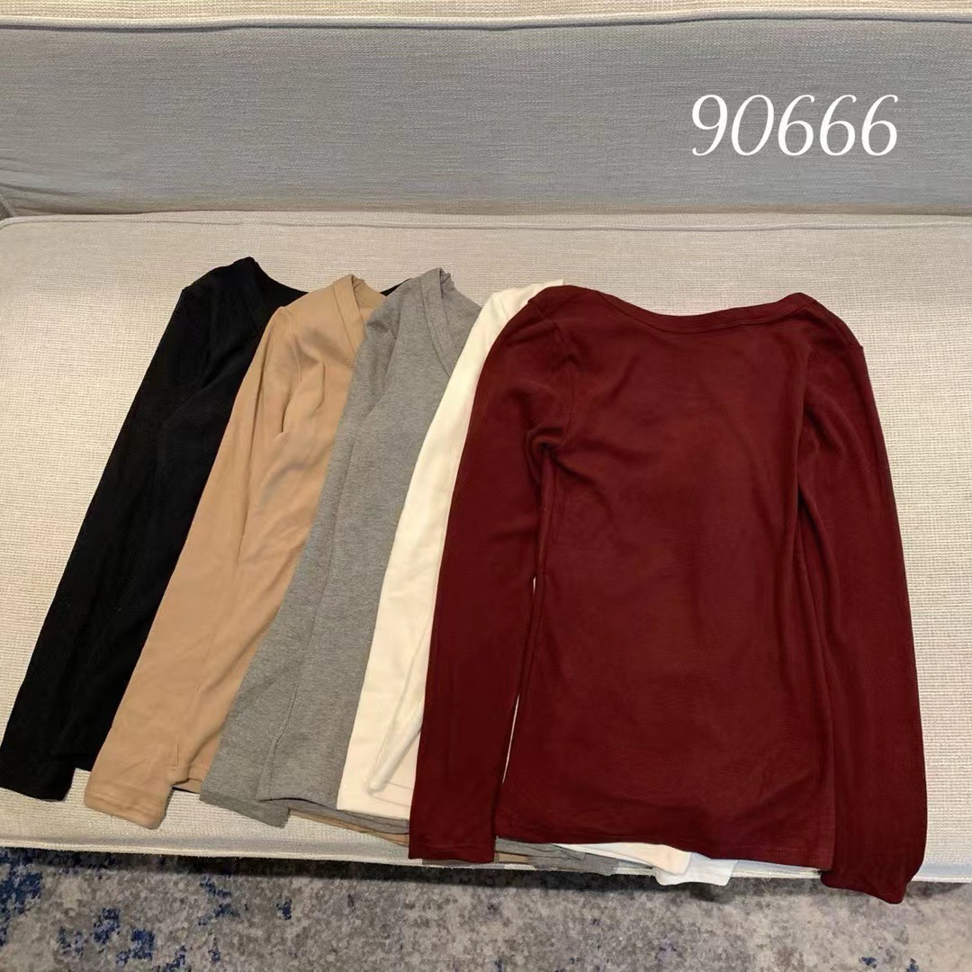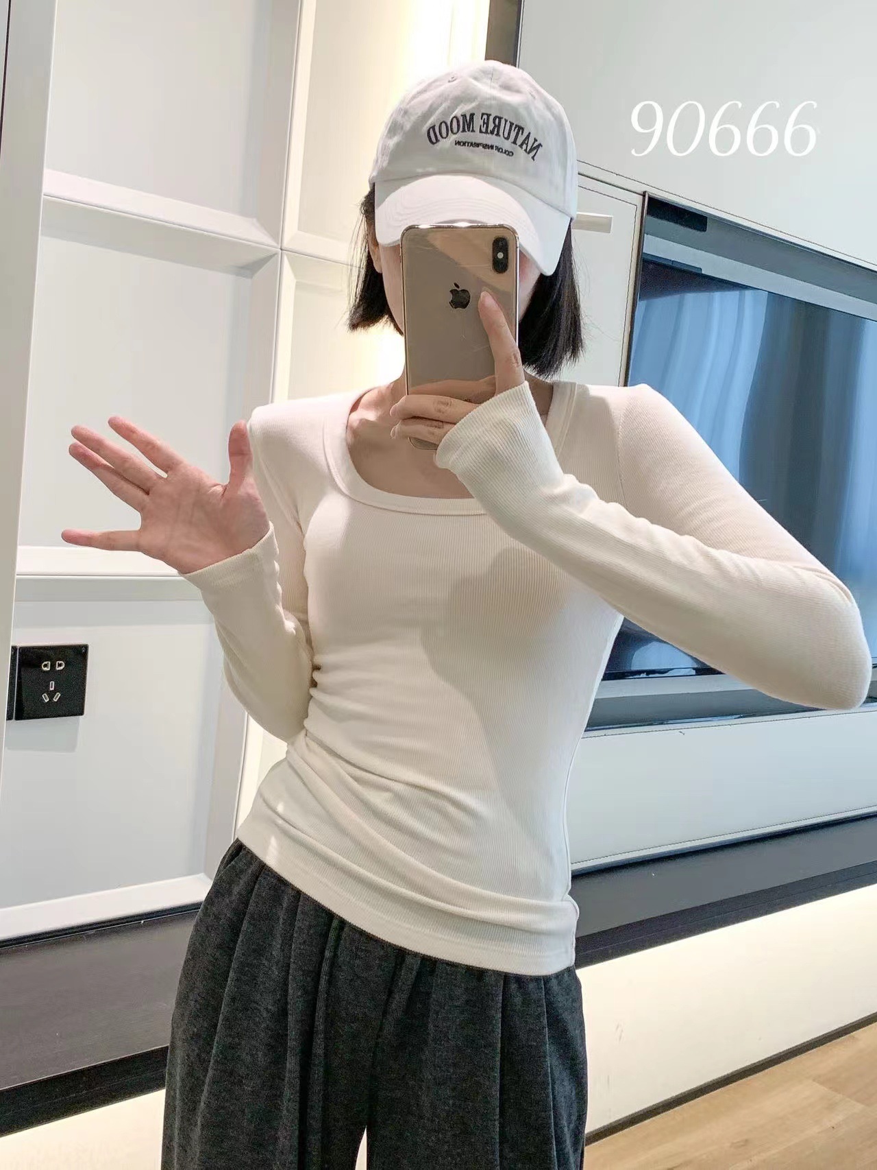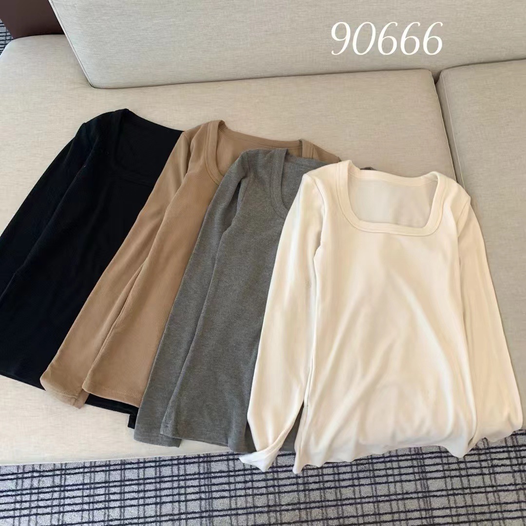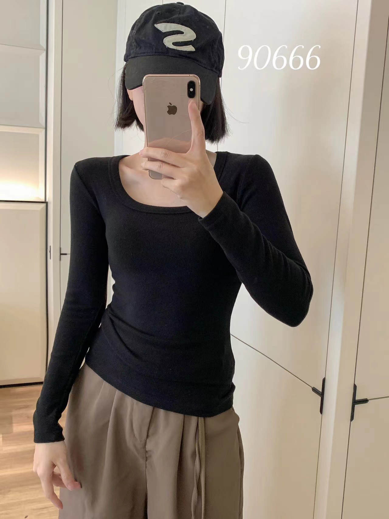 90666 스퀘어 칼라 얇은 벨벳 스레드베이스 셔츠 여성용 가을과 겨울 긴팔 티셔츠 내부 착용 긴팔 탑