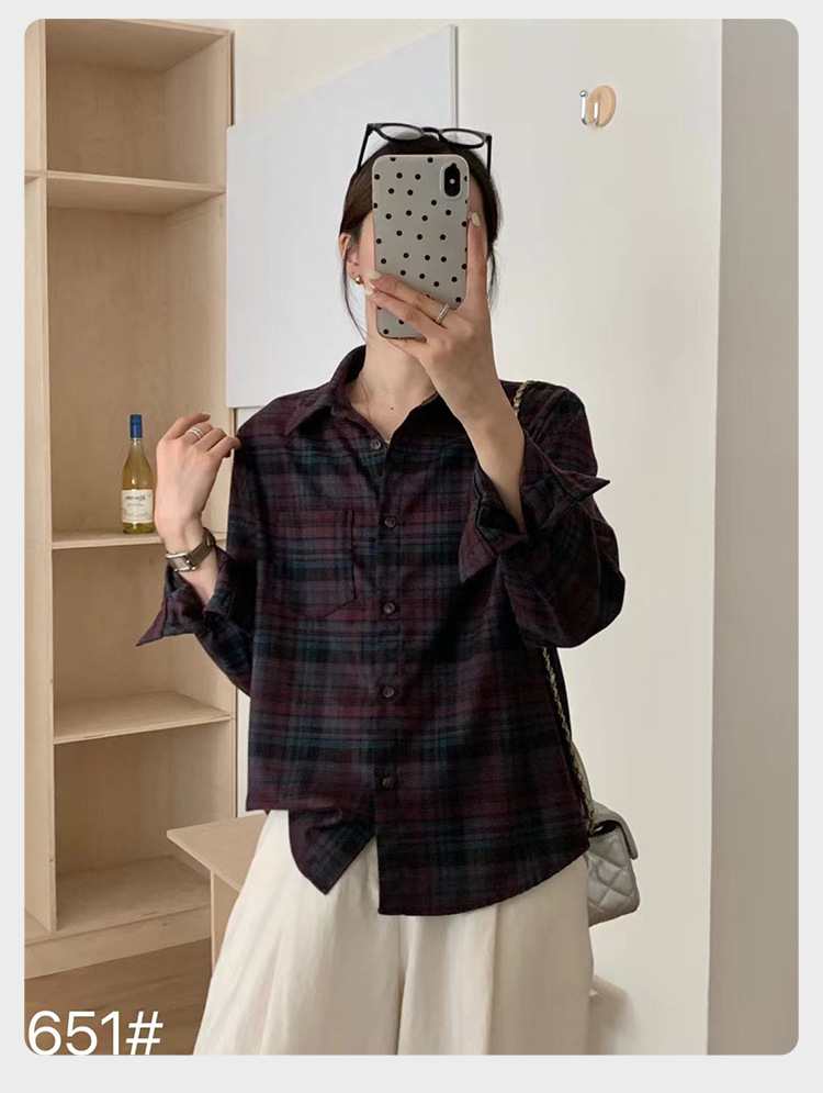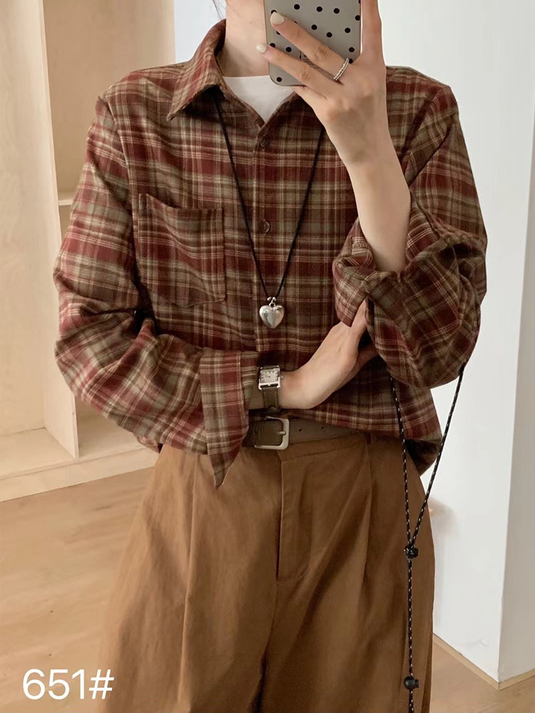예술적 스타일 세련된 복고풍 격자 무늬 셔츠 재킷 두꺼운 가을과 겨울 쌓인 일본 격자 무늬 셔츠스토어 가기