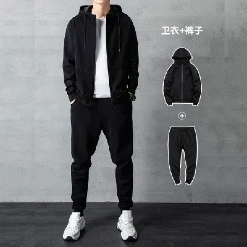 캐주얼 스포츠 세트 남성 봄 패션 브랜드 남성 단색 후드 의류 긴 소매 스웨터 바지 남성 코트 패션