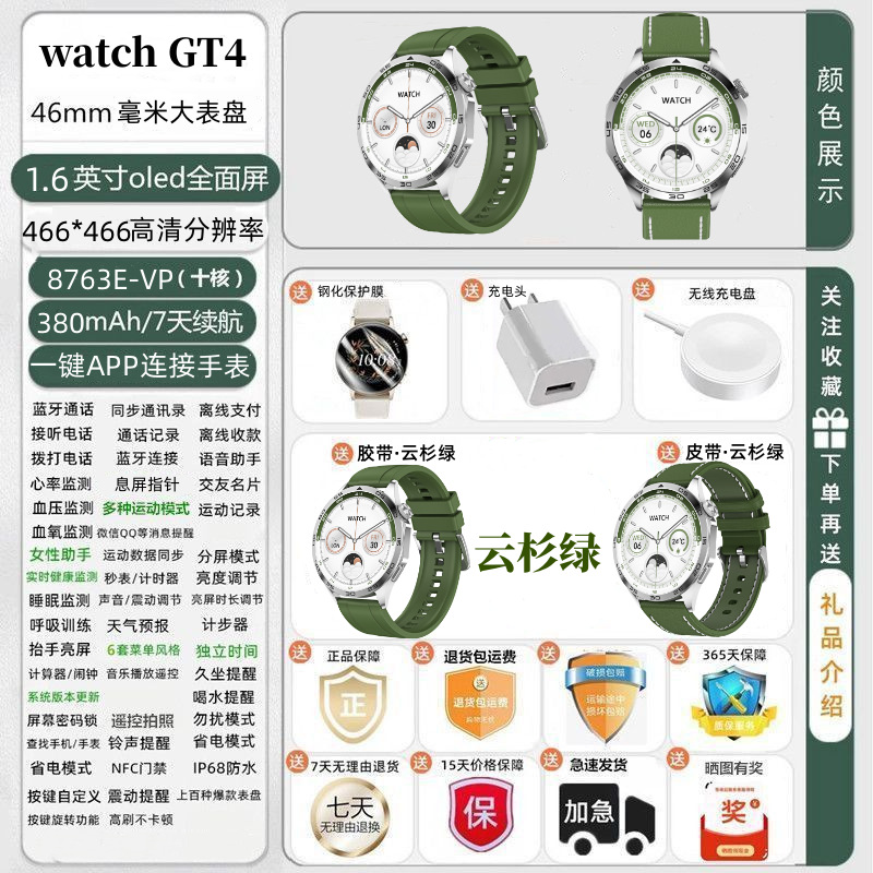• Yaoyao Lingxian [스프루스 그린]에는 실리콘 스트랩 + 가죽 스트랩이 함께 제공됩니다.