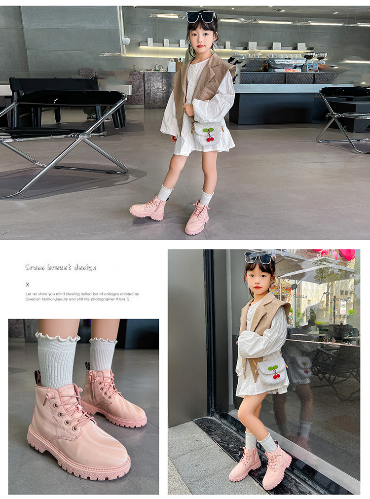 어린이 마틴 부츠 2024 새로운 가을 소년 부츠 사이드 지퍼 싱글 중 작은 어린이 소녀 가죽 부츠 국경 조수