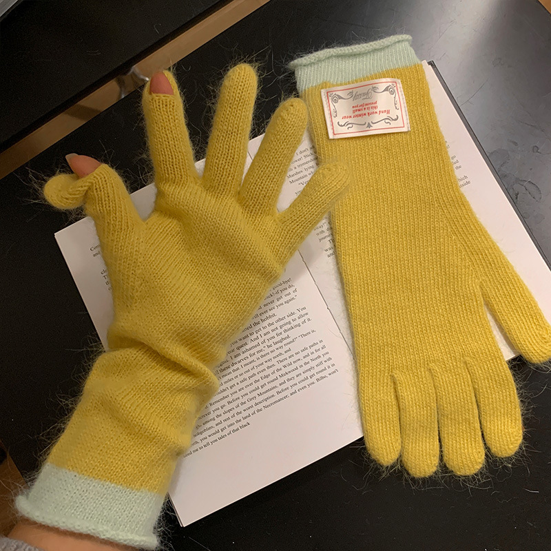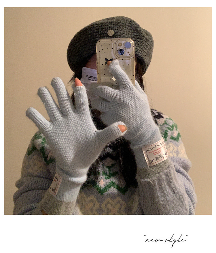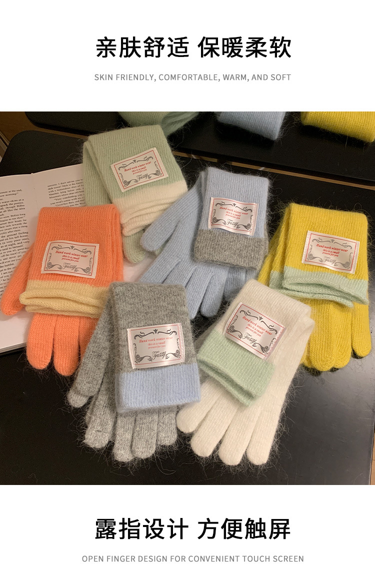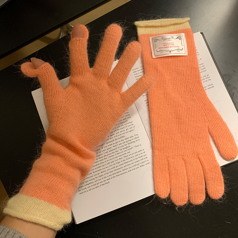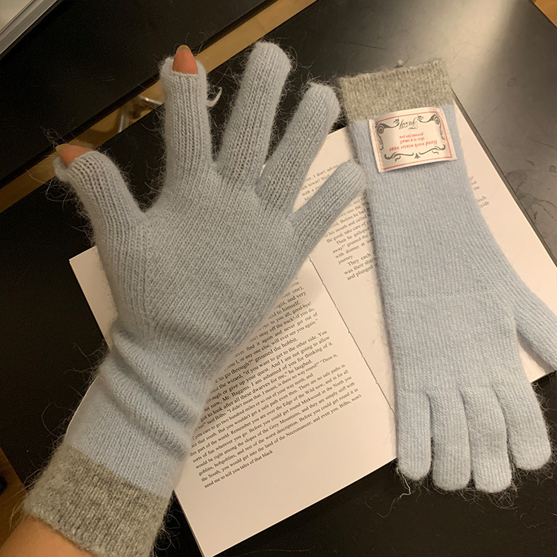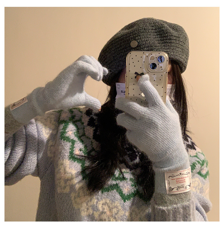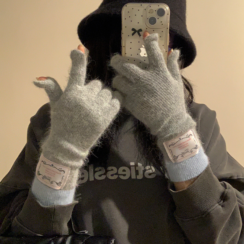 한국식 패치 토끼 머리 회색 니트 장갑 여성의 2024 가을과 겨울 손가락 따뜻한 올 매치 터치 스크린 사이클링 트렌드스토어 가기