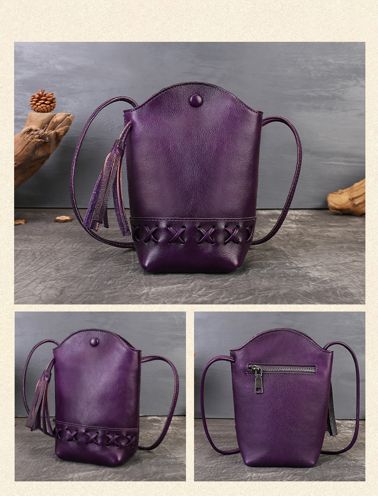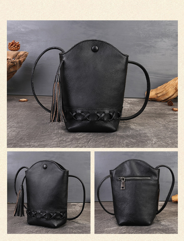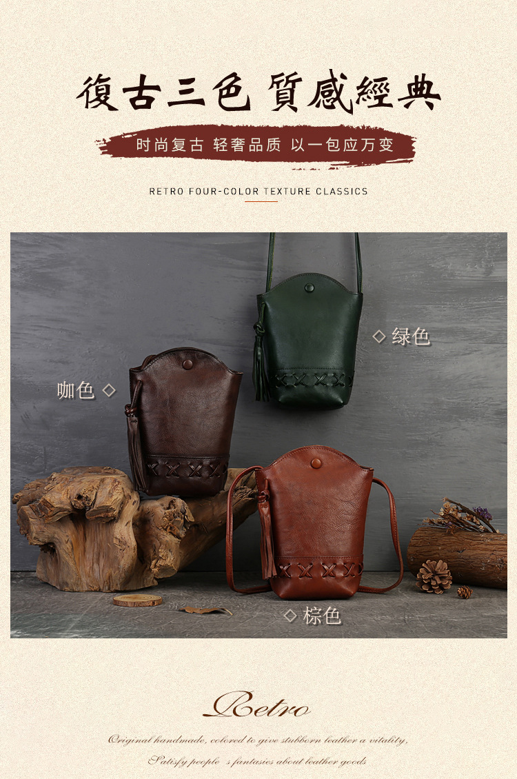 새로운 정품 가죽 여성 가방 복고풍 첫 번째 레이어 소 가죽 짠 휴대 전화 가방 미니 크로스 바디 어깨 캐주얼 술 버킷 가방스토어 가기
