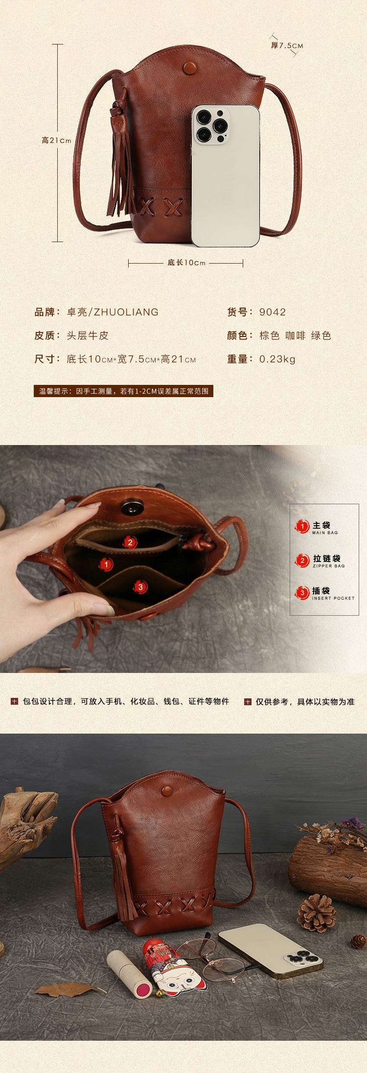 새로운 정품 가죽 여성 가방 복고풍 첫 번째 레이어 소 가죽 짠 휴대 전화 가방 미니 크로스 바디 어깨 캐주얼 술 버킷 가방