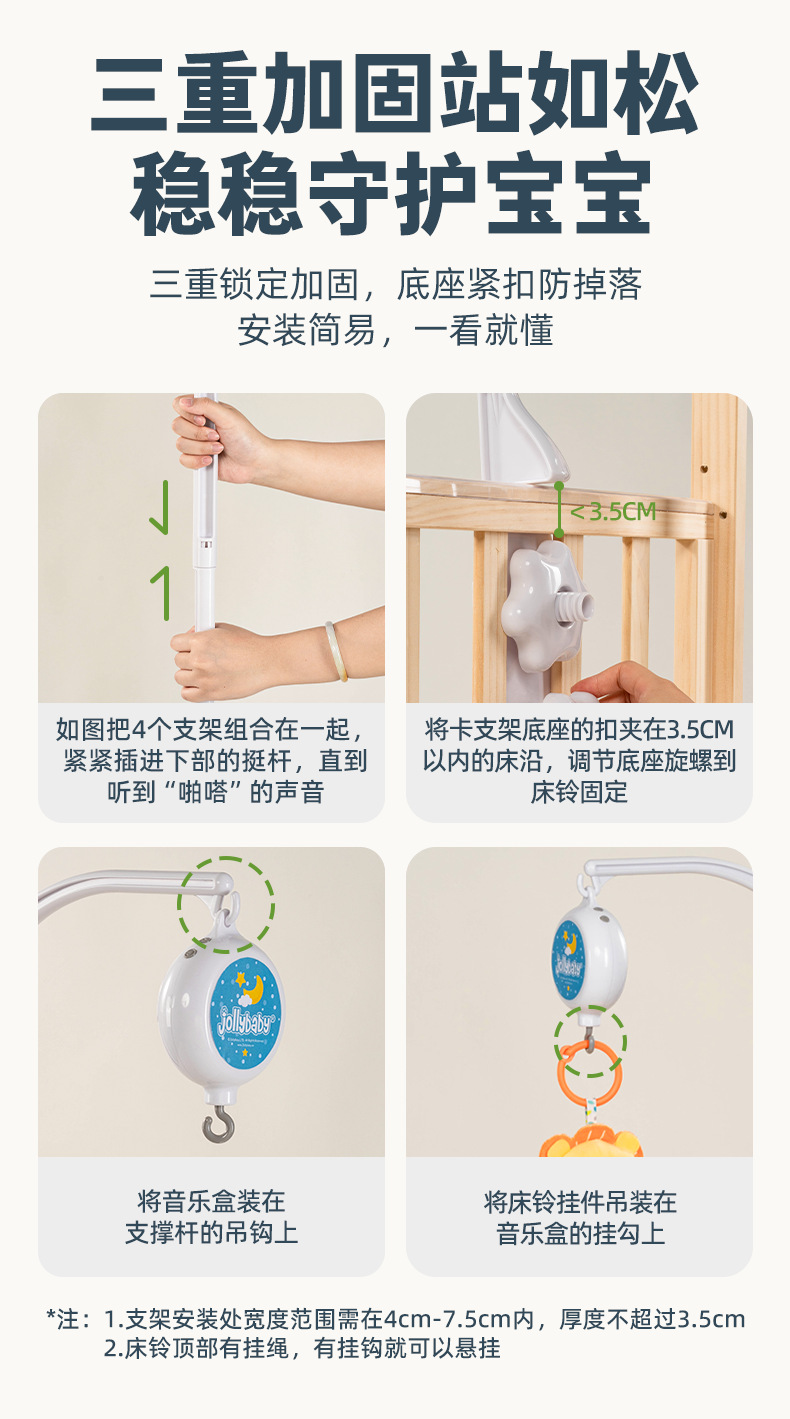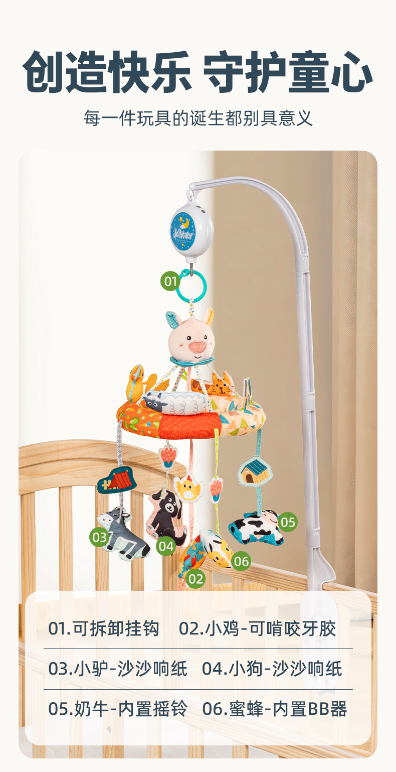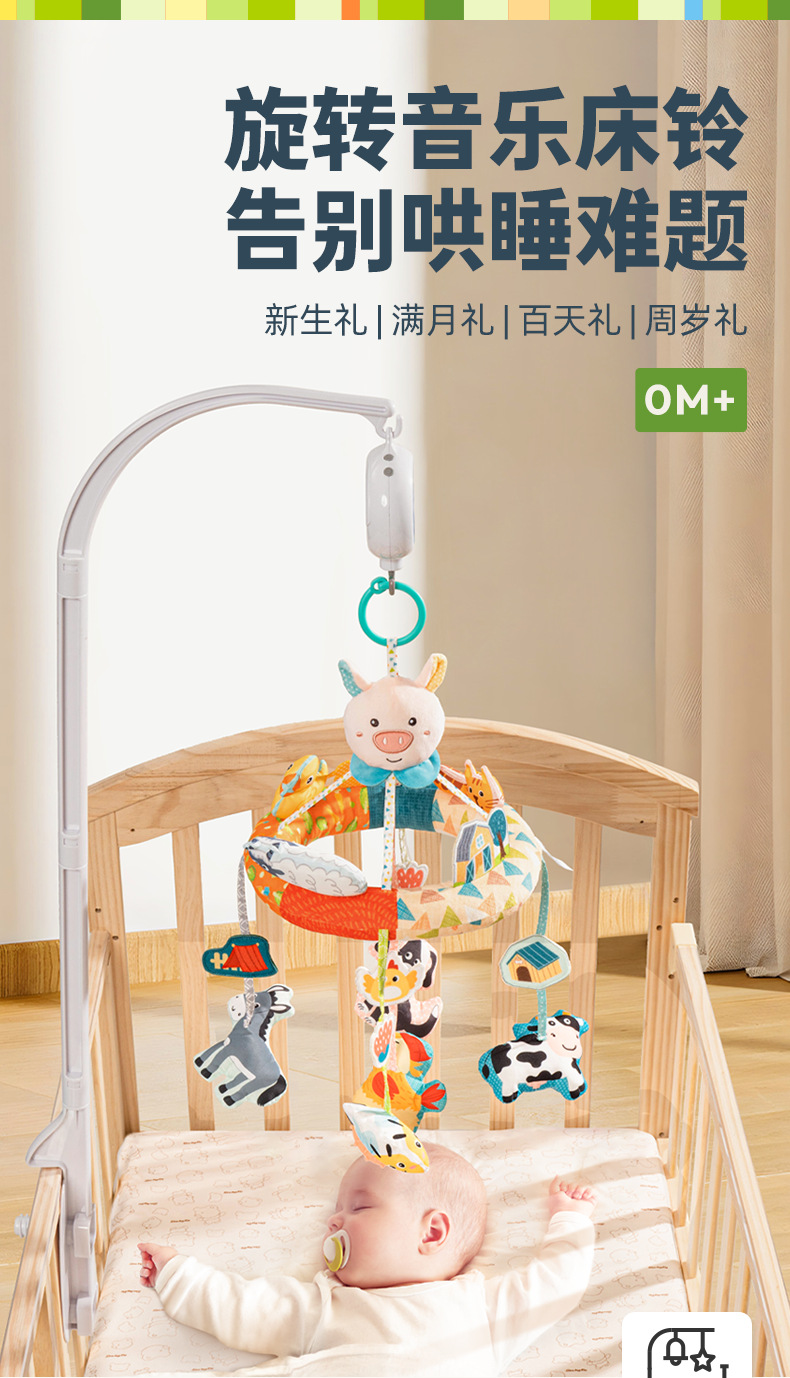 국경 간 아기 회전 음악 침대 벨 아기 진정 수면 음악 상자 매달려 침대 옆 딸랑이 신생아 장난감스토어 가기