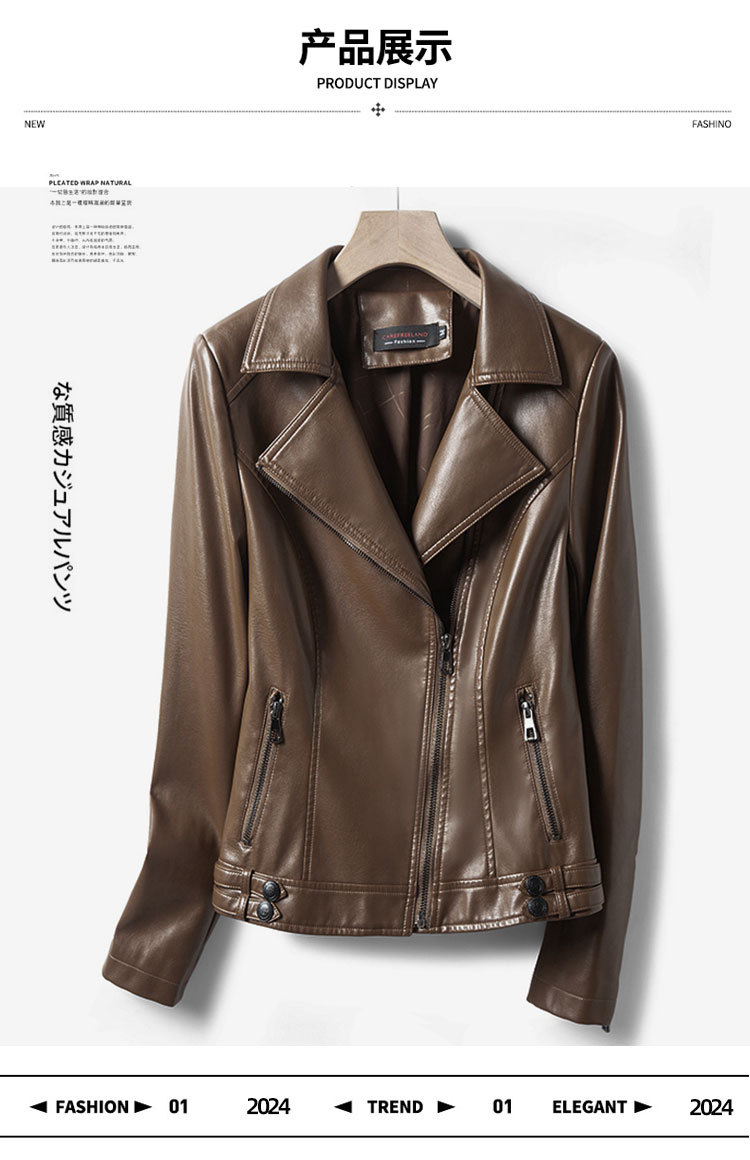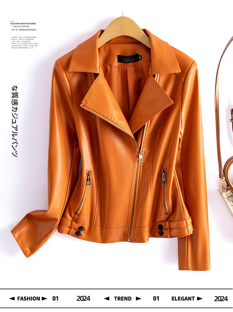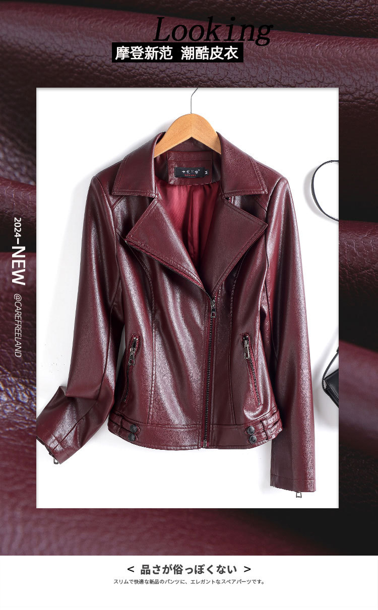 2024 새로운 가죽 여성용 옷깃 바이커 의류 안코라 레드 여성용 가죽 코트 슬림 핏 슬리밍 가죽 자켓스토어 가기