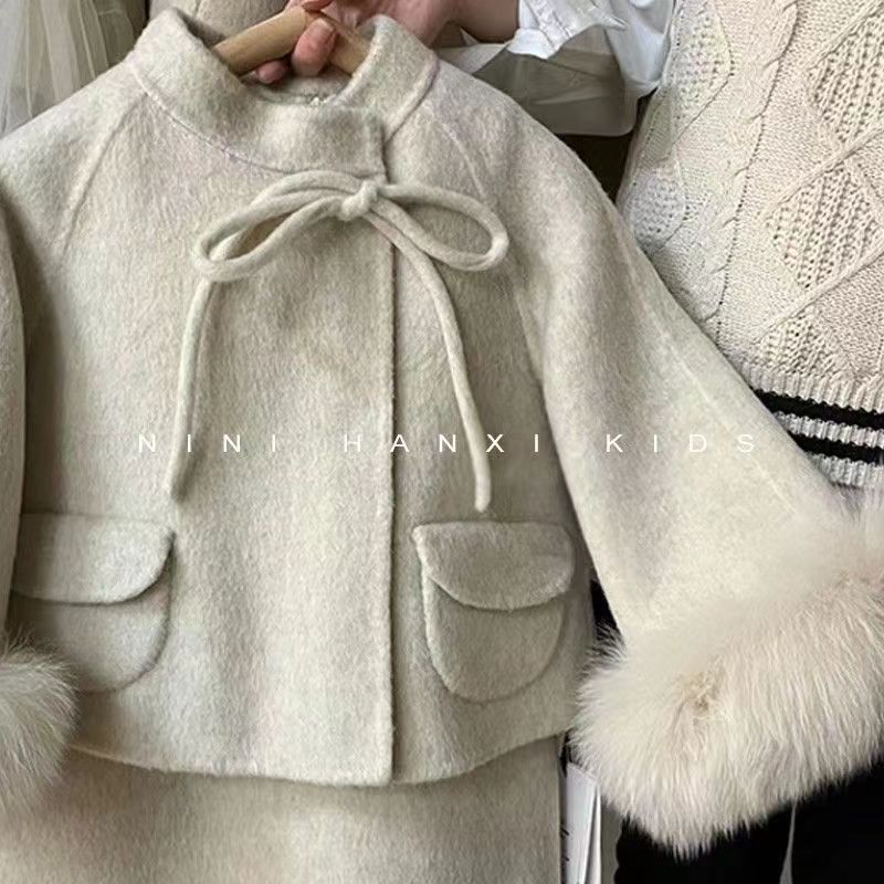 한국 24 가을 겨울 소녀의 서양식 아동복 소녀 모직 코트 우아한 조끼 스커트 모직 코트스토어 가기