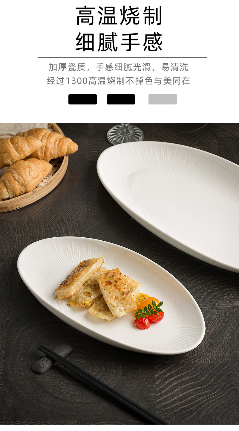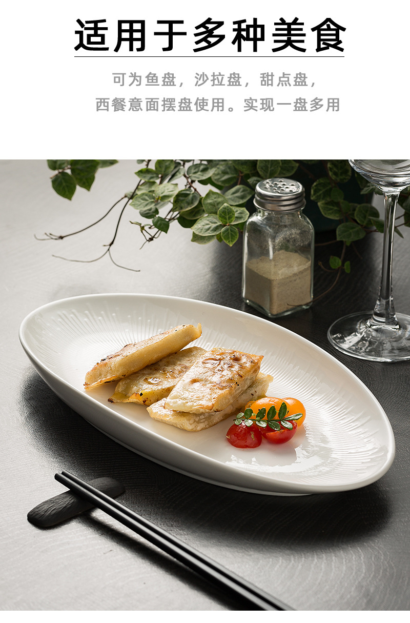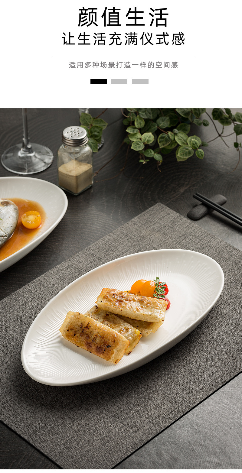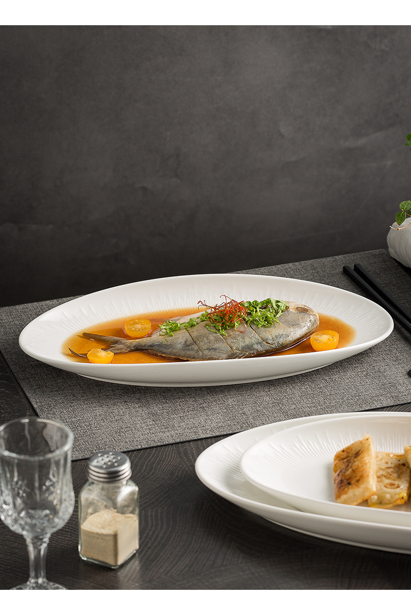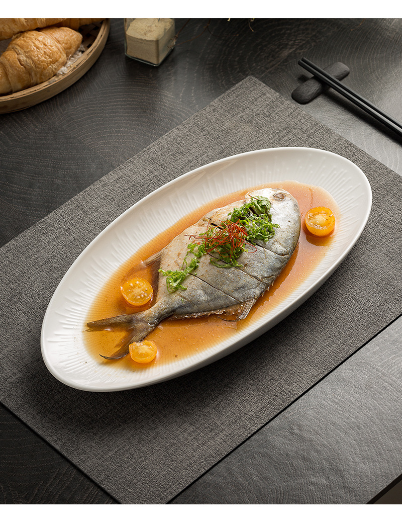 화이트 도자기 고급 센스 어판 레스토랑 콜드 요리 플레이트 데니어 모양 스윙 플레이트 호텔 해산물 플레이트 가정용 고온 방지 찐 생선 플레이트스토어 가기
