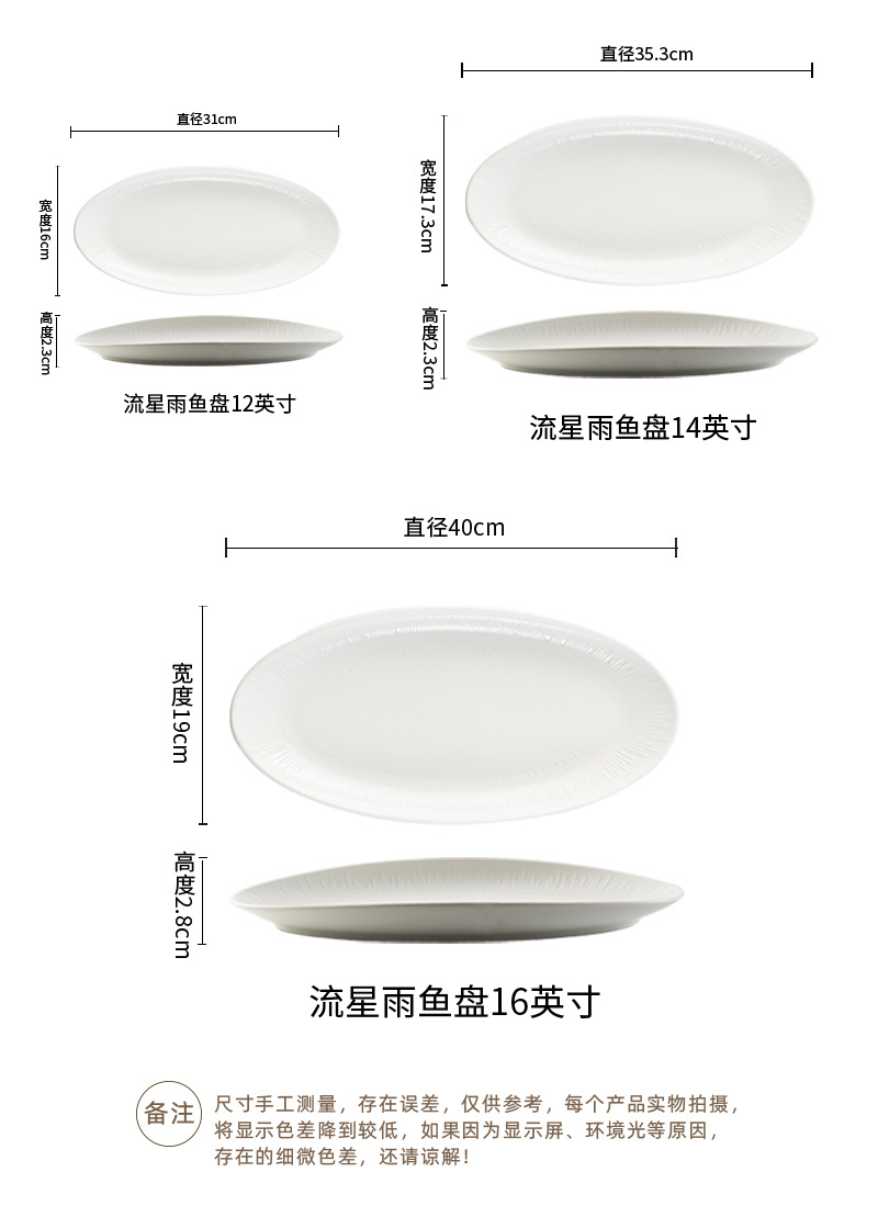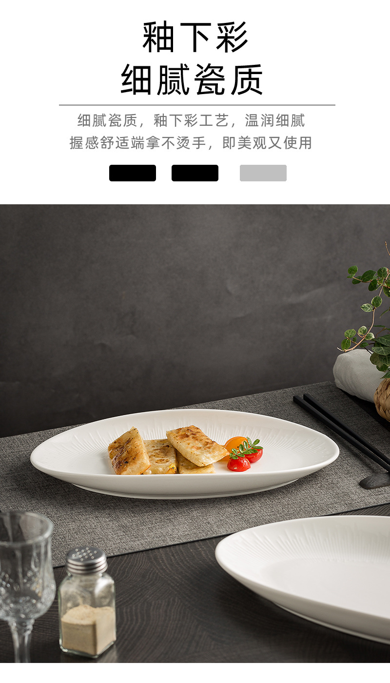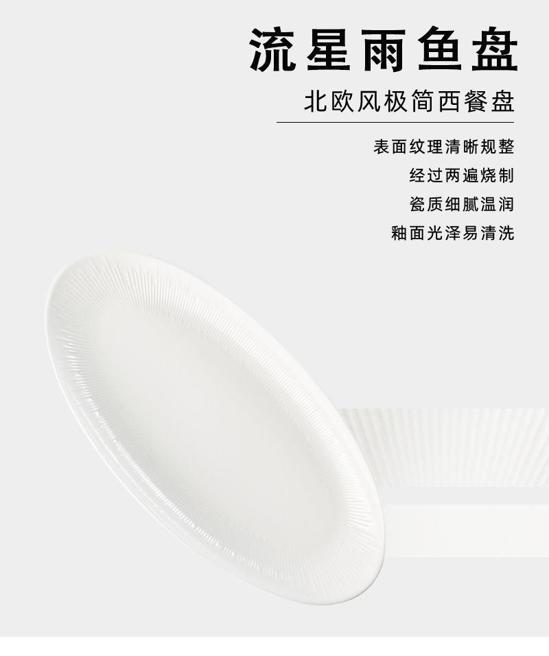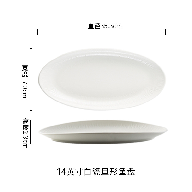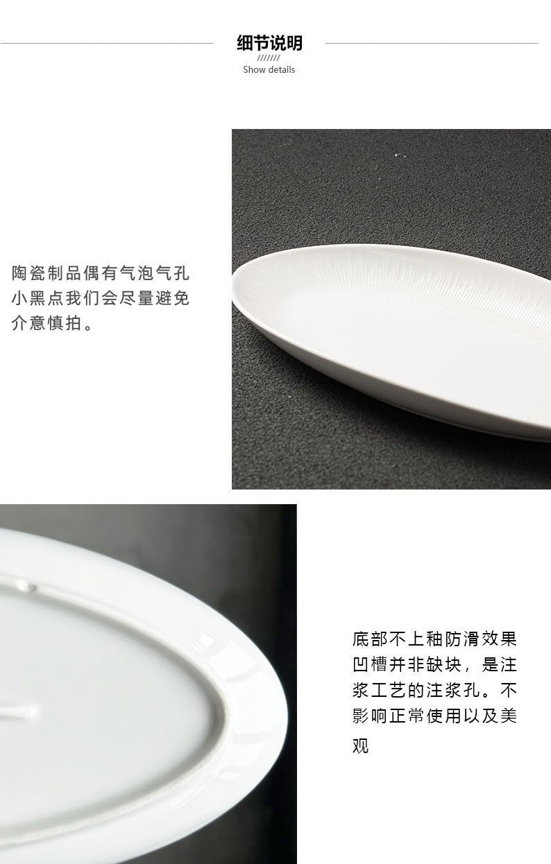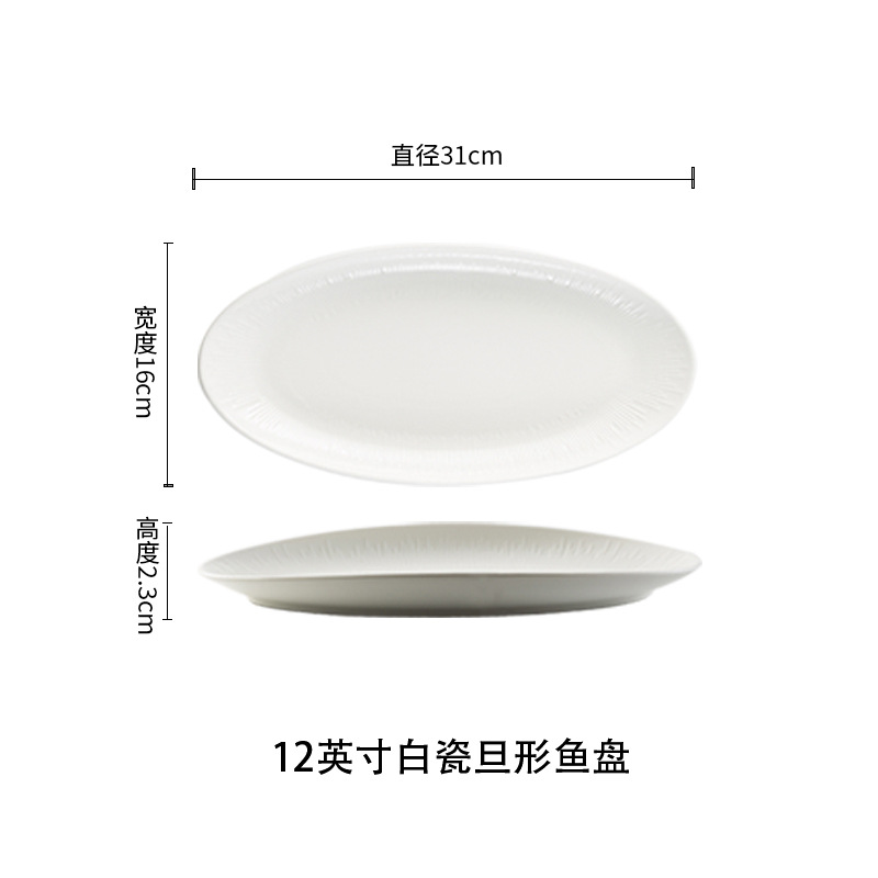 화이트 도자기 고급 센스 어판 레스토랑 콜드 요리 플레이트 데니어 모양 스윙 플레이트 호텔 해산물 플레이트 가정용 고온 방지 찐 생선 플레이트스토어 가기