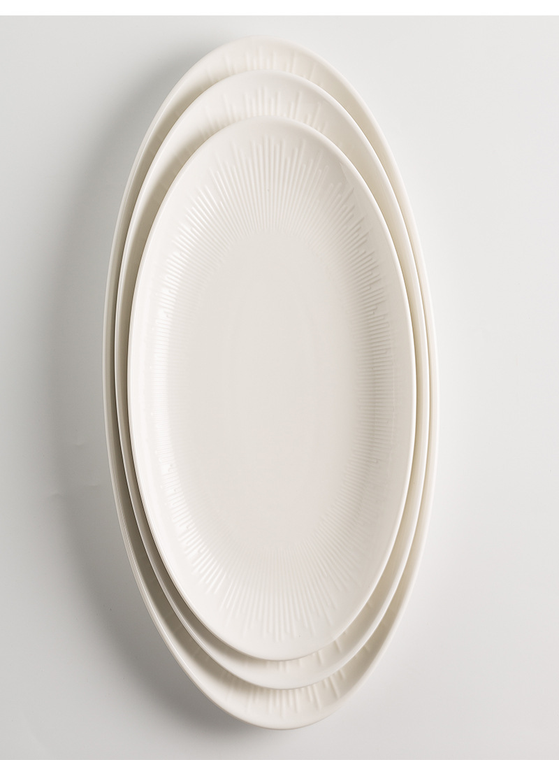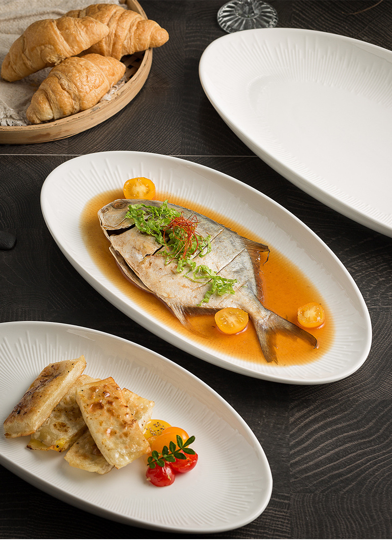 화이트 도자기 고급 센스 어판 레스토랑 콜드 요리 플레이트 데니어 모양 스윙 플레이트 호텔 해산물 플레이트 가정용 고온 방지 찐 생선 플레이트