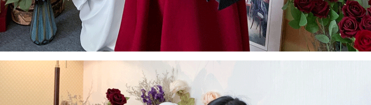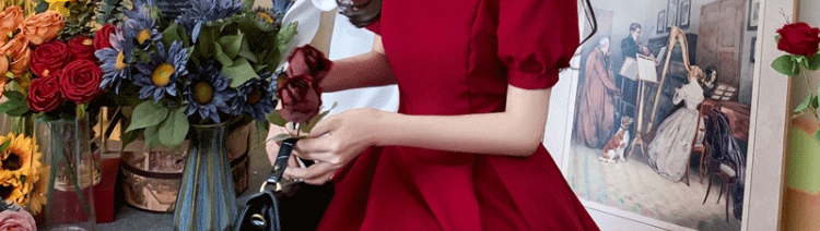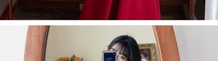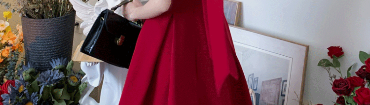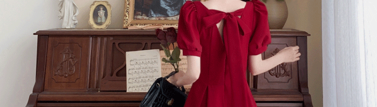 뚱뚱한 자매 빛 고급 부드러운 스타일 스퀘어 칼라 레드 원피스 여성의 여름 신부 뒷문 원피스 업 토스트 디 쑤언