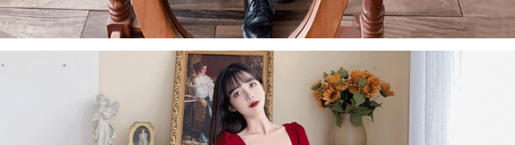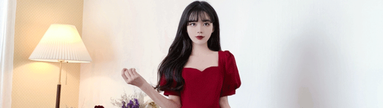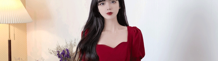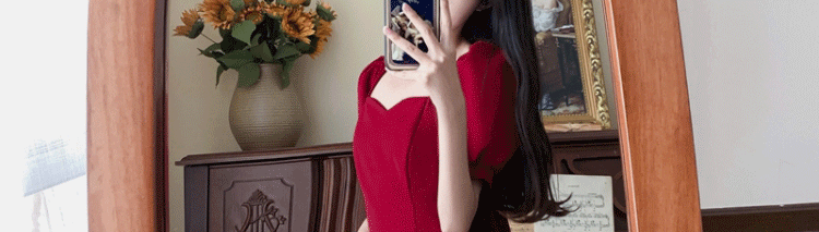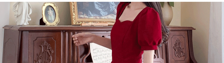 뚱뚱한 자매 빛 고급 부드러운 스타일 스퀘어 칼라 레드 원피스 여성의 여름 신부 뒷문 원피스 업 토스트 디 쑤언스토어 가기