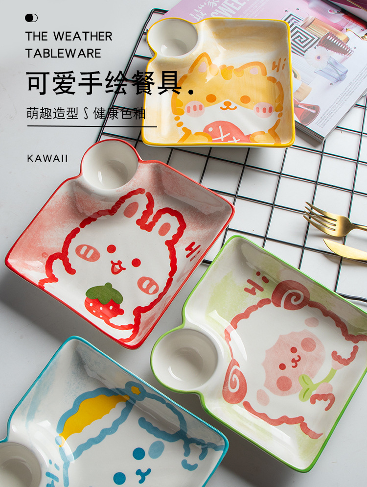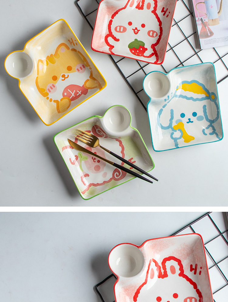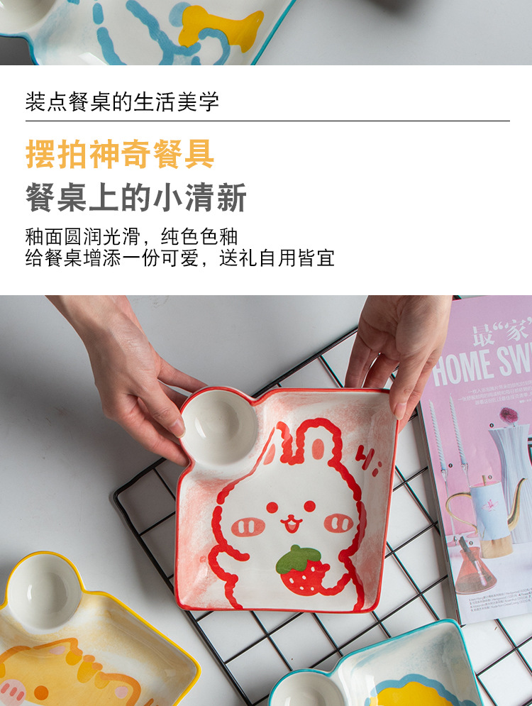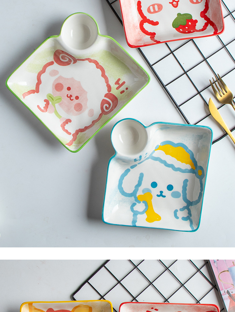 세라믹 만두 플레이트 식초 접시와 일본식 식품 플레이트 가정용 만화 아침 식사 접시 딥 접시 만두 접시