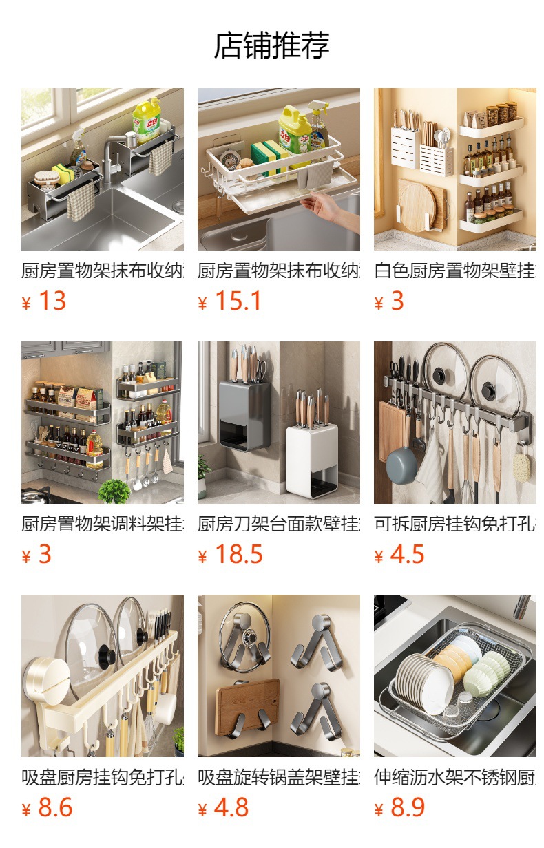 화이트 키친 스토리지 랙 펀치 프리 조미료 벽걸이 나이프 랙 가정용 용품 Daquan 다기능 스토리지 랙스토어 가기