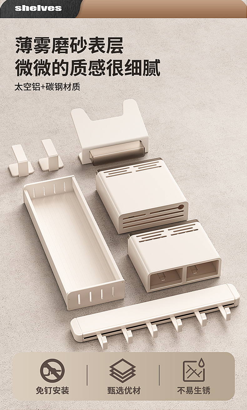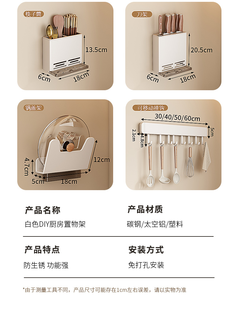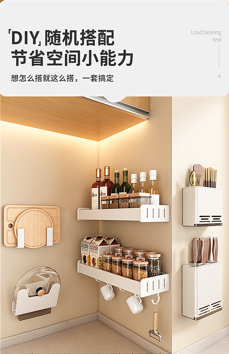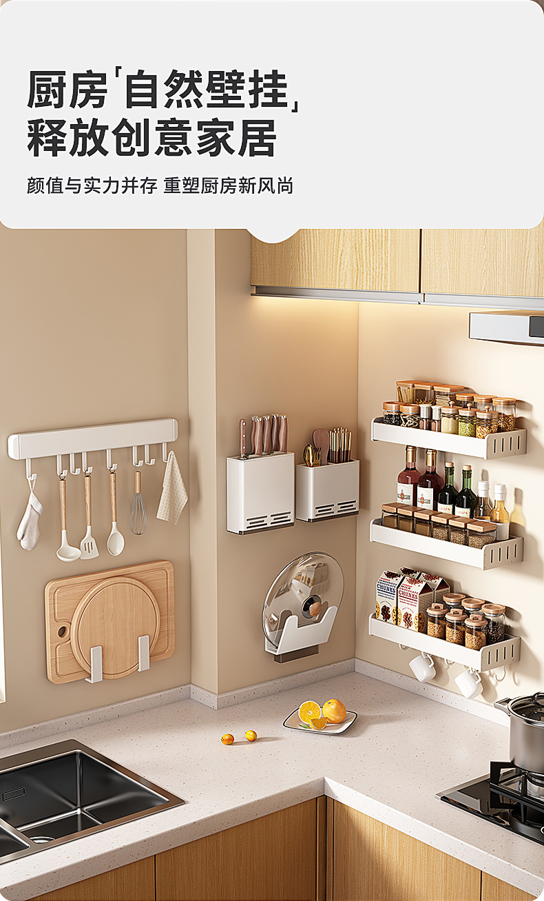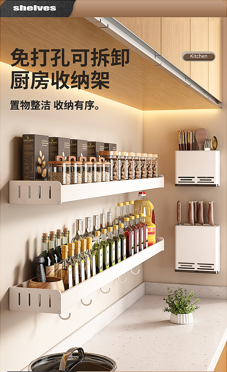 화이트 키친 스토리지 랙 펀치 프리 조미료 벽걸이 나이프 랙 가정용 용품 Daquan 다기능 스토리지 랙