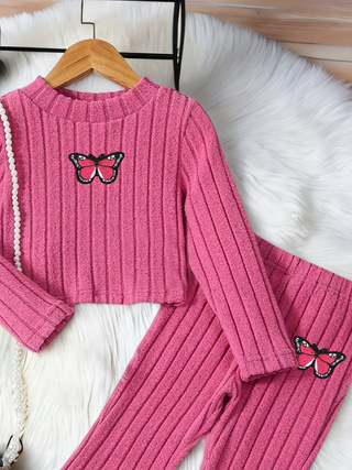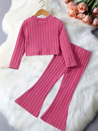국경 간 대외 무역 INS 여자 가을 긴 소매 티셔츠 세트 스크래치 울 따뜻한 종 바지 봄과 가을, 1-8 세에 적합