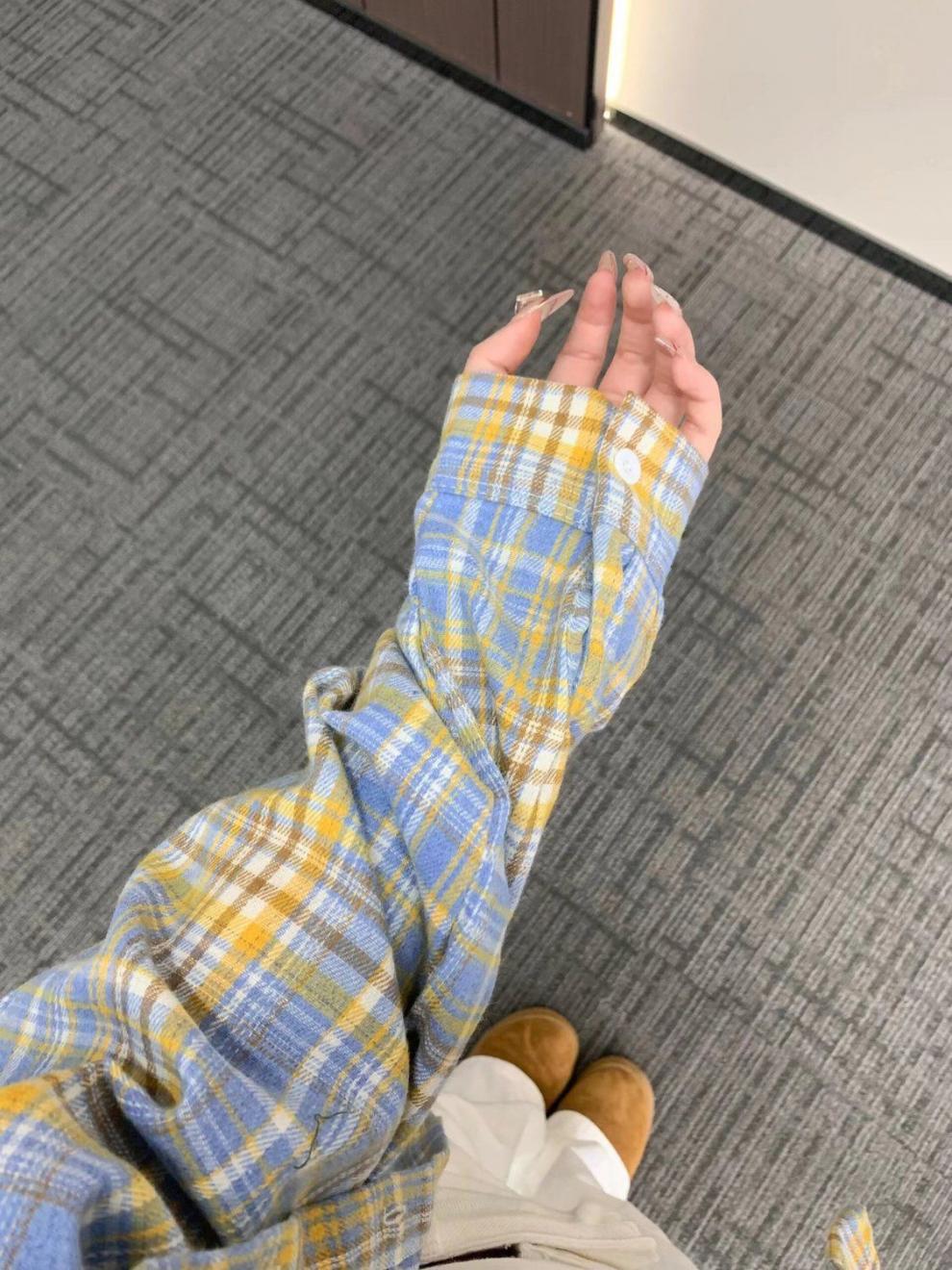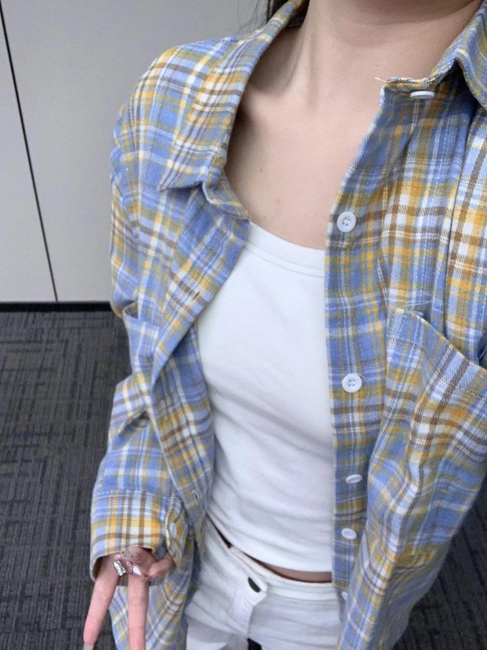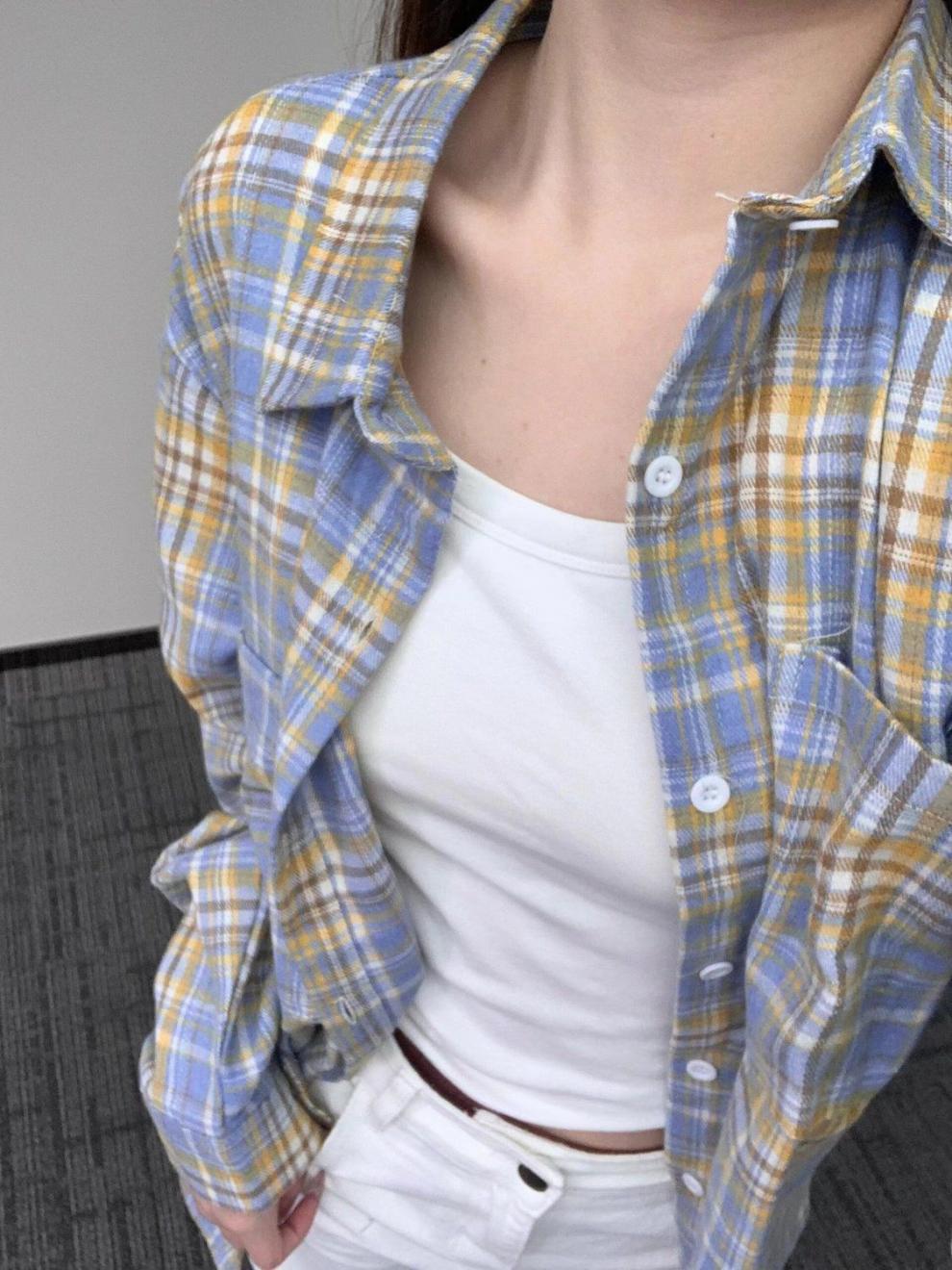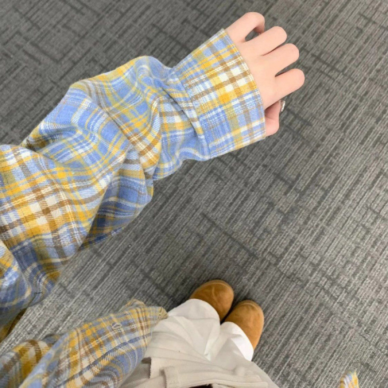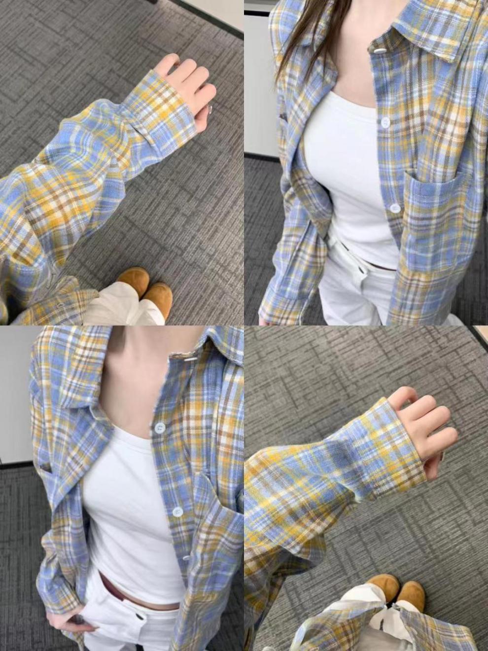 콘트라스트 컬러 레트로 플레이드 재킷 셔츠 긴 소매 셔츠 여성의 새로운 패션 의상 서양 스타일 폭발 선스크린 셔츠 얇은스토어 가기