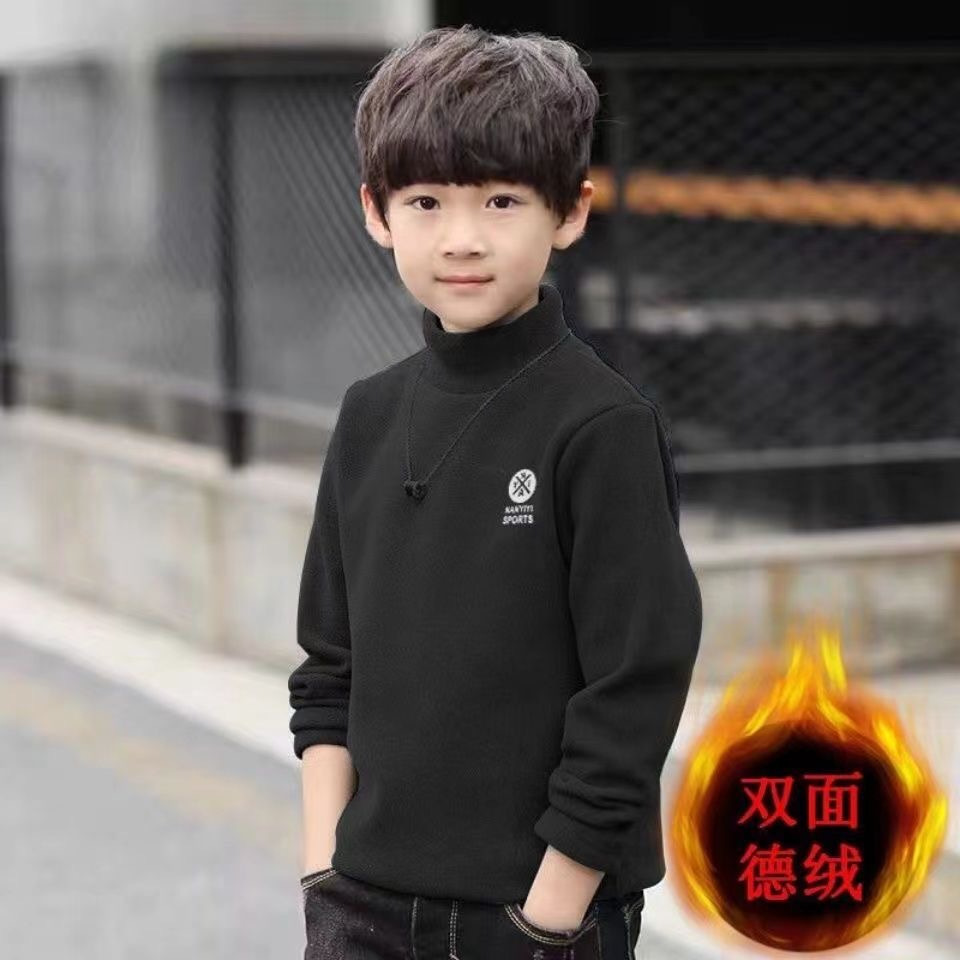 남학생 '반높이 칼라 기모 거점 셔츠 가을 · 겨울 어린이 긴팔 티셔츠 대형 어린이 양면 벨벳 웜탑