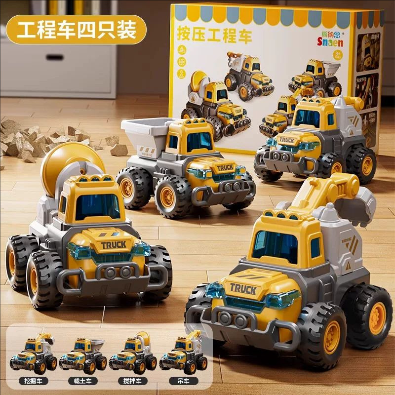 어린이용 프레스카, 굴착기, 공사차량 세트, 관성 후진차, 불도저, 남아용 3-6세 장난감 5스토어 가기