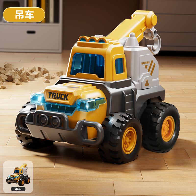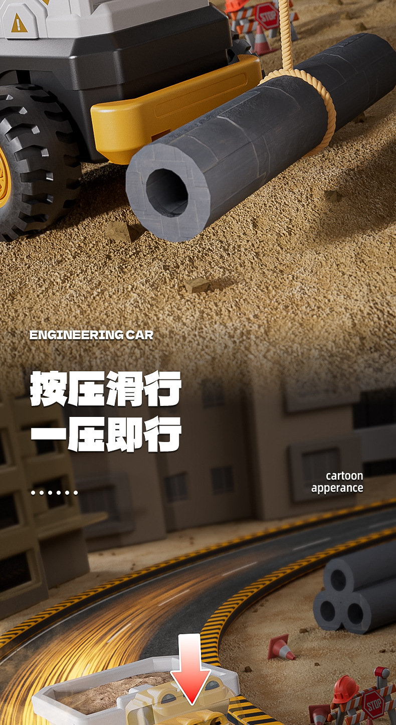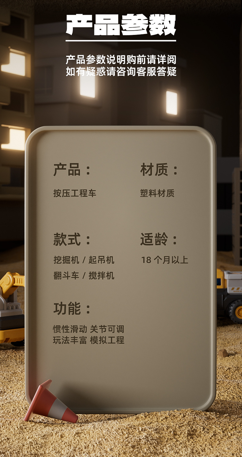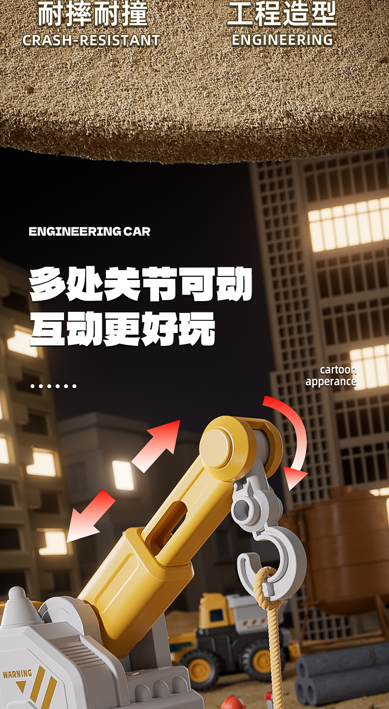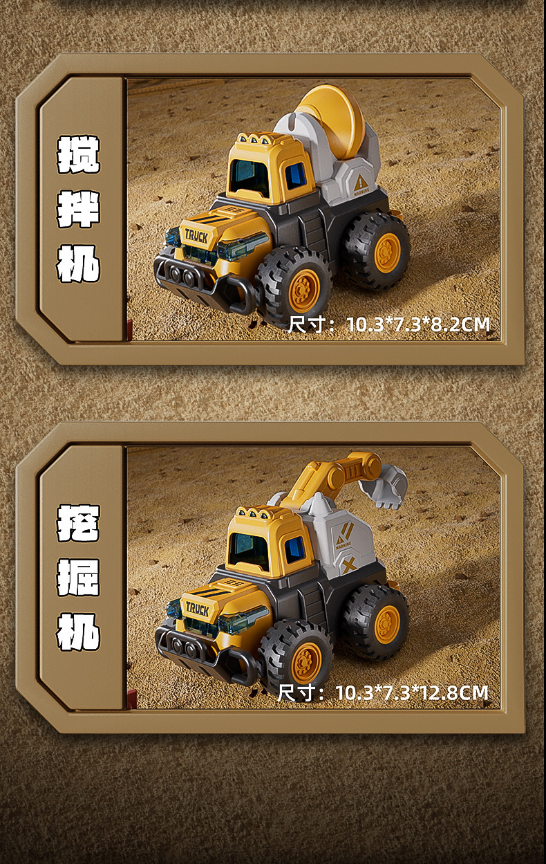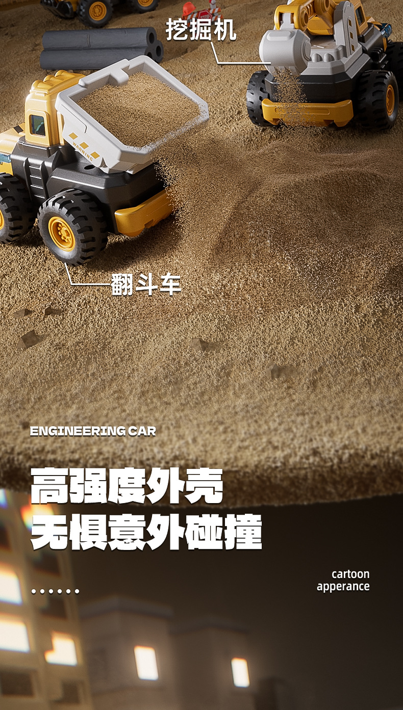 어린이용 프레스카, 굴착기, 공사차량 세트, 관성 후진차, 불도저, 남아용 3-6세 장난감 5