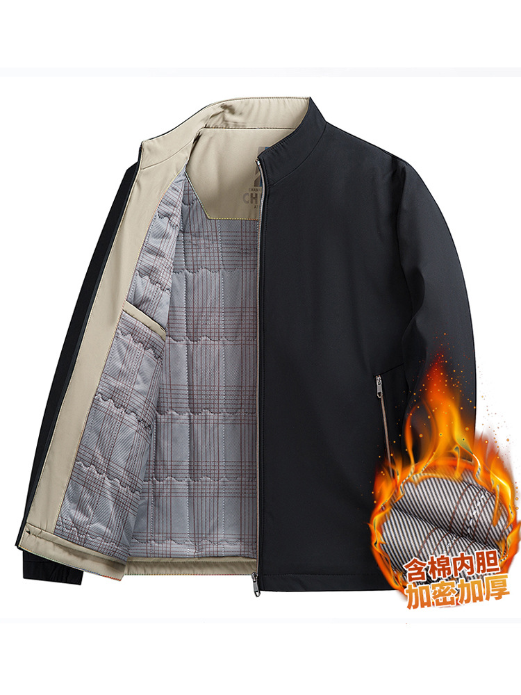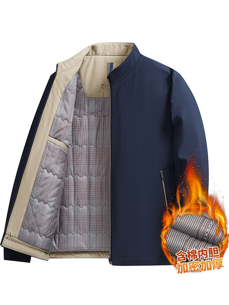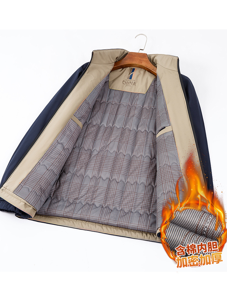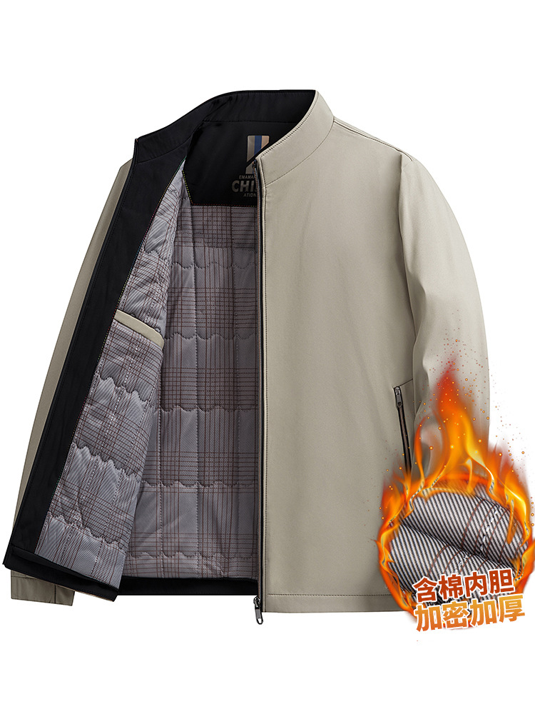 2025 겨울 비즈니스 캐주얼 중년 남성 아버지용 재킷 스탠드 칼라 플리스 안감 두꺼운 보온 면 재킷 남성용