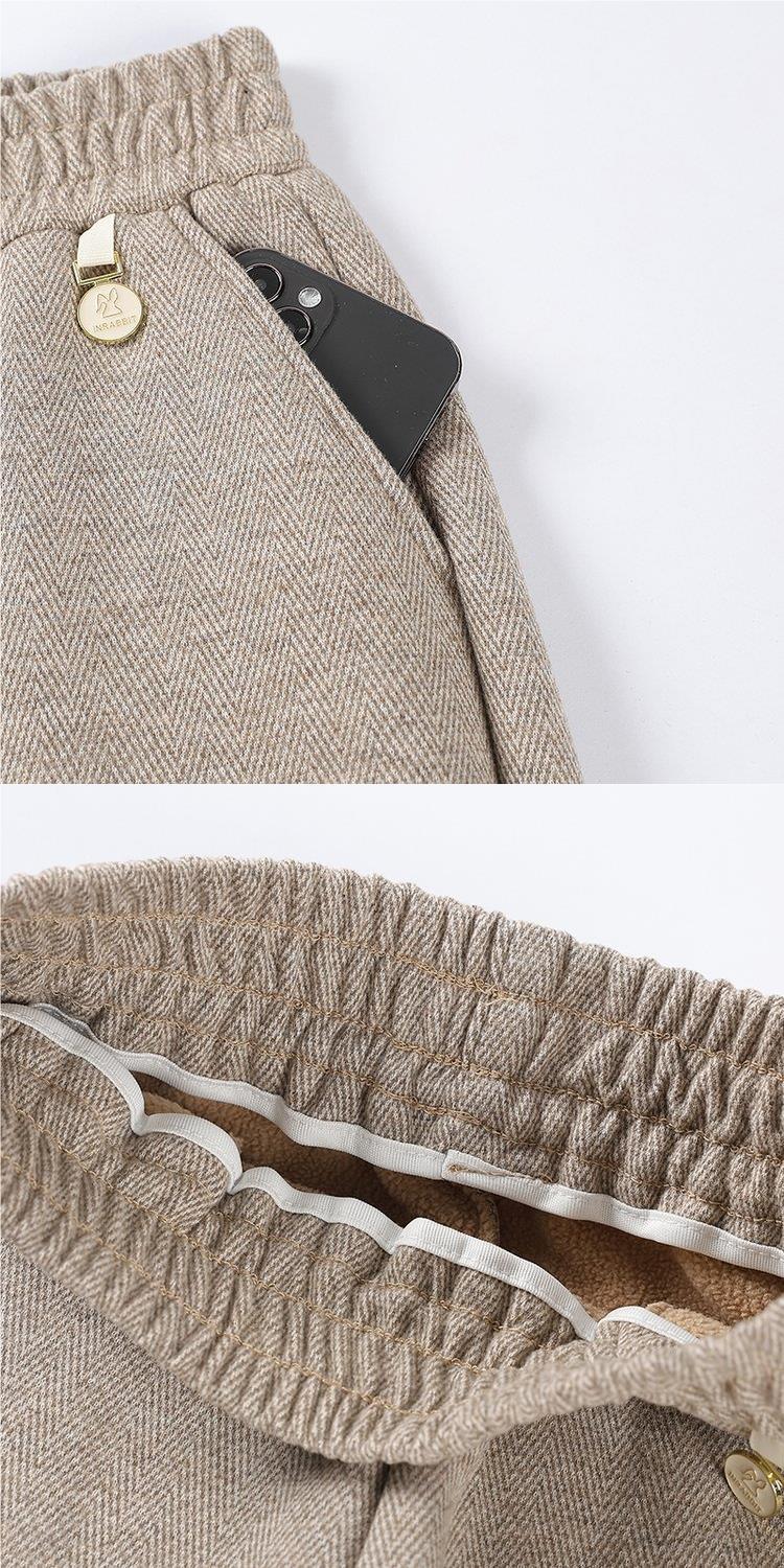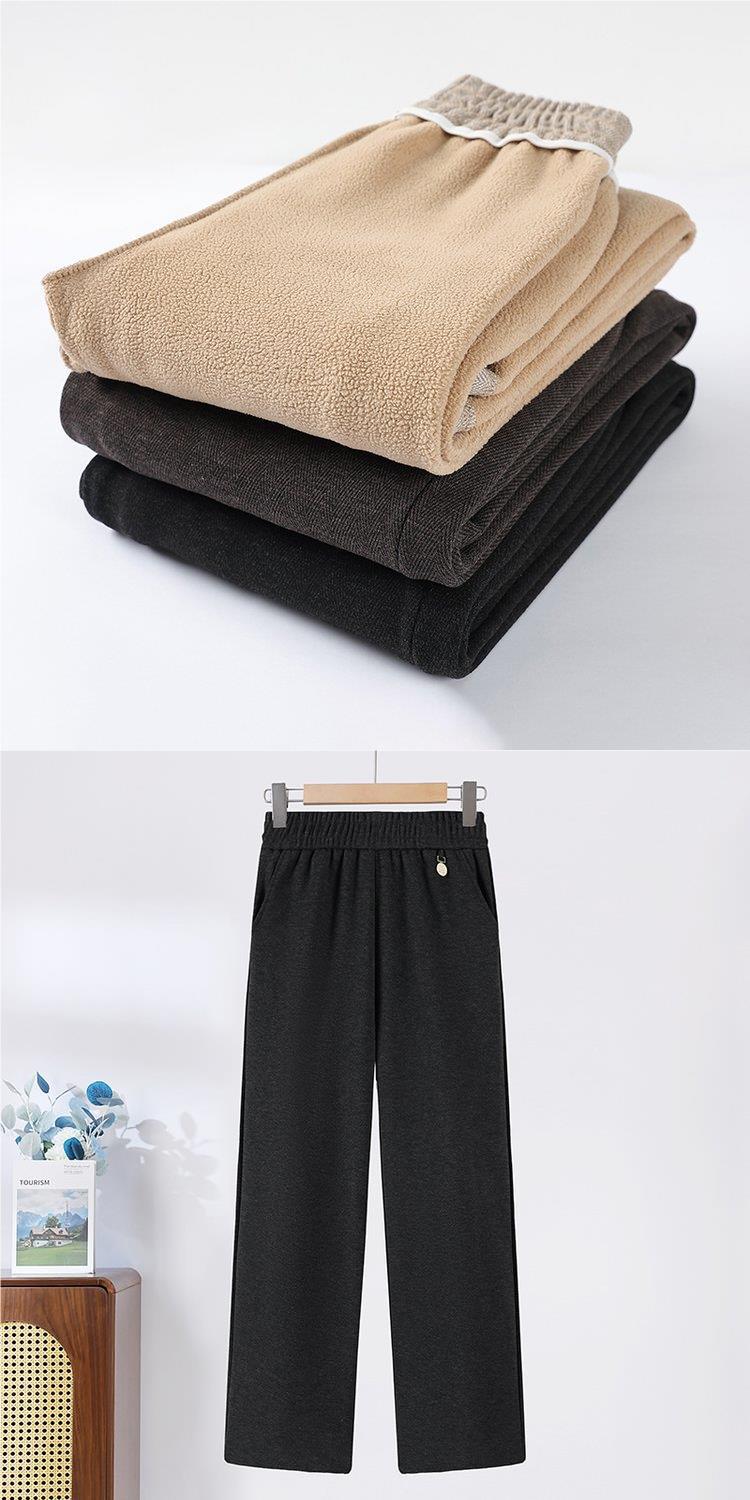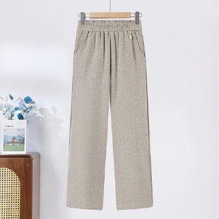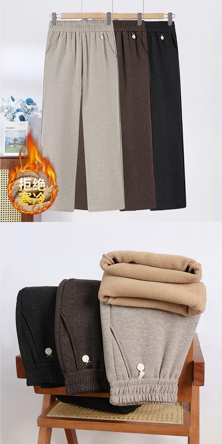 2024 새로운 스타일 여성복 중년 및 노인 여성을위한 느슨한 허리가있는 가을 및 겨울 긴 바지 원피스 캐시미어 두꺼운 와이드 레그 스트레이트 팬츠스토어 가기
