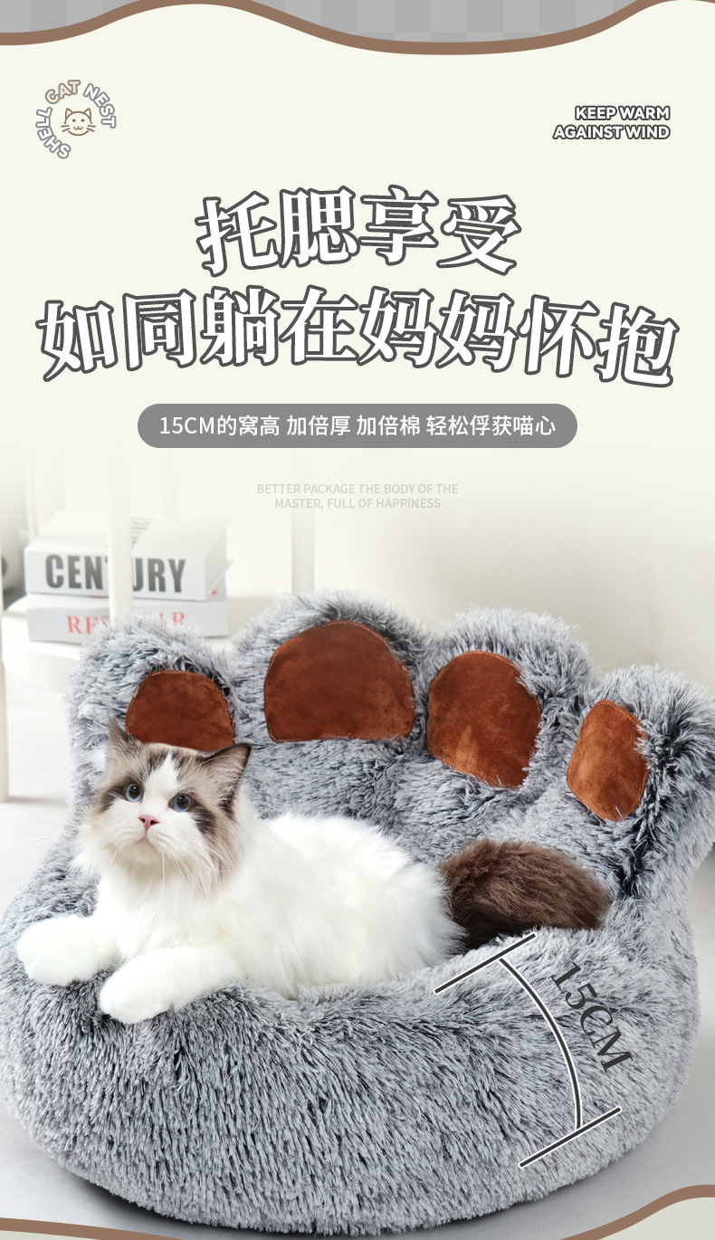 대형 귀여운 곰발바닥 고양이/강아지 침대 사계절용 따뜻한 애완동물 소파 쿠션 대형 애완동물 침대 공장 직판스토어 가기