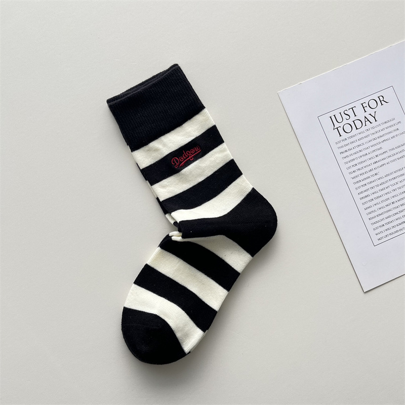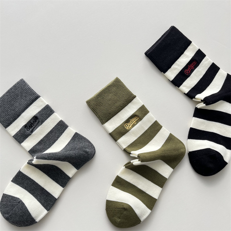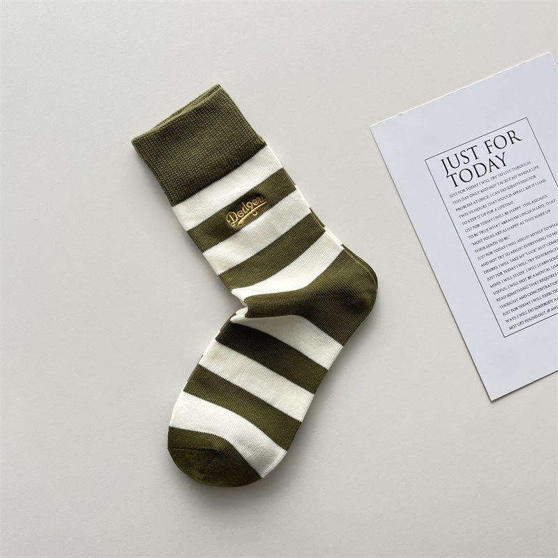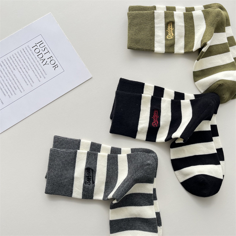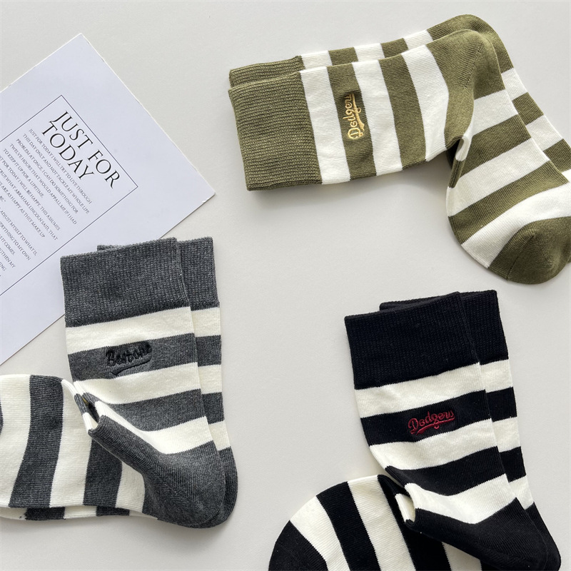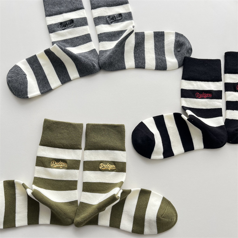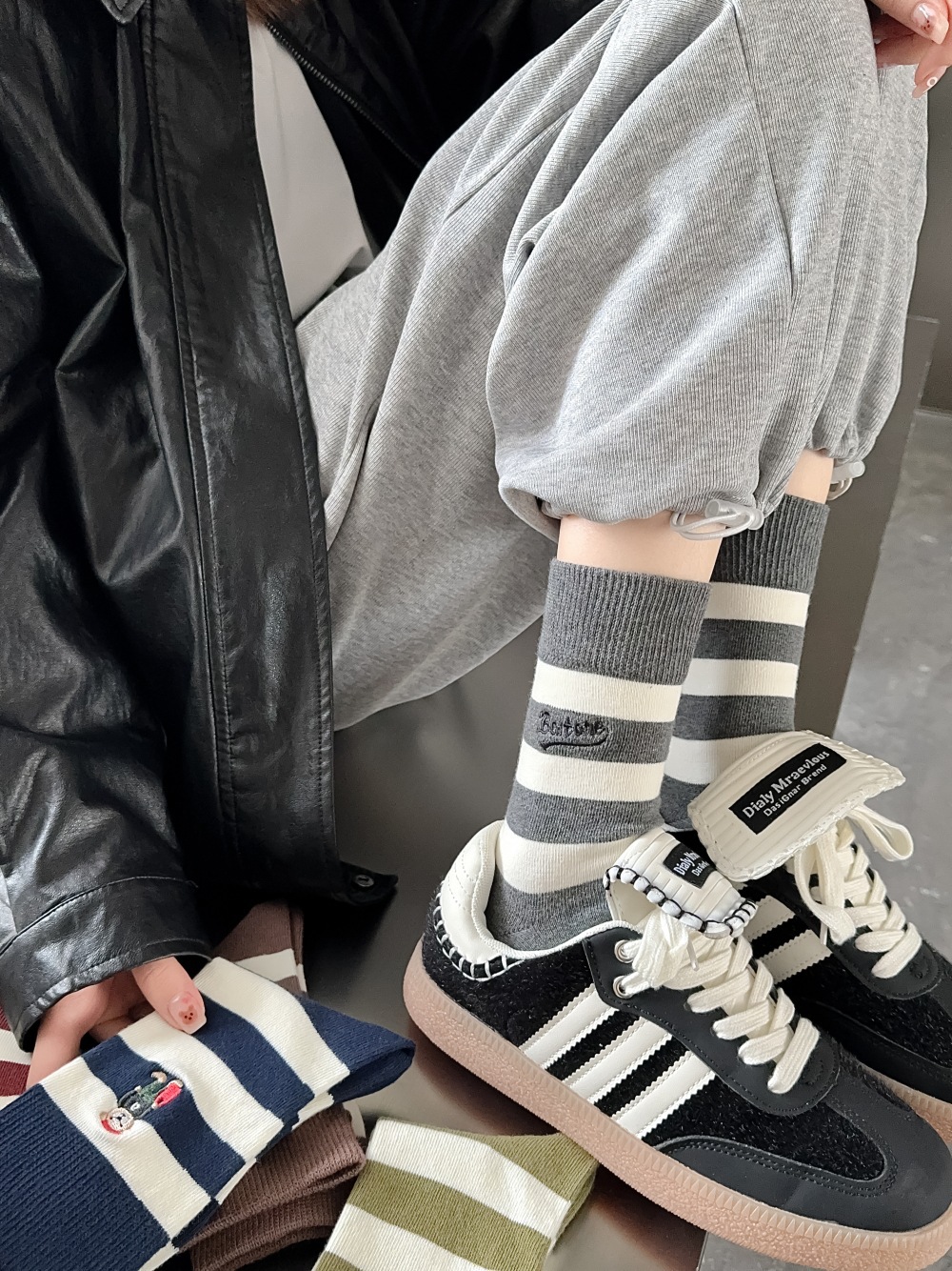 가을과 겨울 빈티지 영국 스타일 편지 자수 중간 크기 양말 한국 스타일 패션 줄무늬 더미 양말 간단한 올매치 여성면 양말