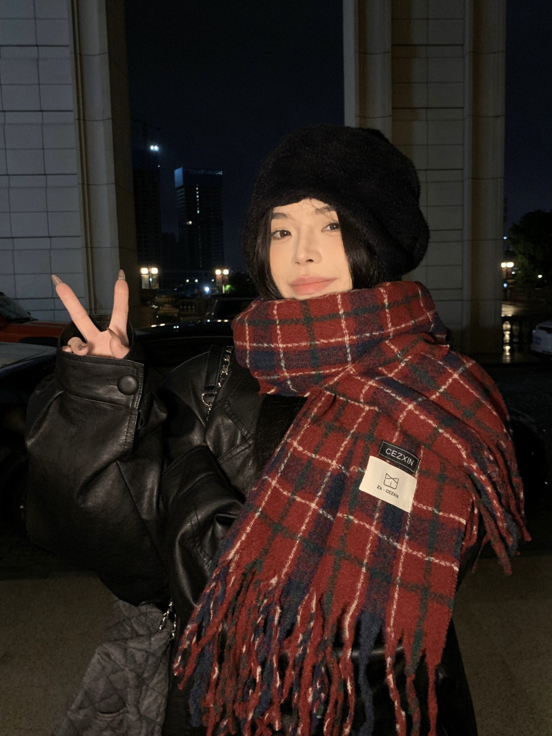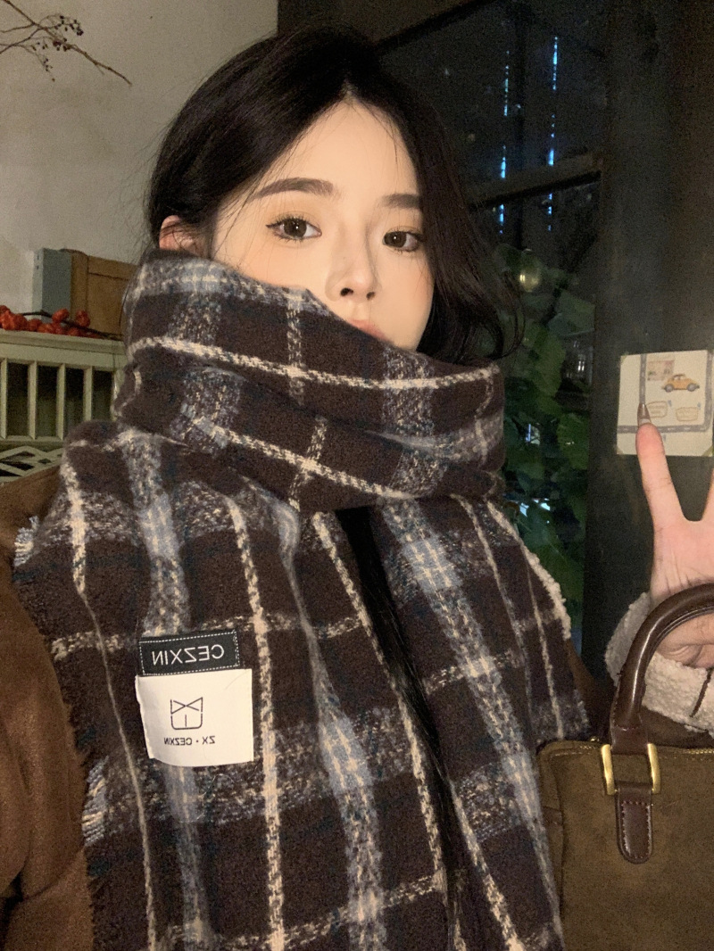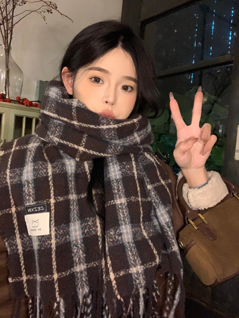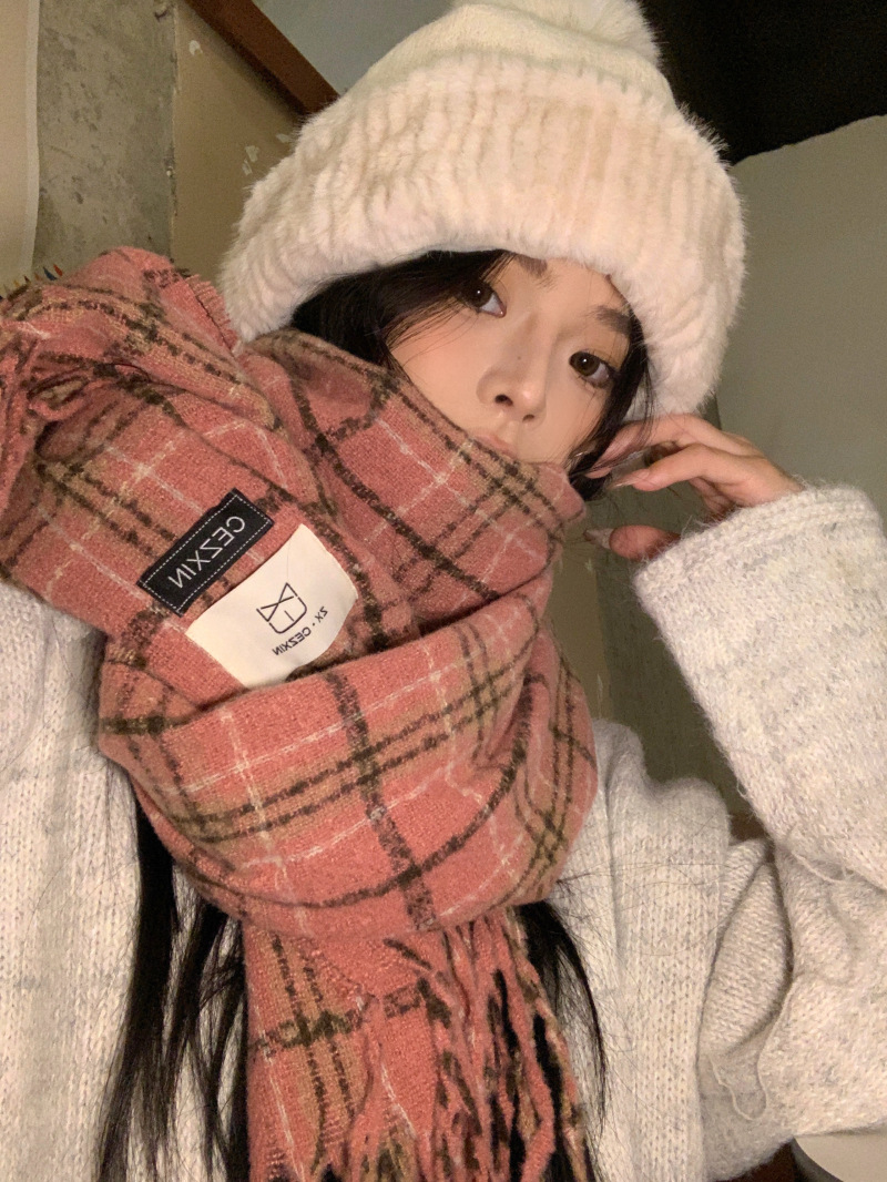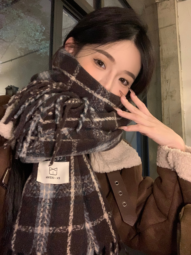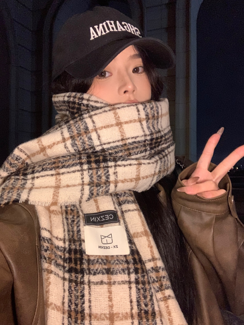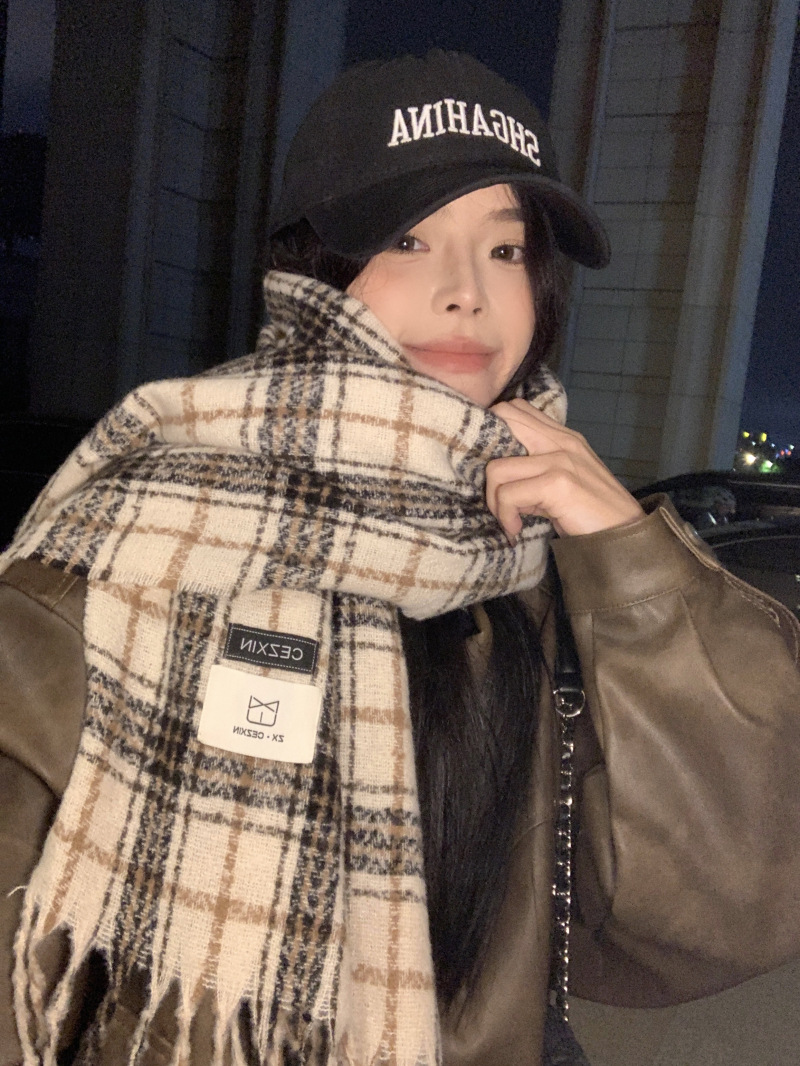 모헤어 스카프 여성의 겨울 2024 새로운 스타일 목도리 스카프 커플의 격자 무늬 올 매치 여행 따뜻한 생일 선물스토어 가기