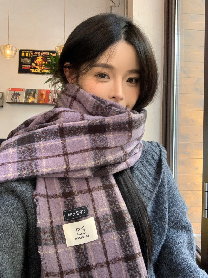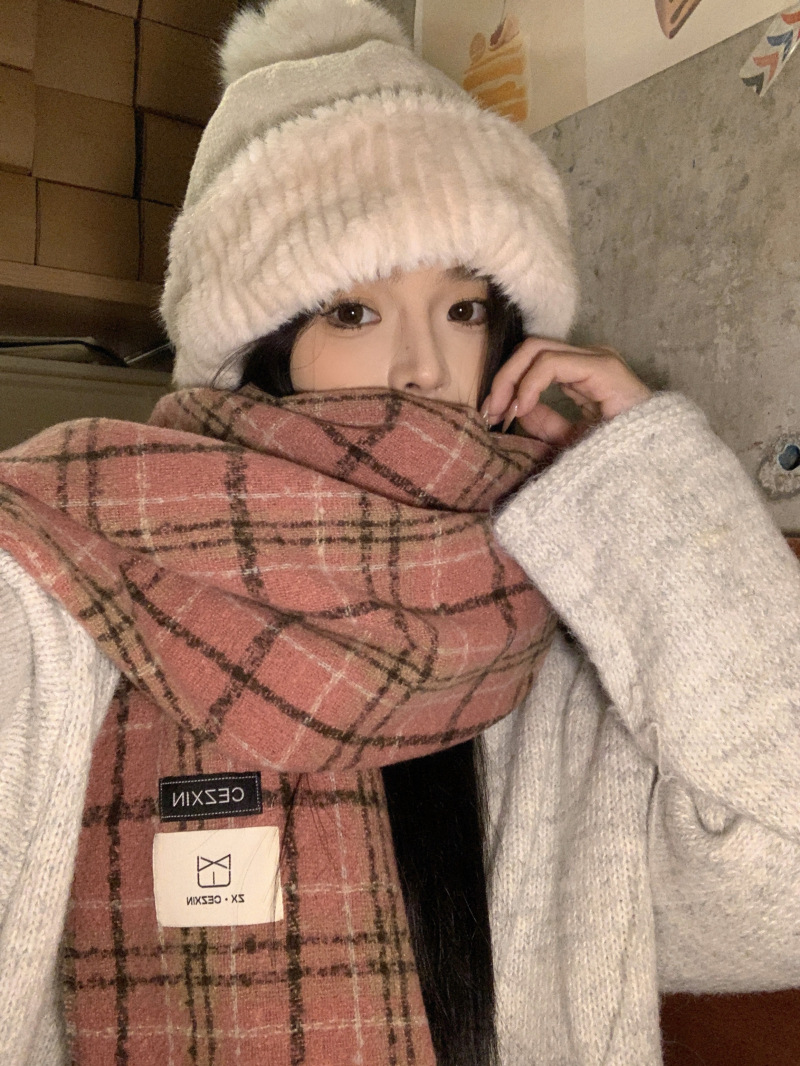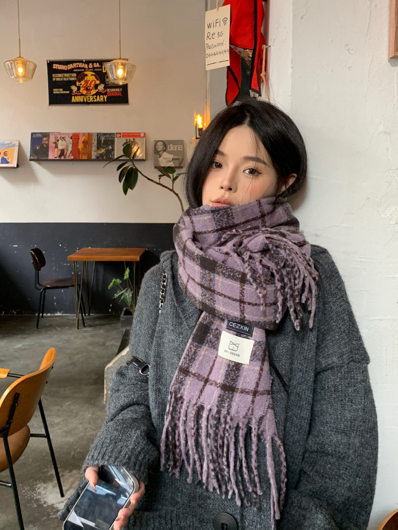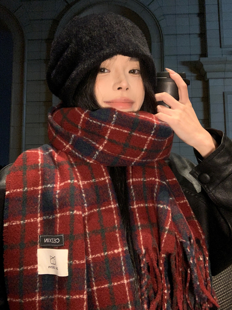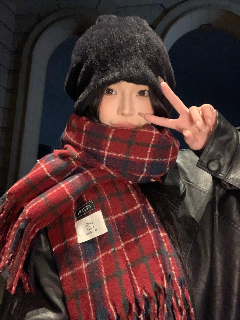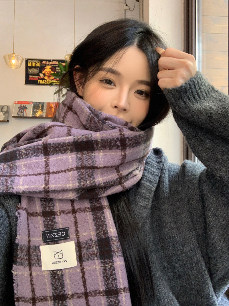 모헤어 스카프 여성의 겨울 2024 새로운 스타일 목도리 스카프 커플의 격자 무늬 올 매치 여행 따뜻한 생일 선물스토어 가기
