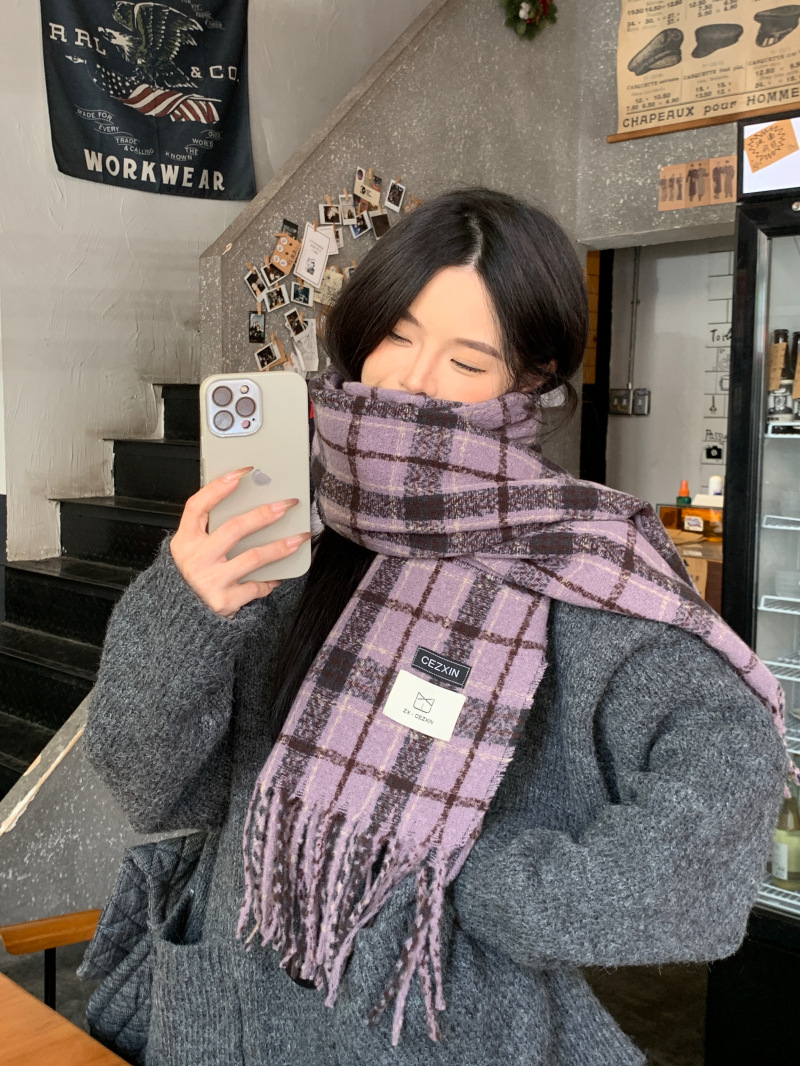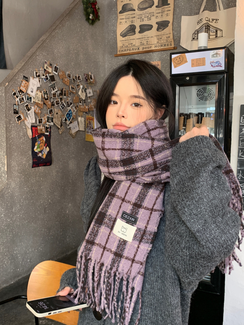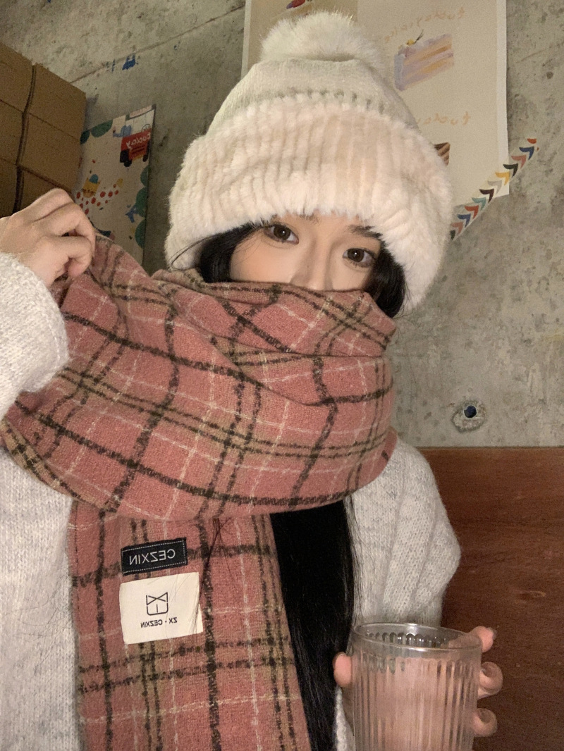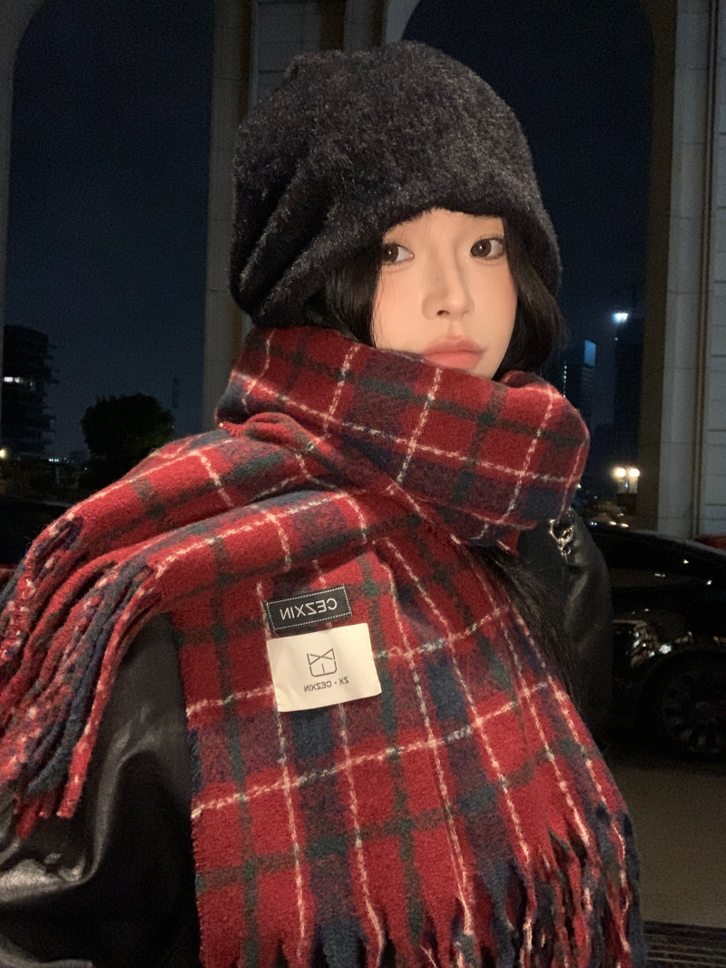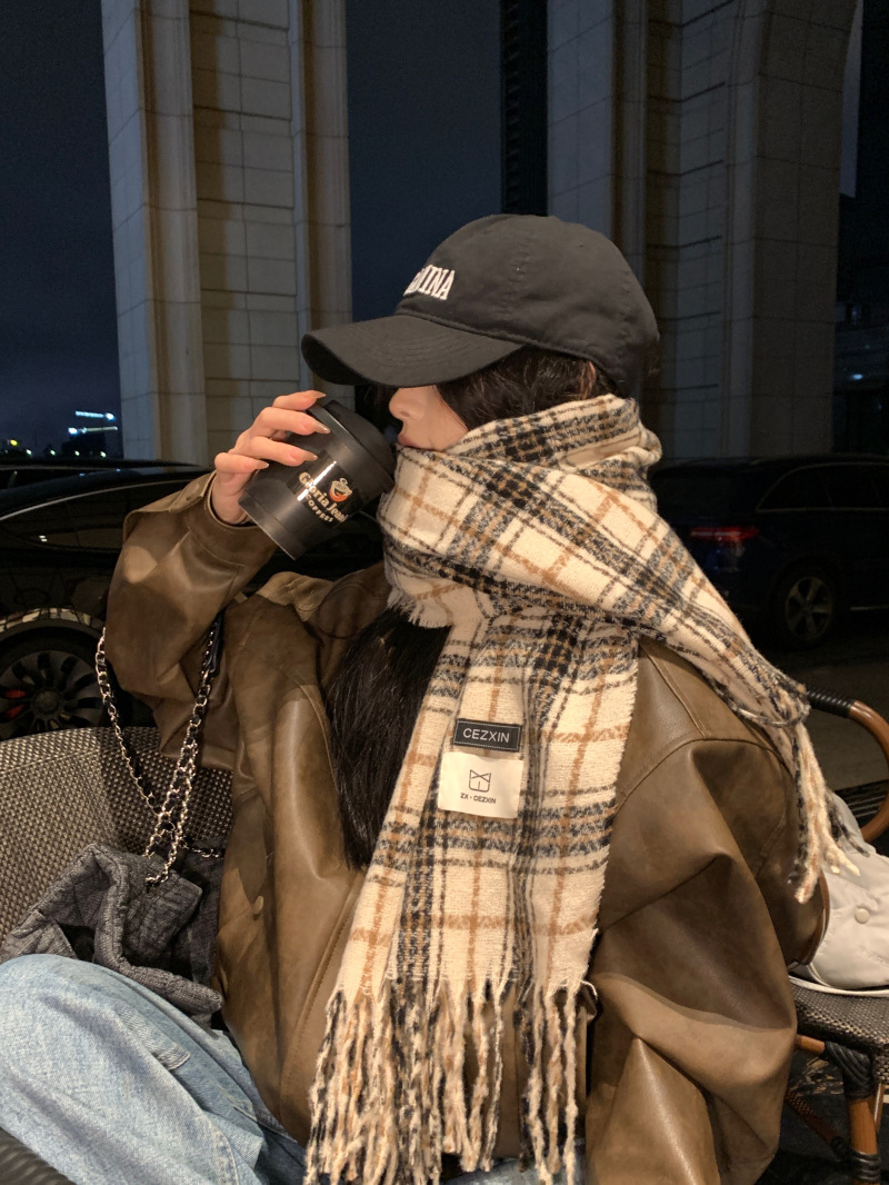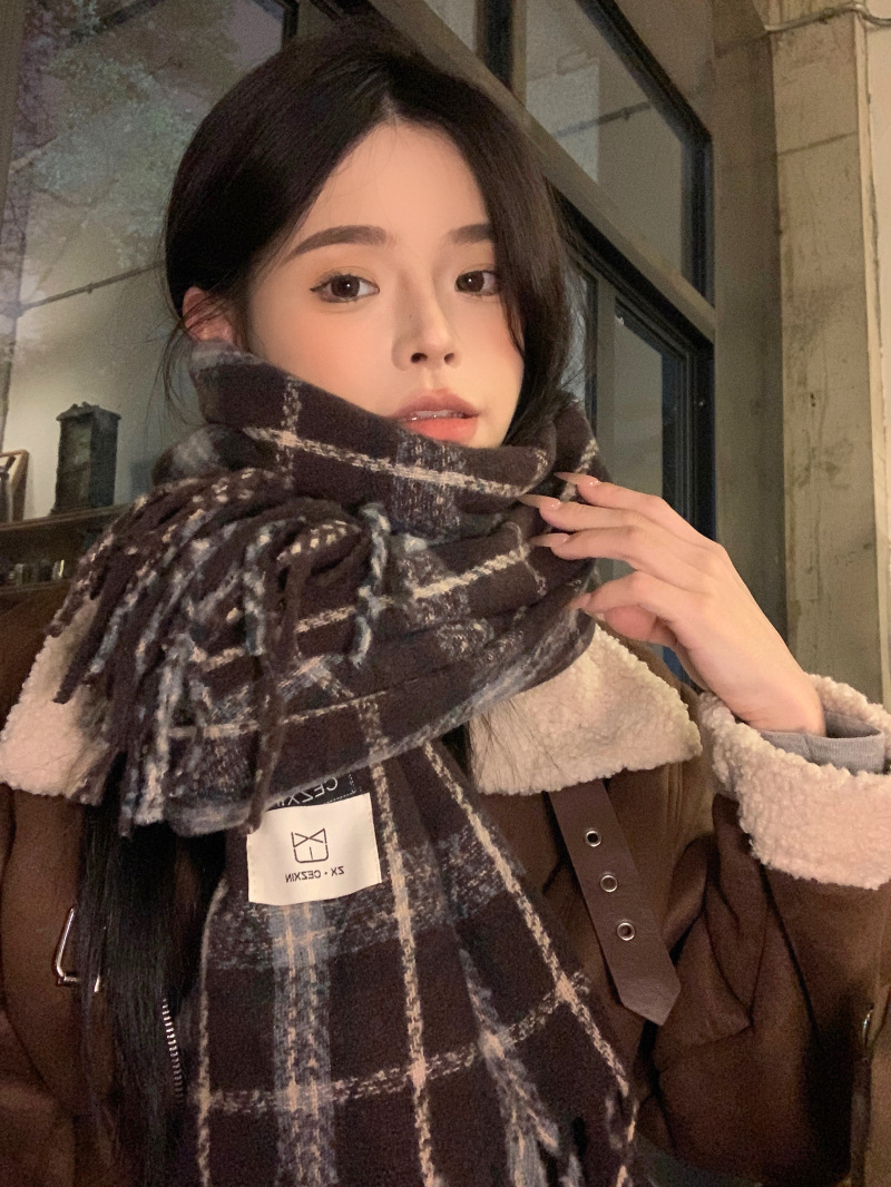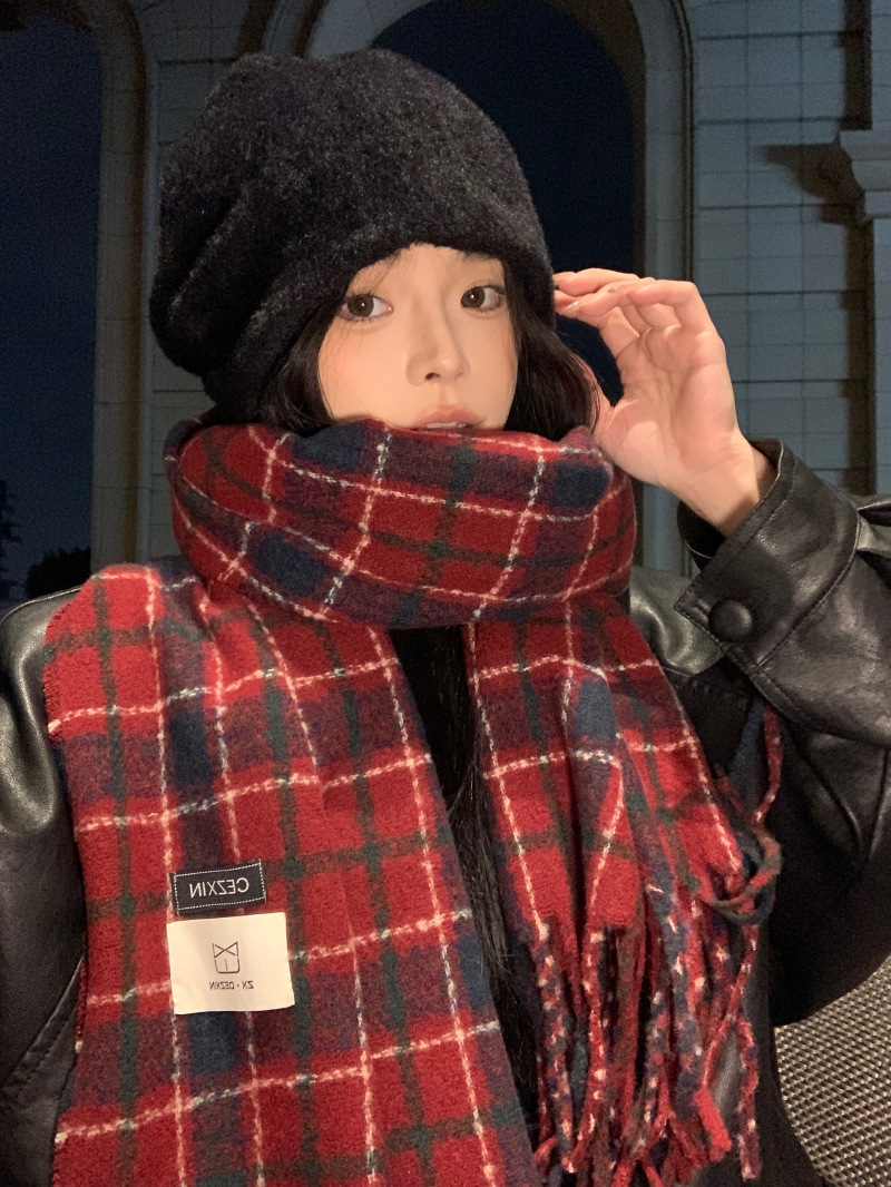 모헤어 스카프 여성의 겨울 2024 새로운 스타일 목도리 스카프 커플의 격자 무늬 올 매치 여행 따뜻한 생일 선물스토어 가기