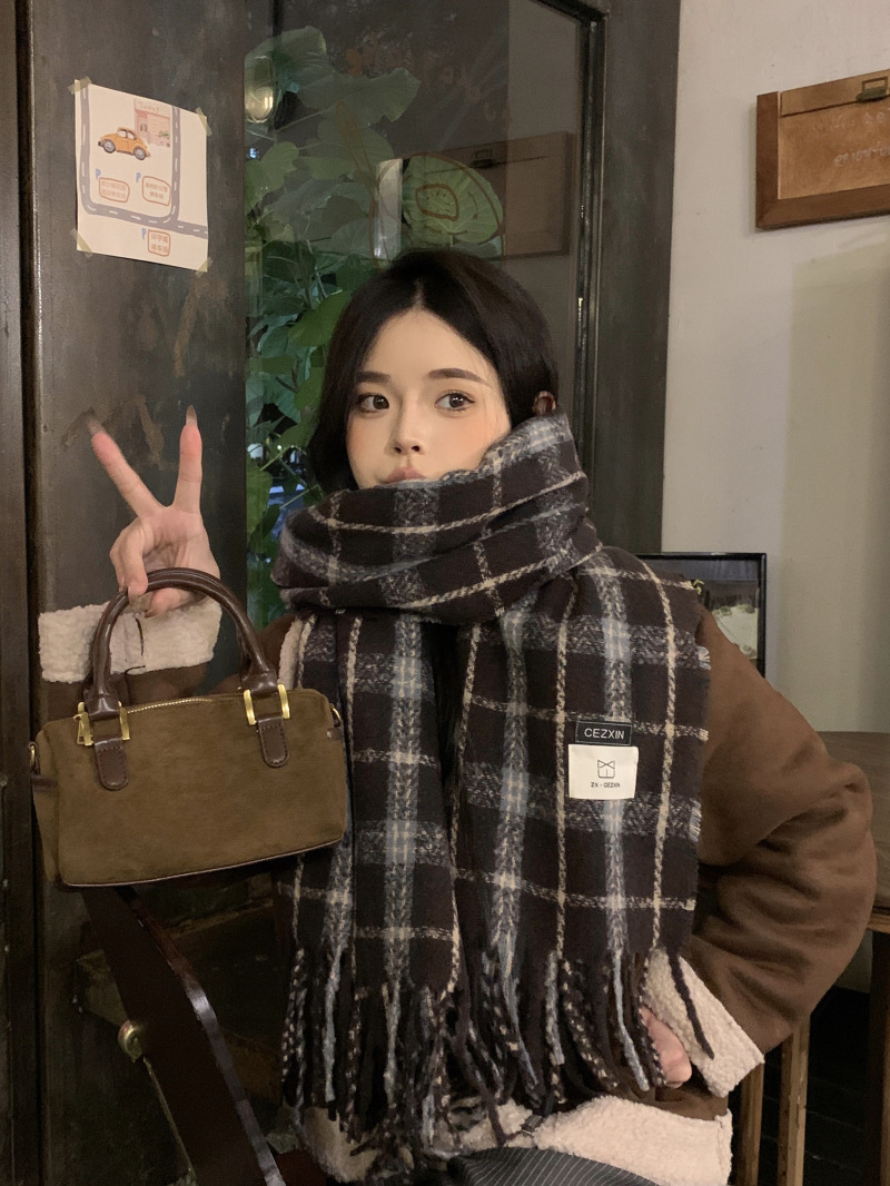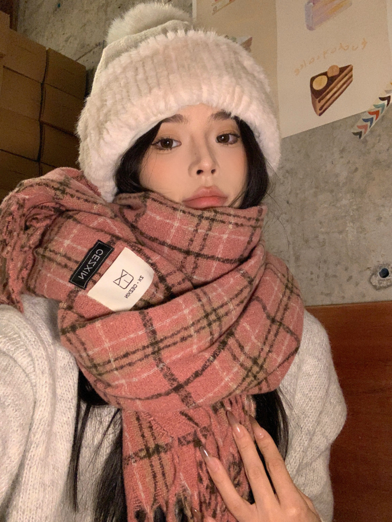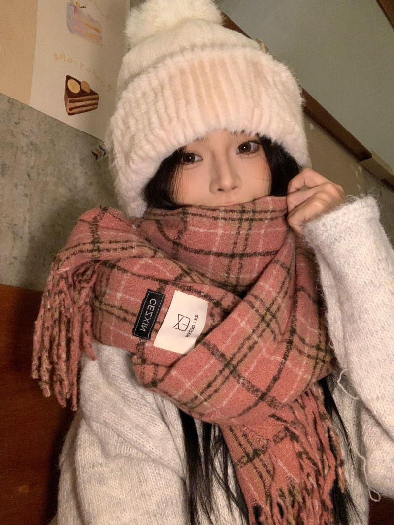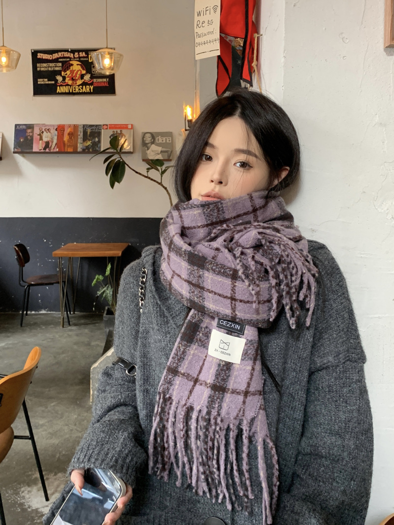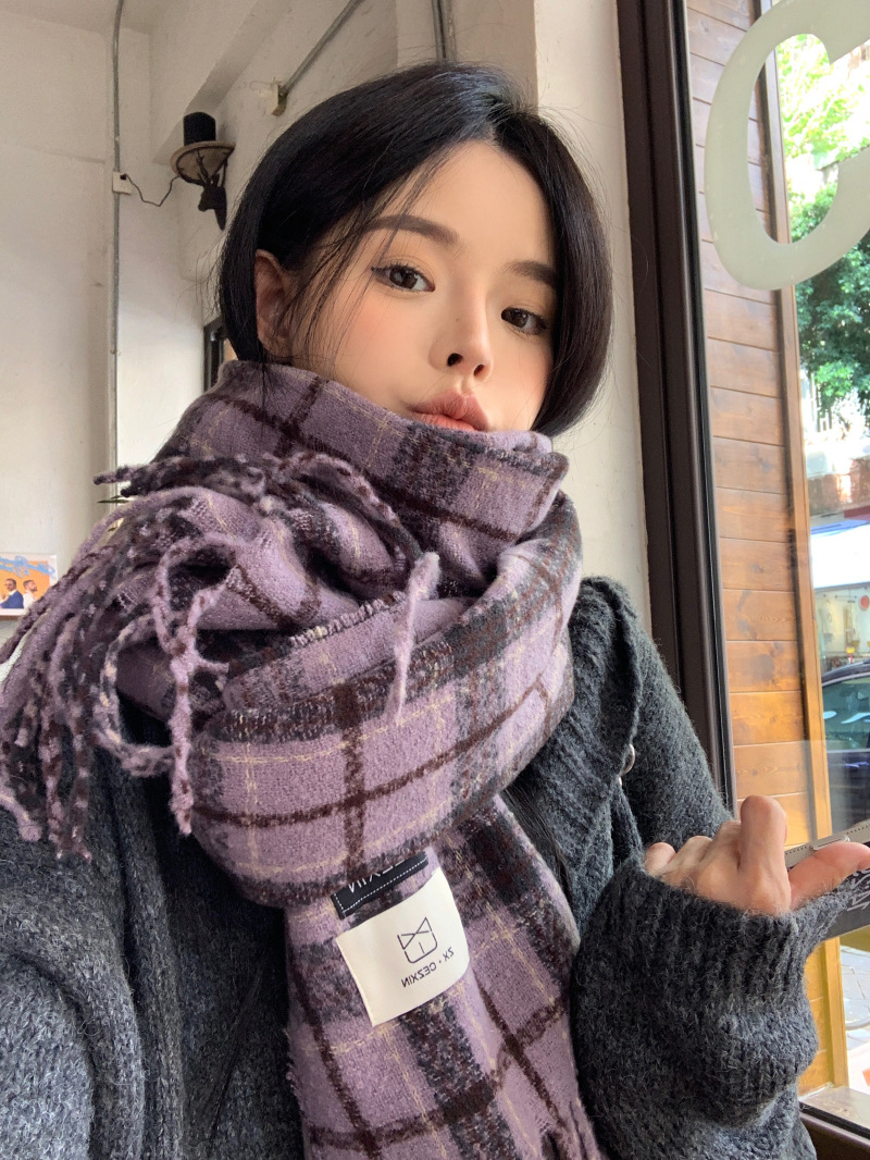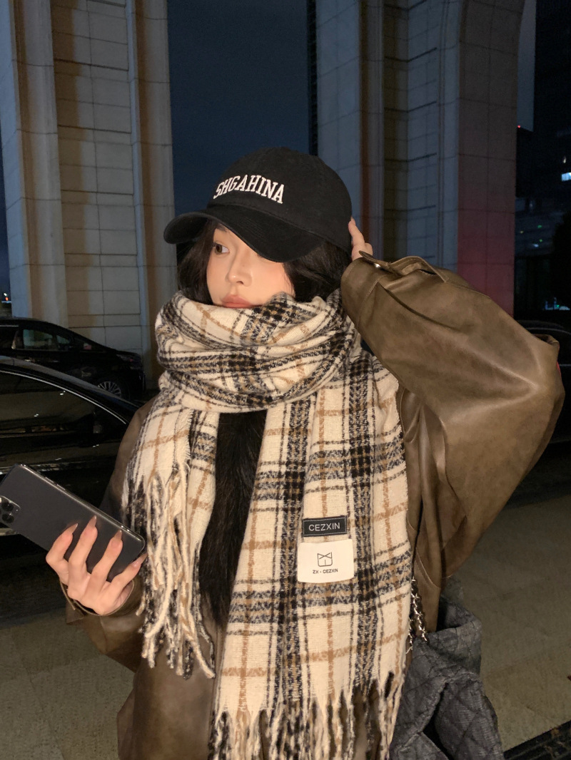 모헤어 스카프 여성의 겨울 2024 새로운 스타일 목도리 스카프 커플의 격자 무늬 올 매치 여행 따뜻한 생일 선물스토어 가기