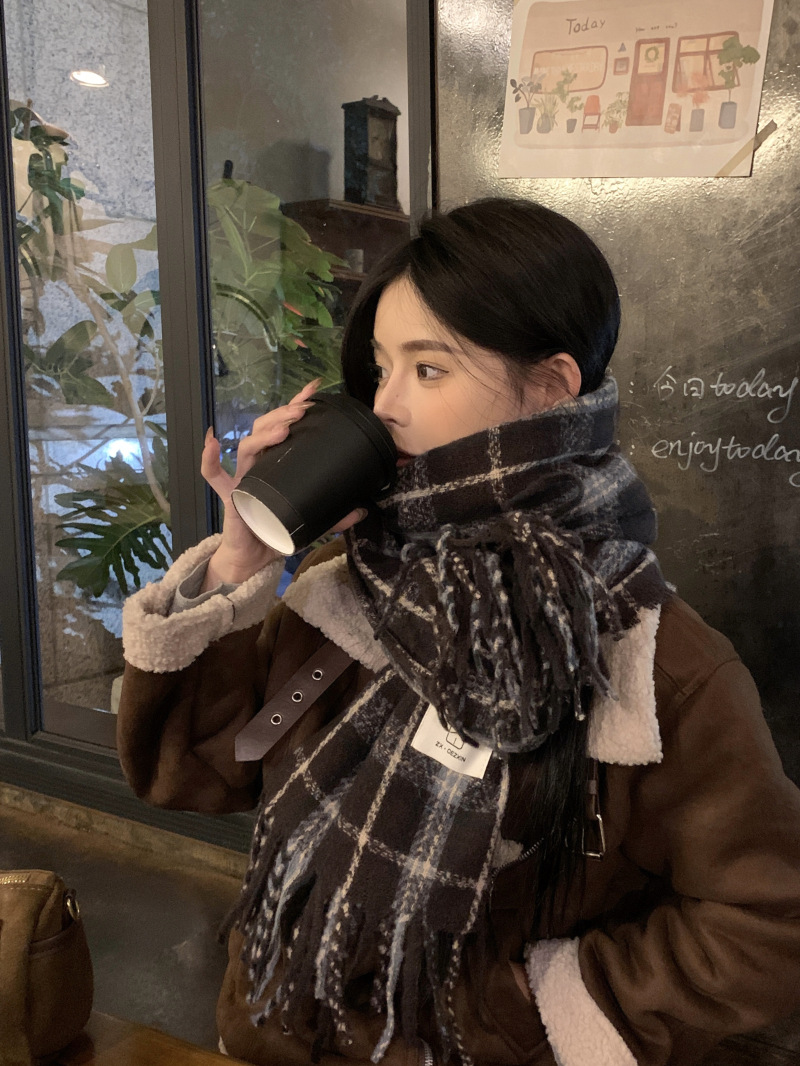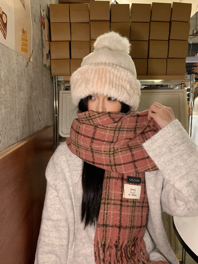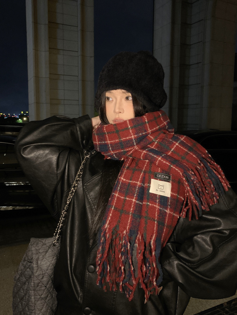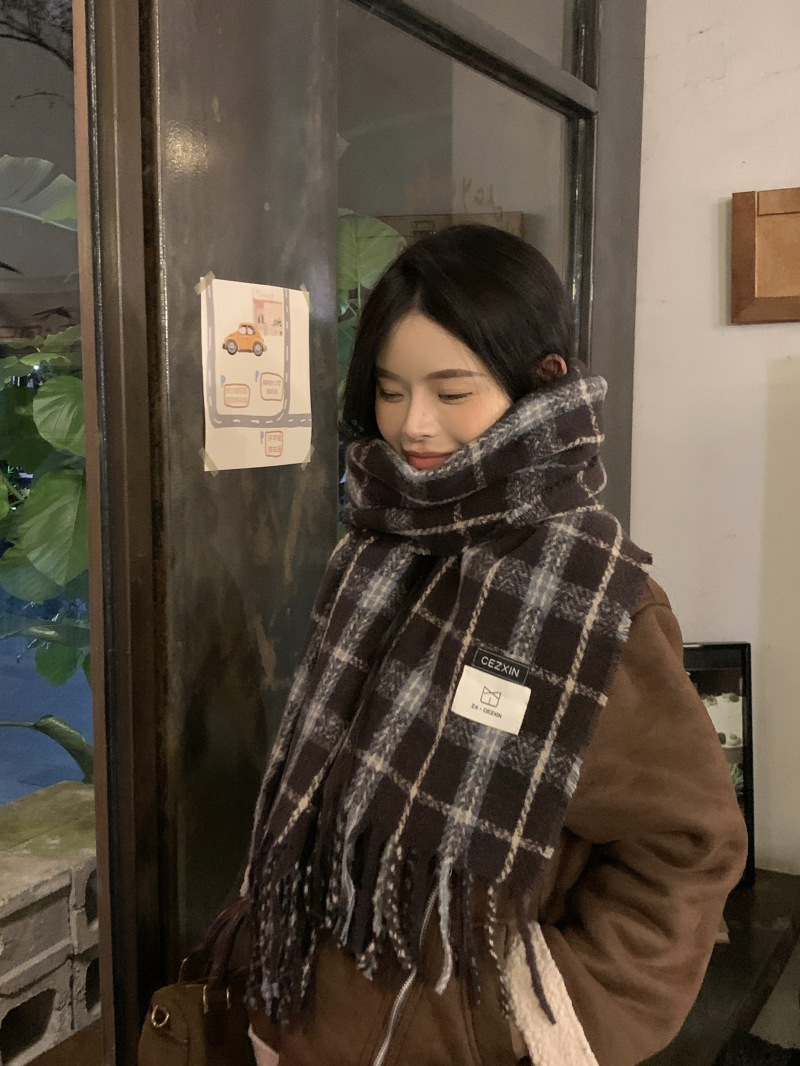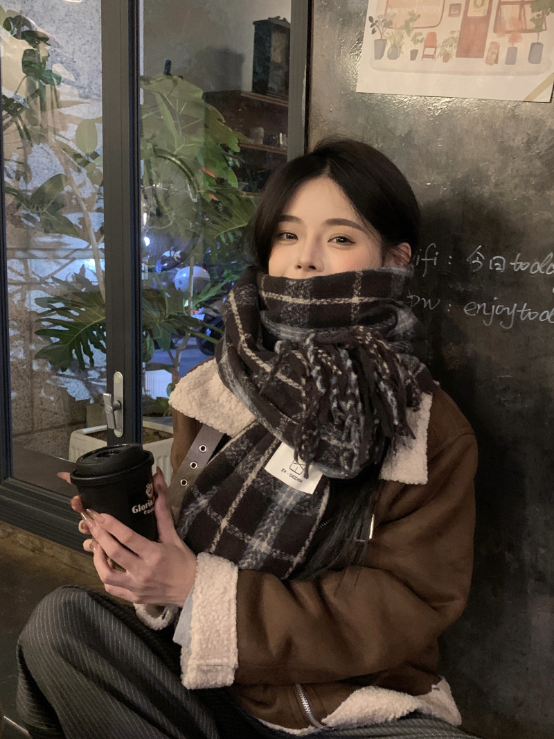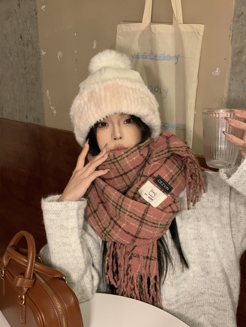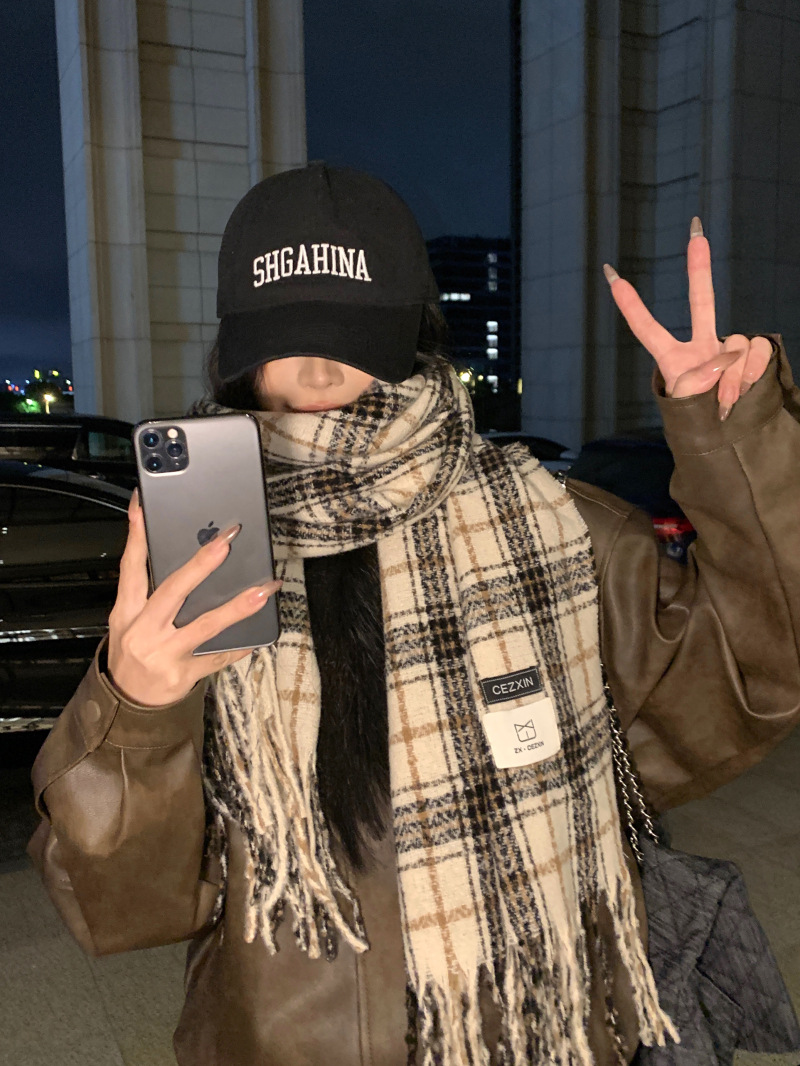 모헤어 스카프 여성의 겨울 2024 새로운 스타일 목도리 스카프 커플의 격자 무늬 올 매치 여행 따뜻한 생일 선물스토어 가기